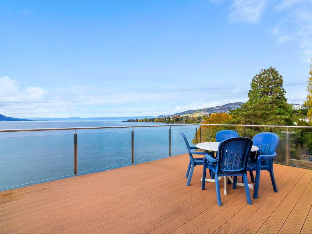 Clarens 2 km von Montreux: Grosse, schöne Villa "Le Môle", auf 3 Stockwerken. Direkt am See, an einer Hauptstrasse. Zur Alleinbenutzung: grosser Terrassengarten. Badesteg, Badeplatz. Im Hause: Aufenthaltsraum, Billard. Parkplatz (für 4 Autos) beim Haus, Einzelgarage beim Haus. Supermarkt 1.4 km, Einkaufszentrum 3.2 km, Restaurant 700 m, Bushaltestelle "Clarens, St-Georges" 130 m, Bahnstation "Montreux" 2.8 km. Nahe gelegene Sehenswürdigkeiten: Montreux, Château Chillon 6 km, Vevey 3.8 km, Chaplin's World 6.2 km, Lausanne Musée Olympique 21 km, Genève 90 km. Wandergebiete: Rocher de Naye. Bitte beachten: Der Besitzer akzeptiert keine Jugendgruppen. Private Bootsanlegestelle. Die Nachbarschaft ist sehr lärmempfindlich. Ruhe und gutes Benehmen wird erwartet.