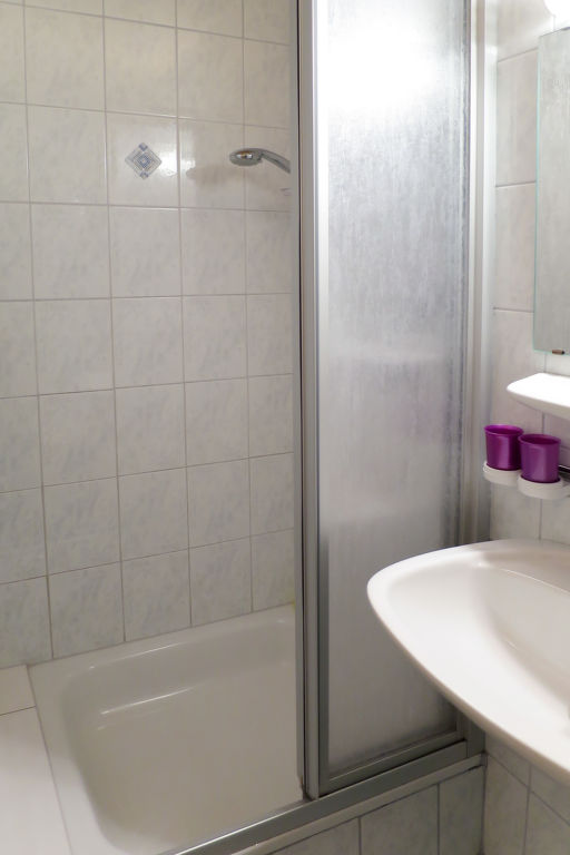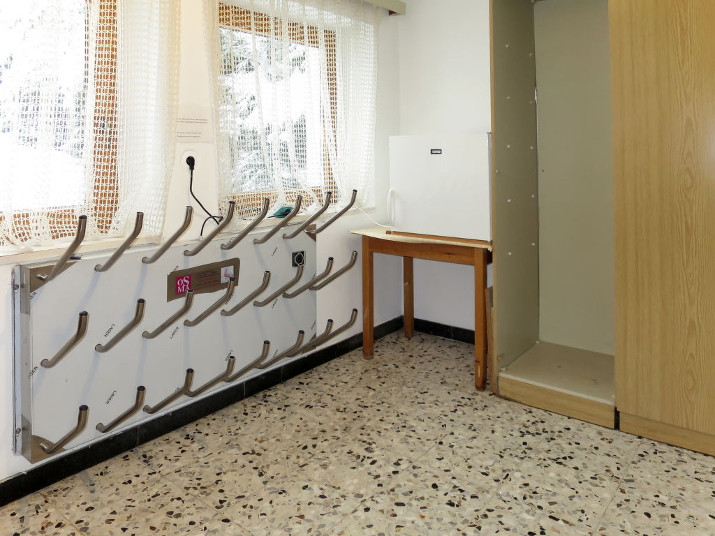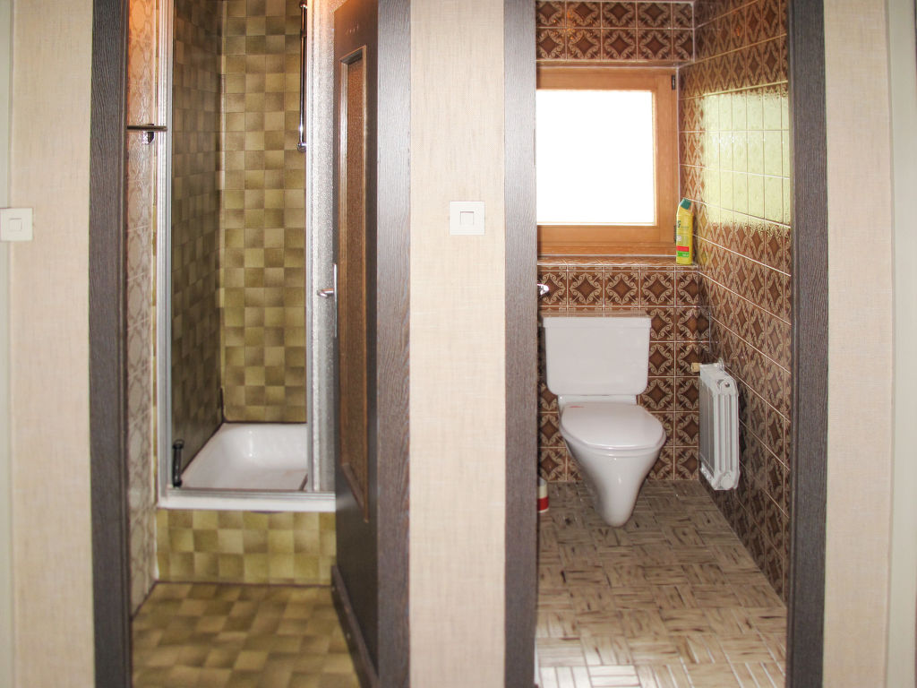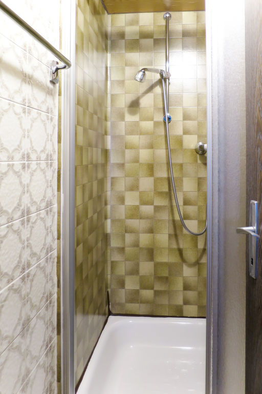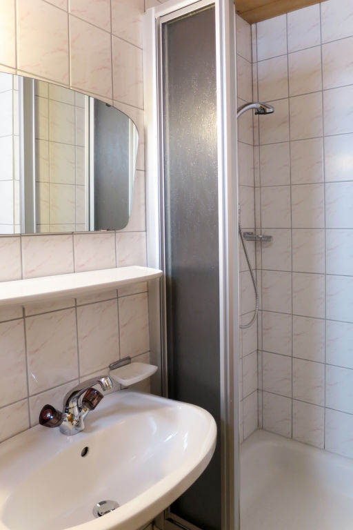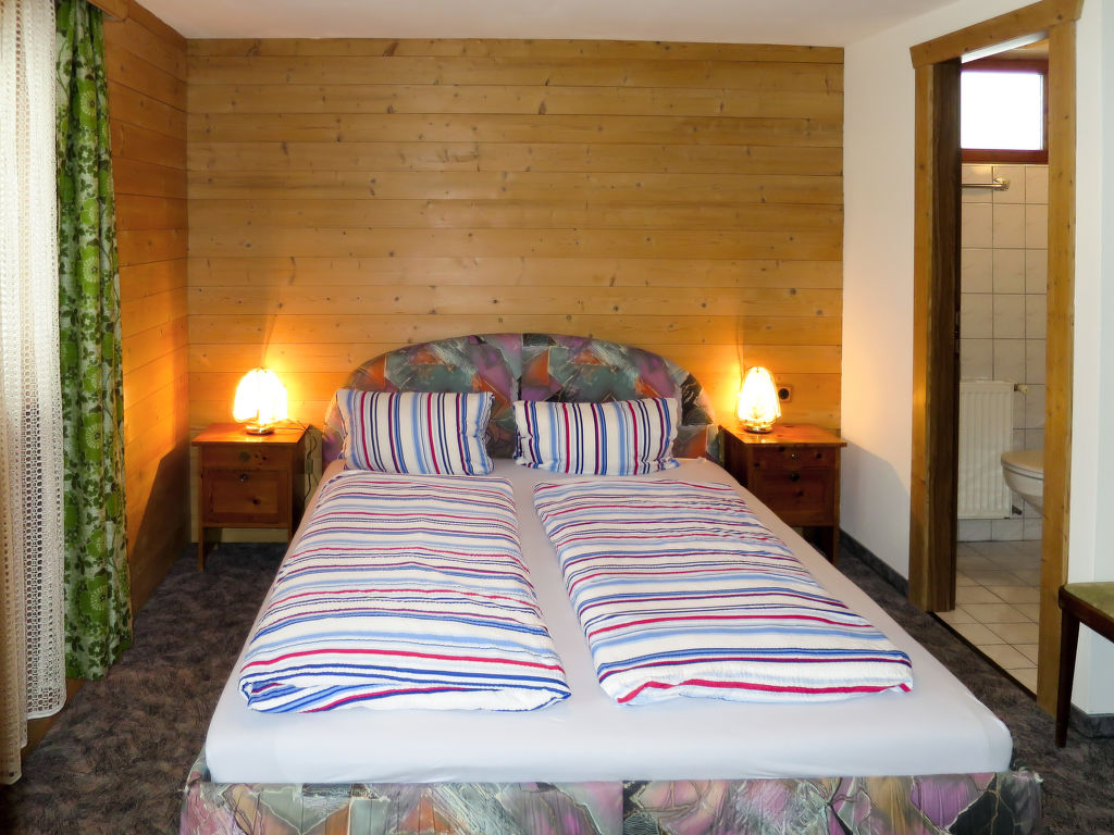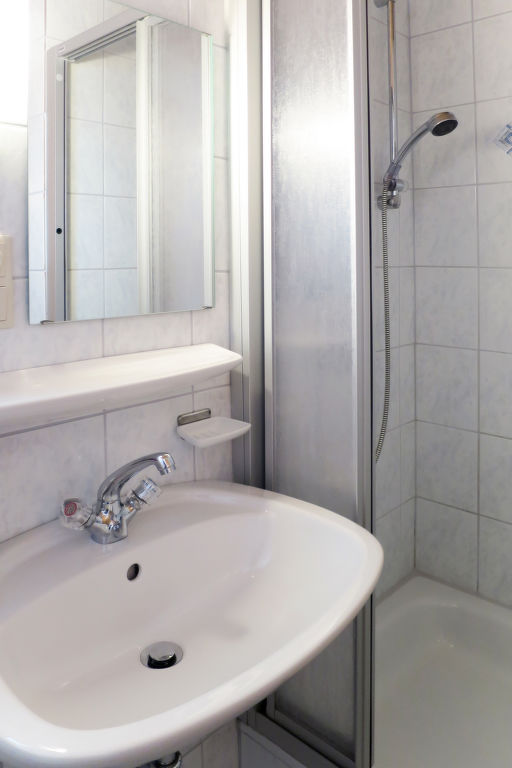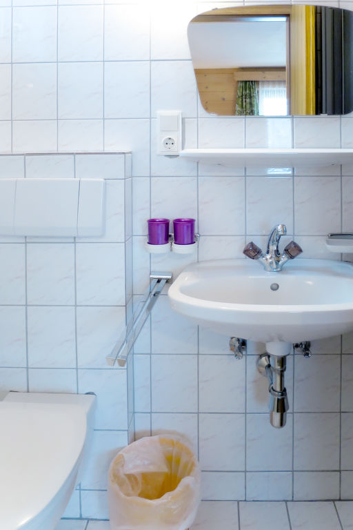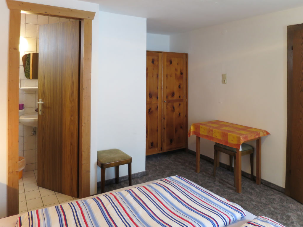 7-Zimmer-Haus, 3 Etagen, ca. 180 m². Erdgeschoss: Aufenthaltsraum mit Essplätzen (Tische, Eckbank, Stühle) und Kachelofen (wird auf Anfrage vom Besitzer beheizt). Küche (4 Ceranfelder, Backofen, Mikrowelle, Geschirrspüler, Kühlschrank, Kaffeemaschine, Wasserkocher) mit Essplatz für 6 Personen. Steile Treppe in die 1. Etage: Doppelzimmer mit Dusche/WC. Schlafzimmer mit Doppelbett, Bettcouch und Dusche/WC. Sep.WC. Steile Treppe in die 2. Etage: 2 Doppelzimmer, jeweils mit Dusche/WC und Balkonausgang. 2 Doppelzimmer, jeweils mit Waschbecken und Balkonausgang. Dusche. Sep.WC.