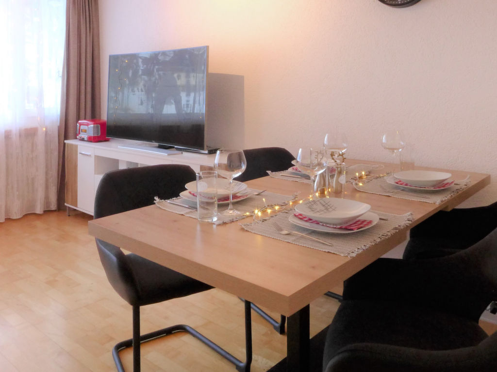 "Wohnung Pascal", 3-Zimmer-Wohnung im 1. Stock. Geräumig und hell, schön und geschmackvoll eingerichtet: offenes Wohnzimmer mit Esstisch und TV. Ausgang zum Balkon. 1 Doppelzimmer mit 1 Doppelbett (2 x 90 cm, Länge 200 cm). 1 Zimmer mit 1 Bett (90 cm, Länge 200 cm), 1 Diwanbett (140 cm, Länge 195 cm). Ausgang zum Balkon. Grosse Küche (Backofen, Geschirrspüler, 4 Glaskeramikherd Platten, Toaster, Mikrowelle, elektrische Kaffeemaschine). Ausgang zum Balkon. Dusche/WC. 2 Balkone. Balkonmöbel. Schöne Sicht auf die Berge. Zur Verfügung: Sauna. Internet (Wireless LAN, gratis). Bitte beachten: Nichtraucher-Unterkunft. Maximal 1 Haustier/Hund erlaubt.