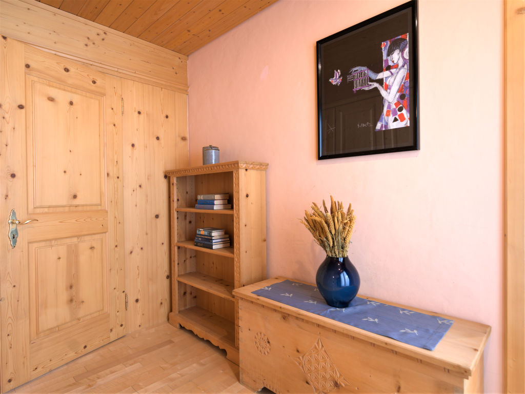 "Chesa Maurus A5", 3-Zimmer-Wohnung 100 m2 im 1. Stock. Geräumig, gemütlich eingerichtet: offenes Wohn-/Esszimmer mit offenem Kamin und Esstisch. Ausgang zum Balkon. 1 grosses Doppelzimmer mit 1 Doppelbett (1 x 170 cm, Länge 200 cm). Ausgang zur Loggia. 1 Doppelzimmer mit 1 Doppelbett (2 x 90 cm, Länge 200 cm). Kleine Küche (Backofen, Geschirrspüler, 4 Glaskeramikherd Platten, Toaster, Wasserkocher, Mikrowelle, elektrische Kaffeemaschine, Kapseln für die Kaffeemaschine (Nespresso) extra, Racletteofen, Fondue Set (Käse)). Bad/WC, Dusche/WC. Balkonmöbel. Schöne Sicht auf die Berge, die Landschaft und die Ortschaft. Zur Verfügung: Bügeleisen, Haartrockner. Internet (Wireless LAN, gratis). Garage Nr. A5 (nr.5+6) auf dem Grundstück (2 Autos), Höhe 205 cm, Breite 210 cm. Bitte beachten: geeignet für Familien. Nichtraucher-Unterkunft, Nichtraucher-Haus. 1 Haustier/Hund erlaubt. : 2 Zusatzbetten in extra Zimmer dazumietbar.