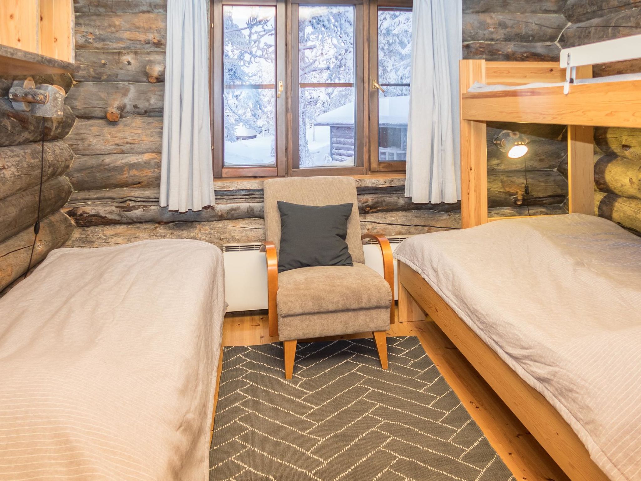 Von Kuusamo nach Norden 25 km fahren, Dorf Ruka (West Ruka) 2 km, Vuosseli (Ost Ruka) 3 km. Block-Doppelhaus aus Keloholz, Baujahr 1992, Schlafzimmer 1: Bett + Etagenbett, Schlafzimmer 2: Bett + Etagenbett, Dachboden: Doppelbett + 3 Matratzen. Wohnküche. Elektrische Sauna. Diese Ferienwohnung liegt in Hanglage, in der Nähe des Hotels Royal Ruka. Andere Ferienwohnung im Haus ist die Wohnung 9478 Rukapuro. Andere Entfernung: Oulanka Nationalpark / Pieni Karhunkierros Pfad 24 km, Riisitunturi 31 km. Schneeschuh-Wanderweg «Pyhän Jyssäys» 300 m. Zusätzliche Informationen: Skibus 600 m. Geheizter Abstellraum zum Skiwachsen. Reisebett für Kinder, Hochstuhl und Bad für Kinder. Grillhütte zur Mitbenutzung (befindet sich auf der anderen Seite der Landstrasse). Buchungen beginnen um 16:00 Uhr und enden um 12:00 Uhr (auch bei Wochenendbuchungen).