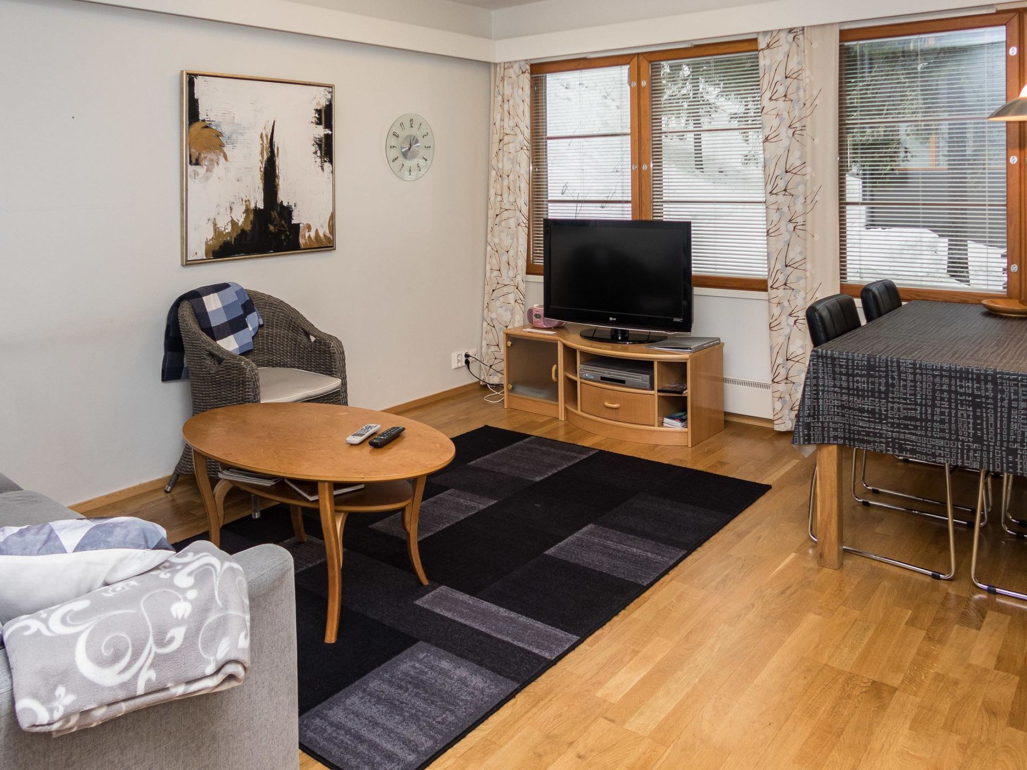 29 km nördlich von Kuusamo, Ruka Dorf (West Ruka) 350 m. Hochwertige Ferienwohnung, Baujahr 2004, Schlafzimmer mit 2 Betten, Wohnzimmer mit Schlafcouch für zwei, Wohnküche, elektrische Sauna, Balkon. Ferienwohnung befindet sich im Zentralbereich des Skigebiets Ruka. Geeignet für Familien und Unternehmen. Gemeinsamer Ski-Wartungsraum im Untergeschoss. Entfernungen: Oulanka Nationalpark / Pieni Karhunkierros Wanderweg 23 km, Riisitunturi Fjell 29 km. Buchungen beginnen um 16:00 Uhr und enden um 12:00 Uhr (auch bei Wochenendbuchungen).