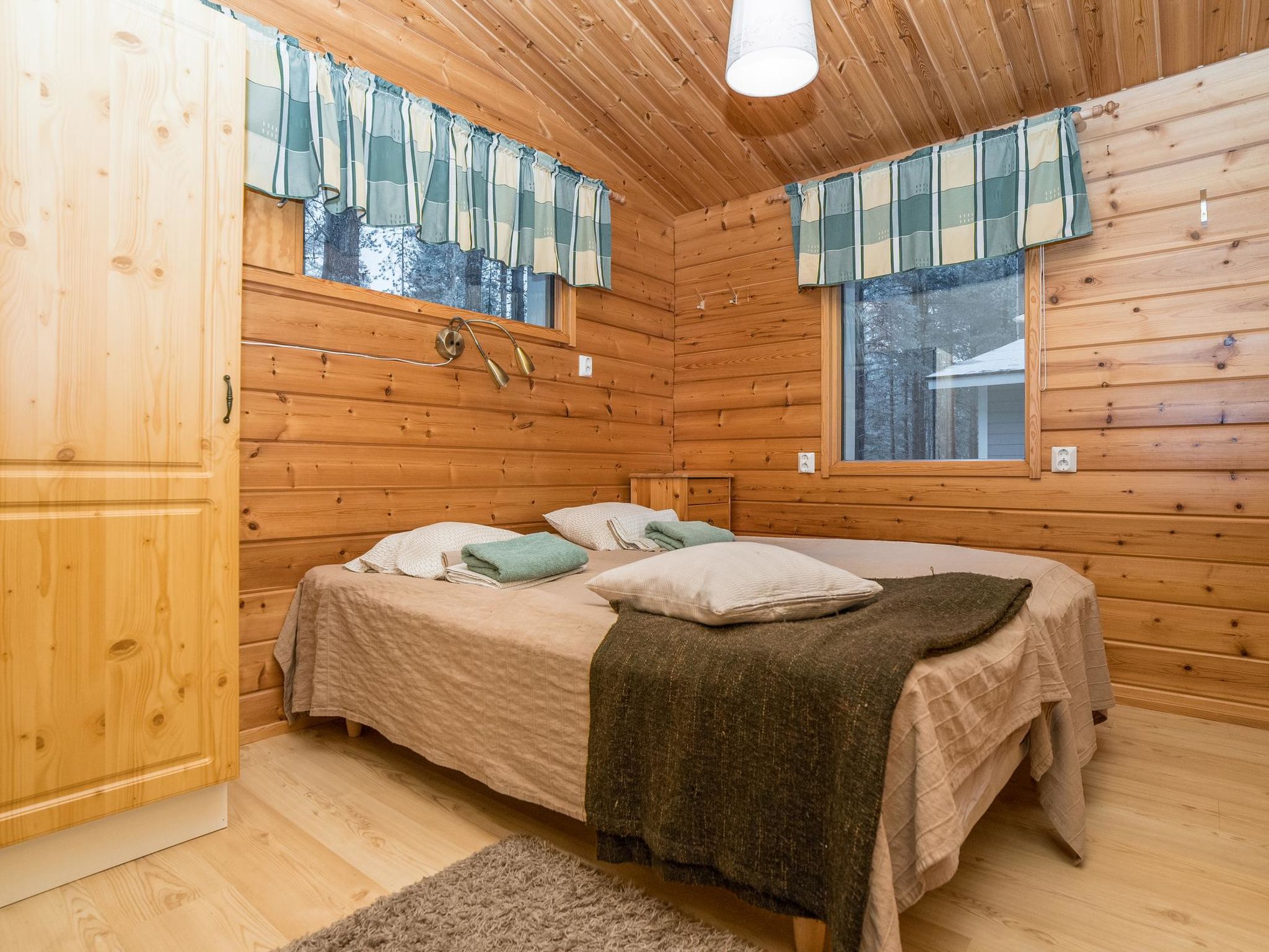 5.0 km nördlich von Kuusamo, Ruka 20 km, Teich Petäjälampi, harter Sandstrand. Es gibt 5 Anlegestellen/Badeplätze in der Gegend. Am besten geeignet für Kinder ist der Platz vor der Seeufer-Sauna (leicht abfallend bis 5-6 Meter). Block-Ferienhaus, Baujahr 2005, Schlafzimmer 1: 2 Betten, Schlafzimmer 2: 2 Betten, Wohnküche, elektrische Sauna. Block-Ferienhaus befindet sich am Teich Petäjälampi. Thermalbad Kuusamo Tropiikki / Kuusamo Golf 1.5 km auf der Strasse (zu Fuss 0.5 km). Hervorragende Möglichkeiten zum Wandern. Gute Angelmöglichkeiten. Geeignet für Familien, Golfspieler und aktive Menschen. Zusätzliche Informationen: Endreinigung und Bettwäsche sind im Preis inbegriffen. Haustiergebühr EURO 20.-/Buchung. Kinderbett und Hochstuhl können beim Besitzer gemietet werden. Boot, Kanu und Feuerstelle sind zur Mitbenutzung. Andere Entfernungen: Oulanka Nationalpark / Pieni Karhunkierros Pfad 27 km, Riisitunturi Nationalpark 48 km. Freizeitpark "Angry Birds Activity Park" und Kuusamo Golf 1.5 km. Buchungen beginnen um 16:00 Uhr und enden um 12:00 Uhr ( auch bei Wochenendbuchungen).