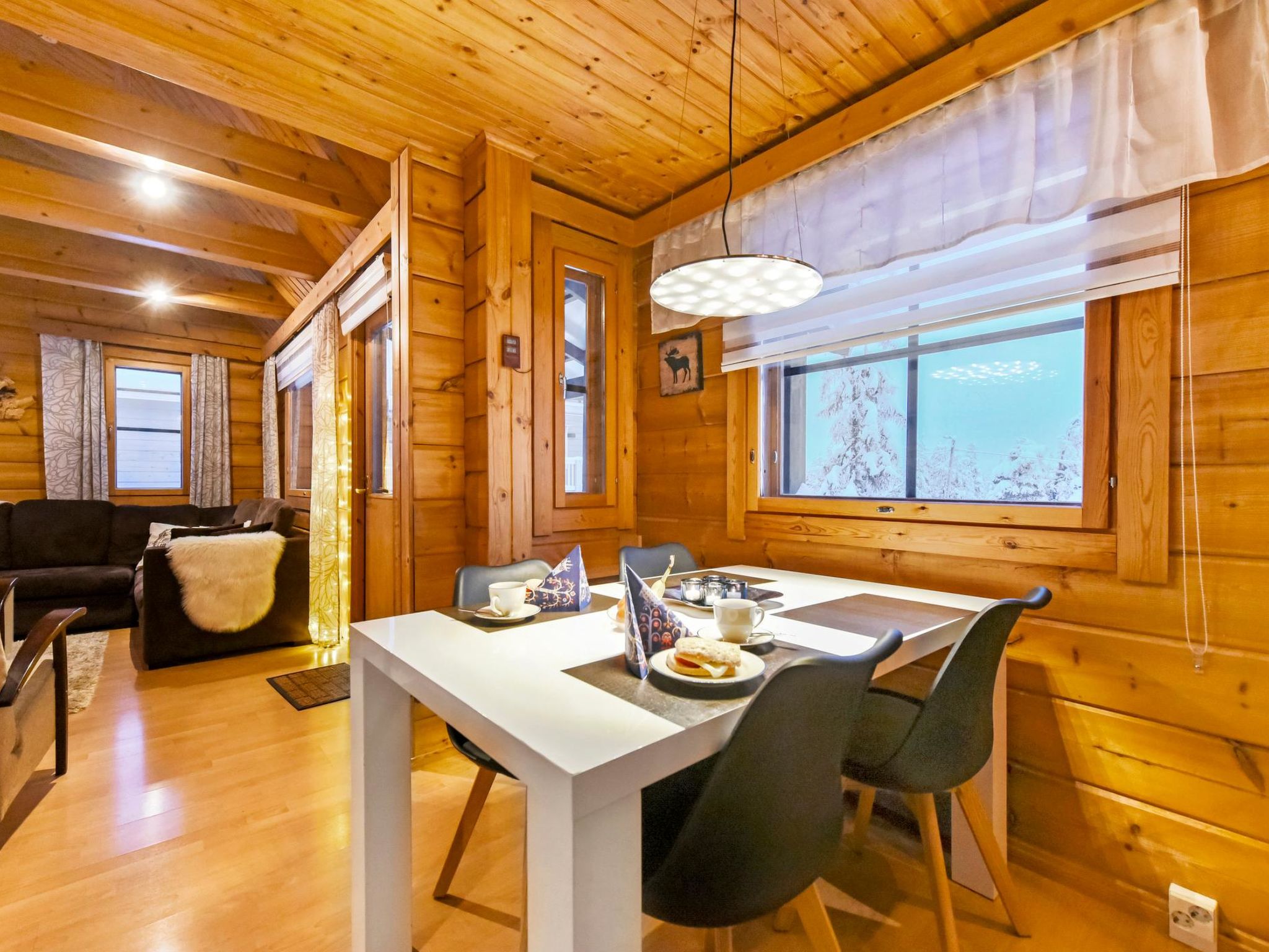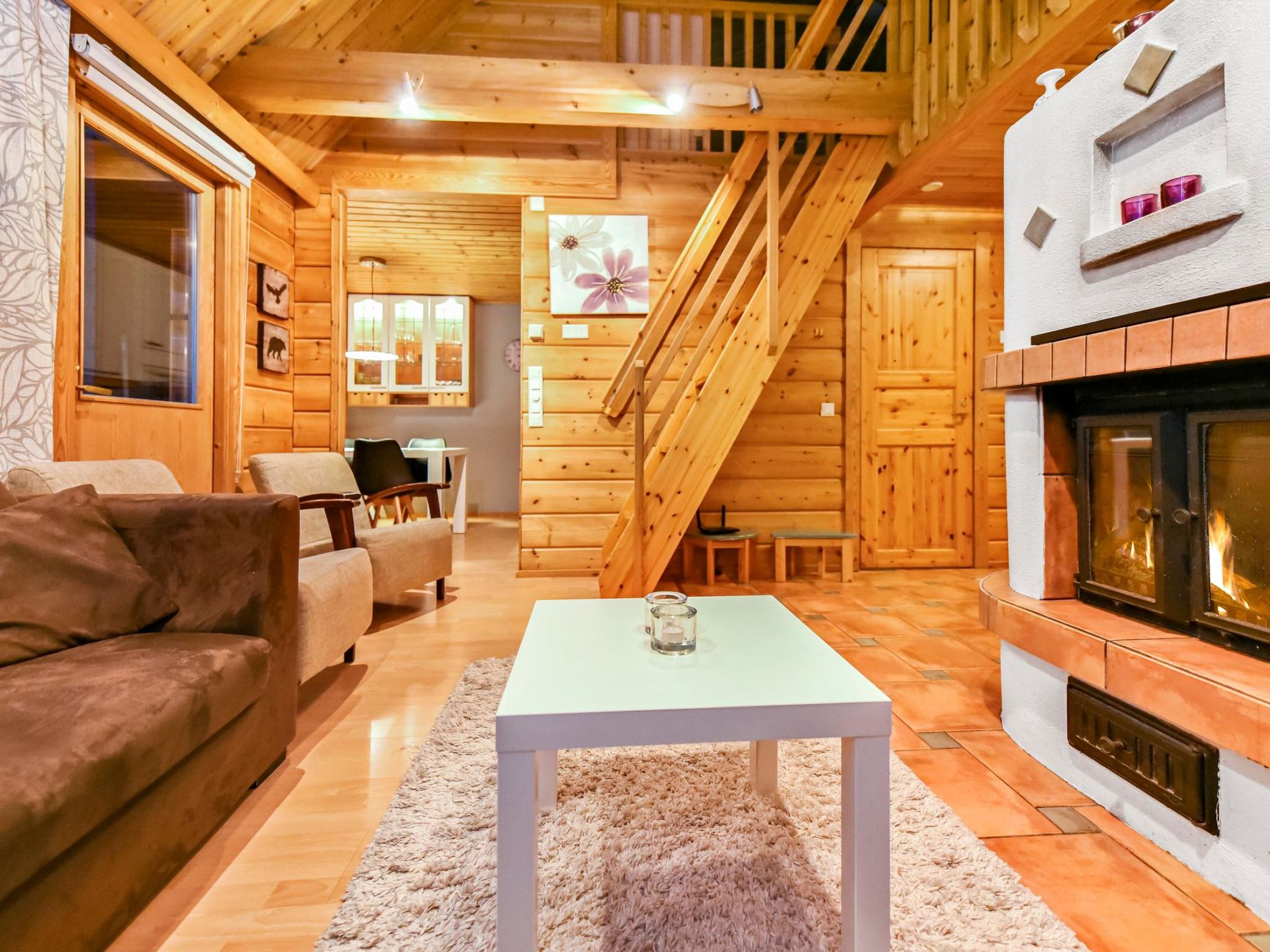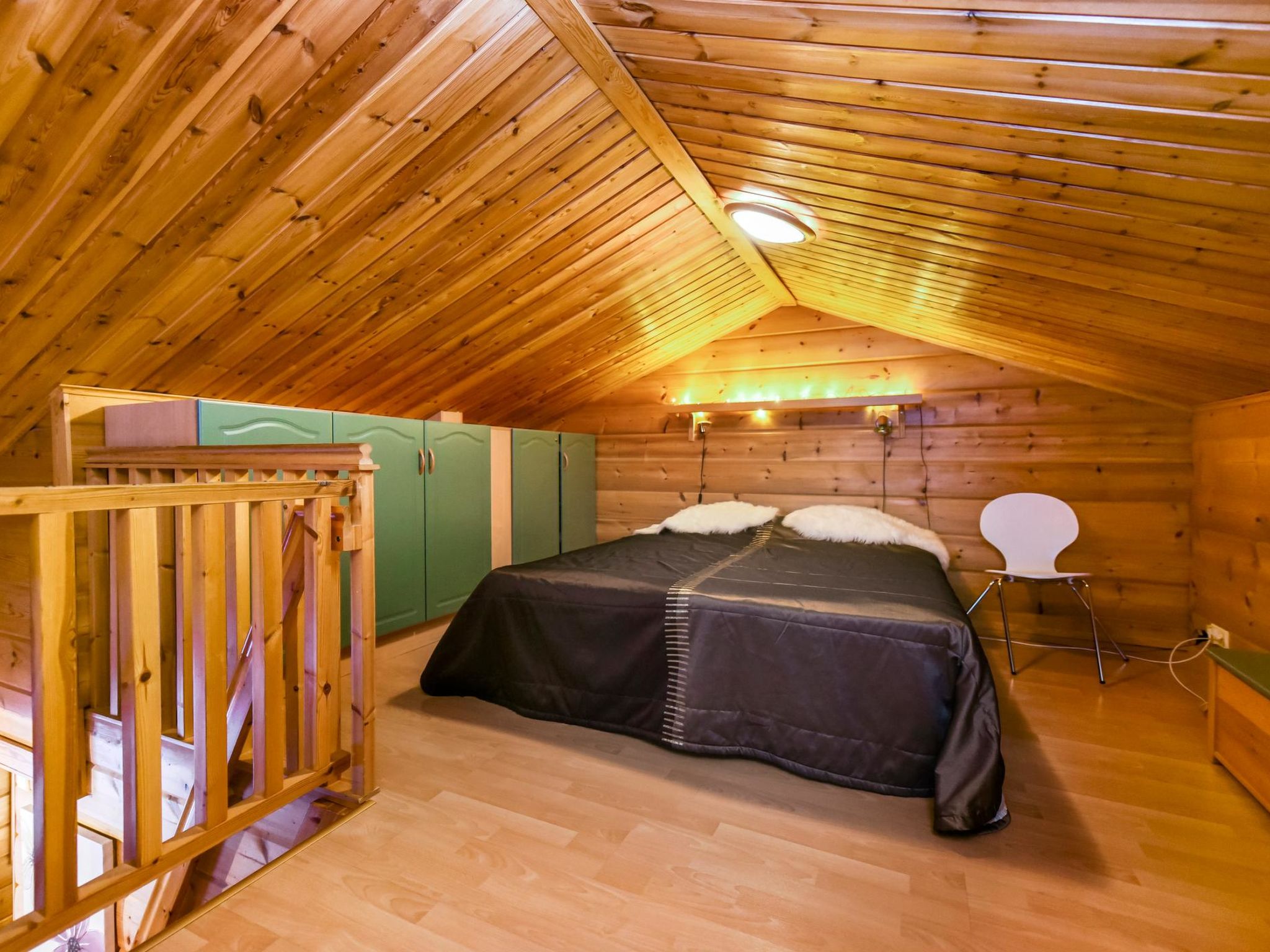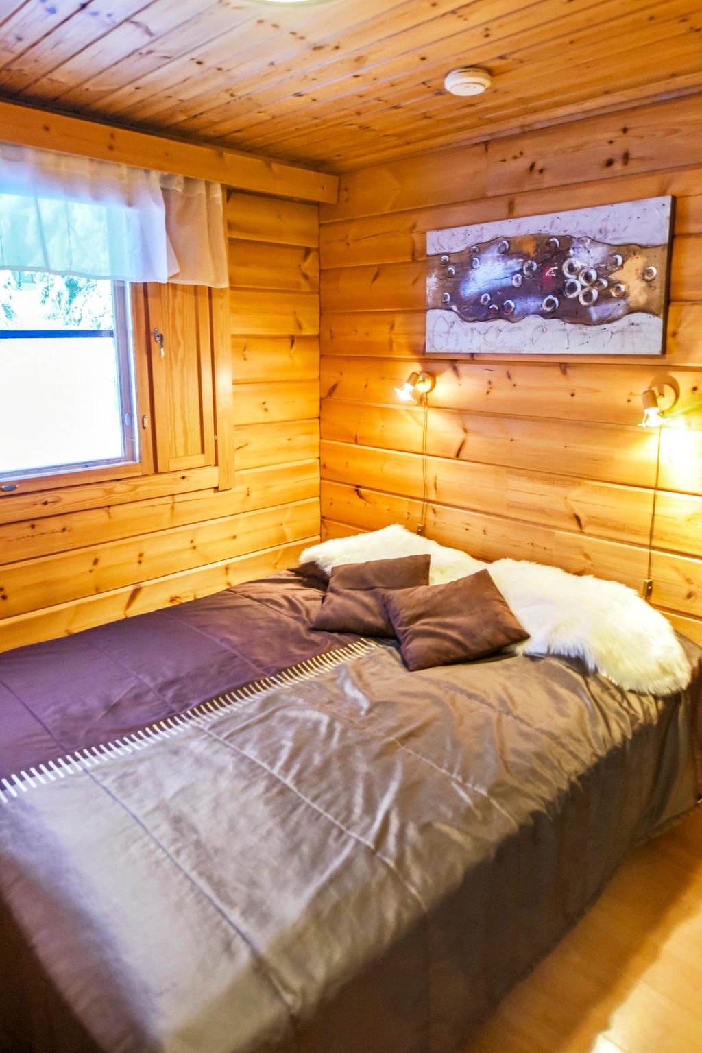 25 km nördlich von Kuusamo, Ruka Dorf (West Ruka) 3.7 km, Vuosseli (Ost Ruka) 1.3 km. Hälfte des Doppelferienhauses (Baujahr 1999), im Osten von Ruka, in der Nähe der Pisten, 2 km zum nächsten See (Vuosselijärvi). Zwei Schlafzimmer, Schlafzimmer 1: Doppelbett, Schlafzimmer 2: breites Etagenbett. Wohnzimmer, Küche, Toilette, Waschraum, Sauna, Dachboden mit vier Betten. Zwei Fernseher und Kabelfernsehen. Diese Ferienwohnung liegt in der Nähe der Loipen, Skipisten und Schneemobistrecken. Der nächste Skilift ist Masto (ca. 550 m). Im Sommer steht z.B. Valtavaara Wanderweg ca. 1.5 km von der Wohnung entfernt, zur Verfügung. Andere Entfernungen: Oulanka Nationalpark / Pieni Karhunkierros Pfad 25 km, Riisitunturi Fjell 32 km. Die nächstgelegenen Restaurants in der Winter-Hochsaison sind RoySki Pub (1.3 km) und SkiBistro. Buchungen beginnen um 16:00 Uhr und enden um 12:00 Uhr (auch bei Wochenendbuchungen).