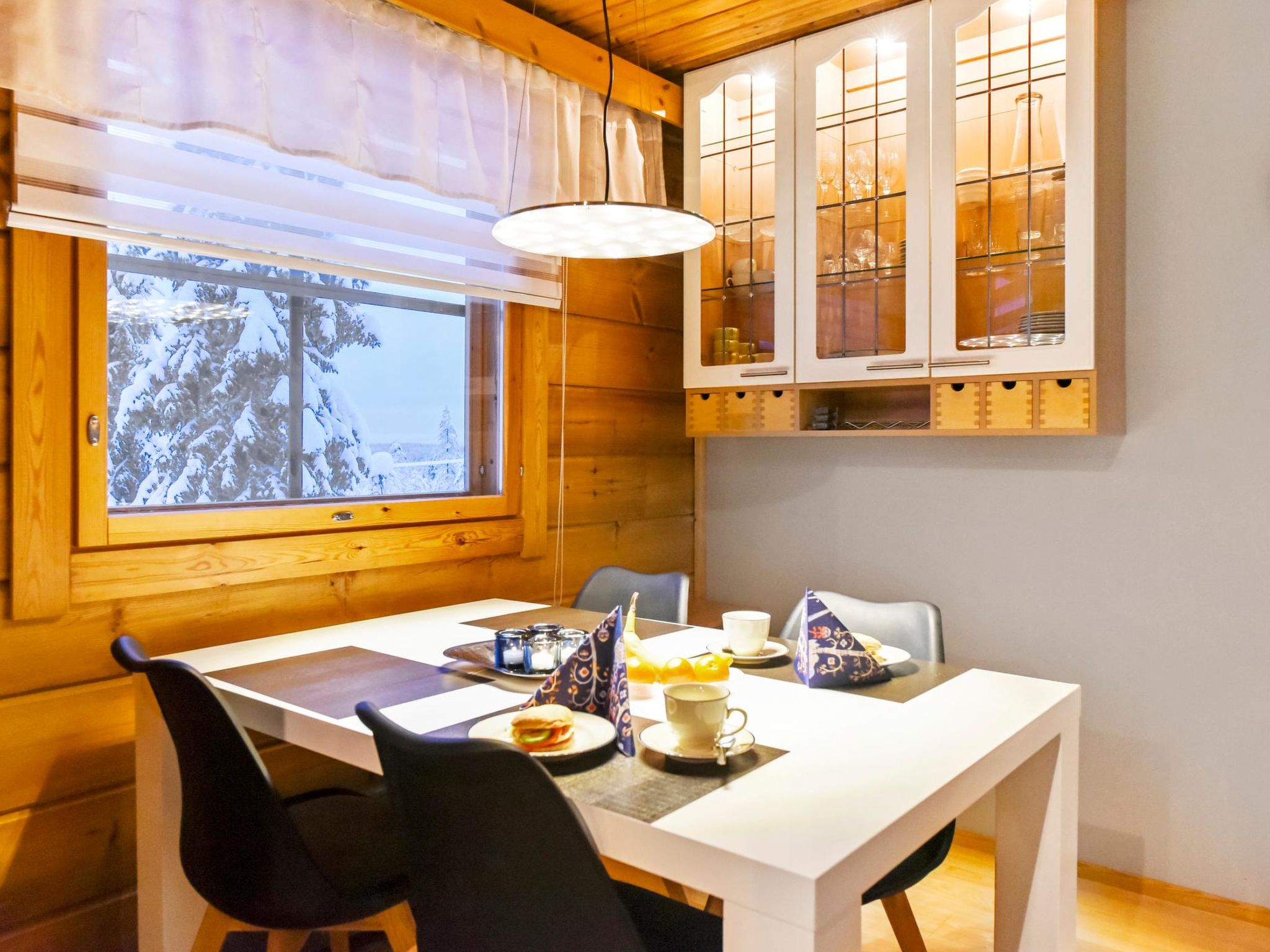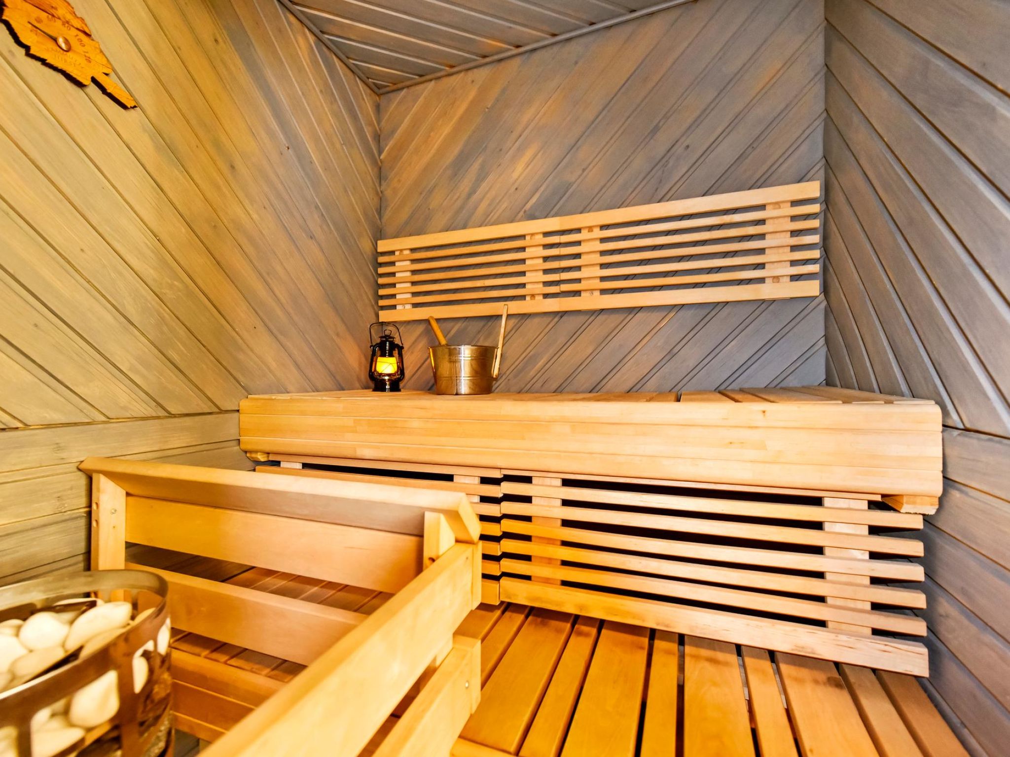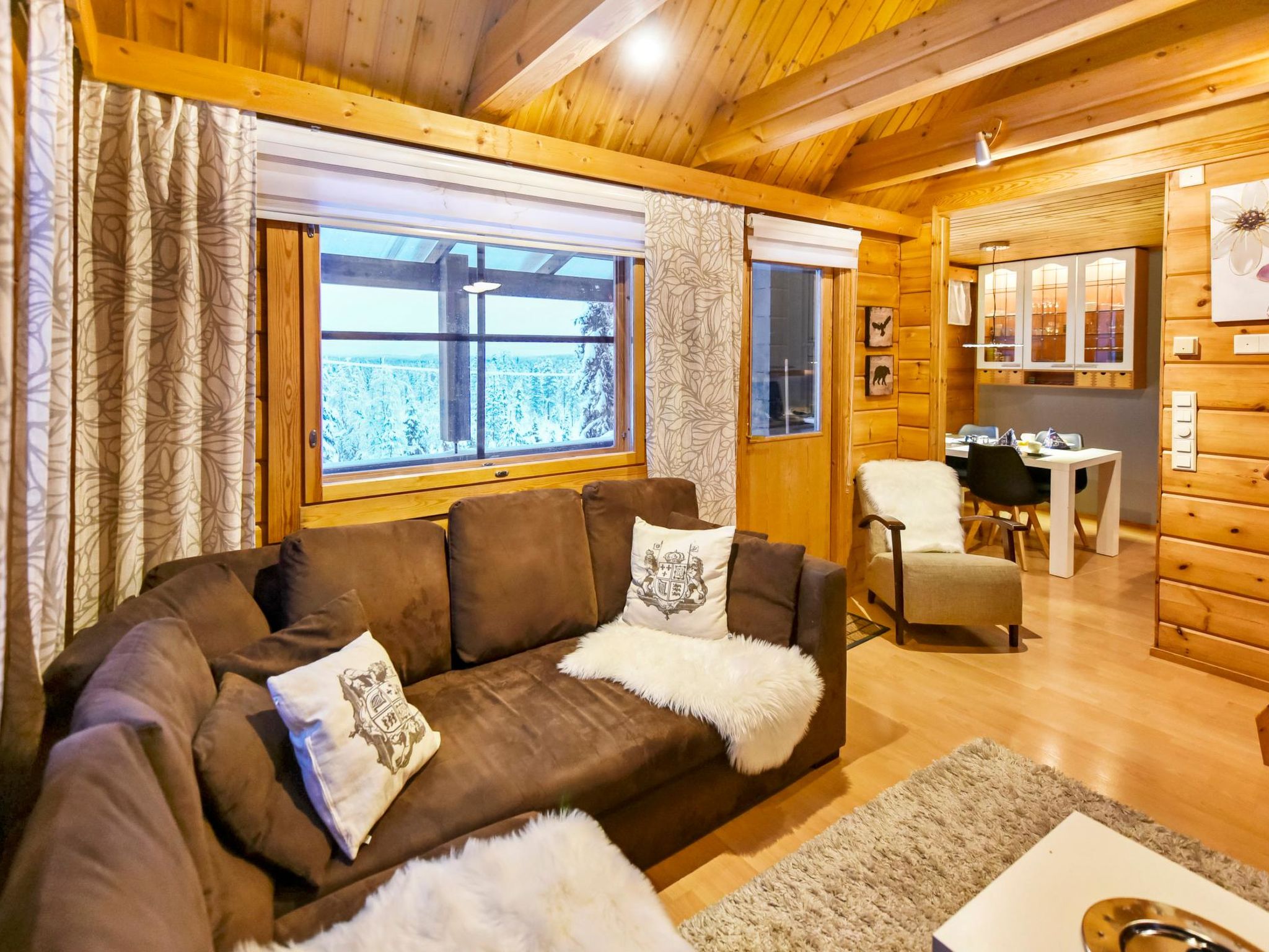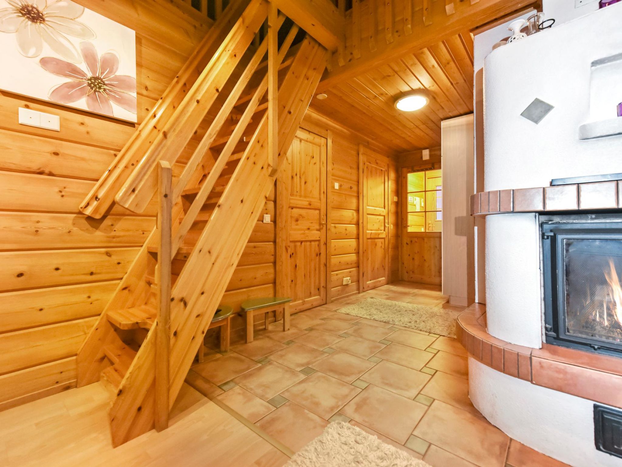 25 km nördlich von Kuusamo, Ruka Dorf (West Ruka) 3.7 km, Vuosseli (Ost Ruka) 1.3 km. Hälfte des Doppelferienhauses (Baujahr 1999), im Osten von Ruka, in der Nähe der Pisten, 2 km zum nächsten See (Vuosselijärvi). Zwei Schlafzimmer, Schlafzimmer 1: Doppelbett, Schlafzimmer 2: breites Etagenbett. Wohnzimmer, Küche, Toilette, Waschraum, Sauna, Dachboden mit vier Betten. Zwei Fernseher und Kabelfernsehen. Diese Ferienwohnung liegt in der Nähe der Loipen, Skipisten und Schneemobistrecken. Der nächste Skilift ist Masto (ca. 550 m). Im Sommer steht z.B. Valtavaara Wanderweg ca. 1.5 km von der Wohnung entfernt, zur Verfügung. Andere Entfernungen: Oulanka Nationalpark / Pieni Karhunkierros Pfad 25 km, Riisitunturi Fjell 32 km. Die nächstgelegenen Restaurants in der Winter-Hochsaison sind RoySki Pub (1.3 km) und SkiBistro. Buchungen beginnen um 16:00 Uhr und enden um 12:00 Uhr (auch bei Wochenendbuchungen).