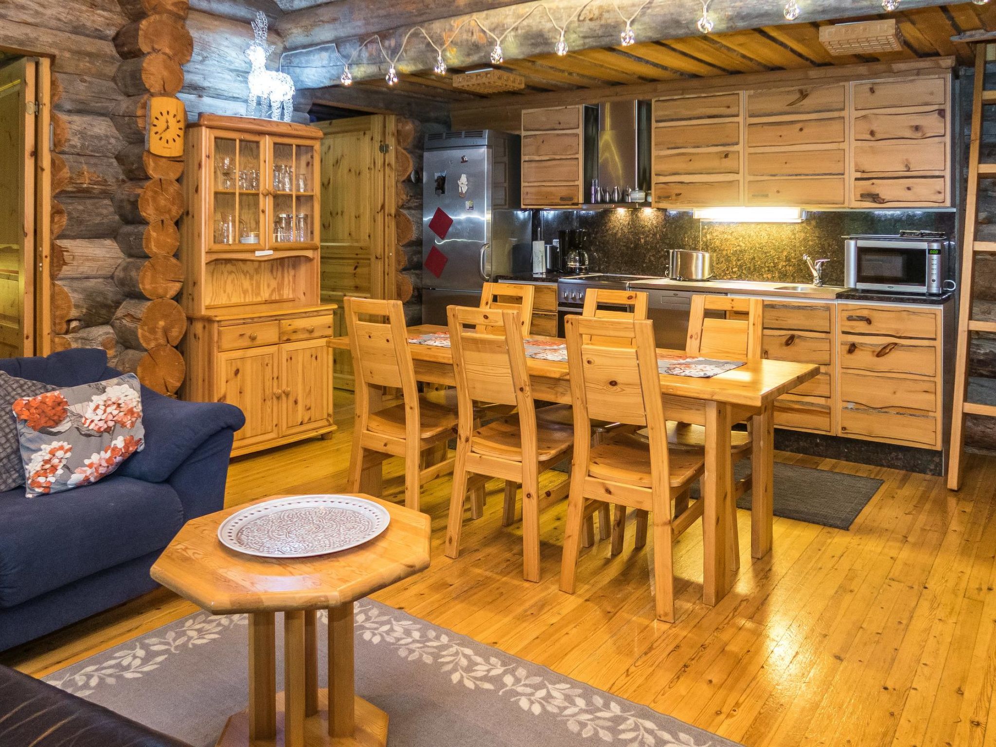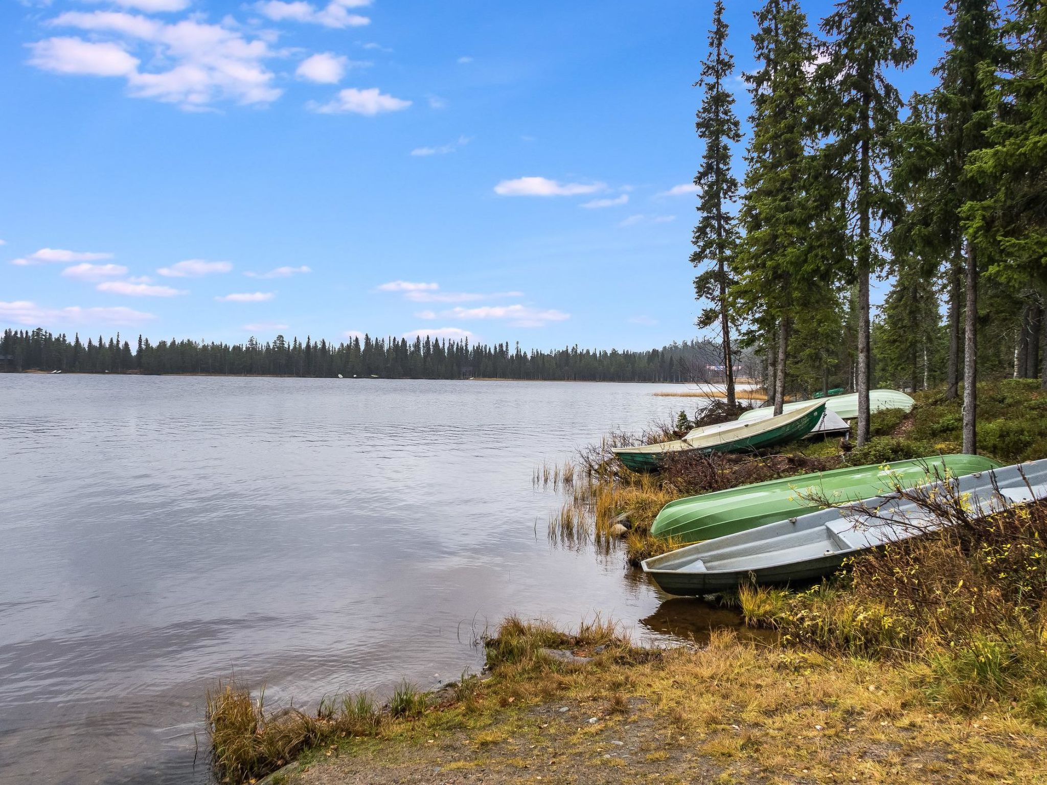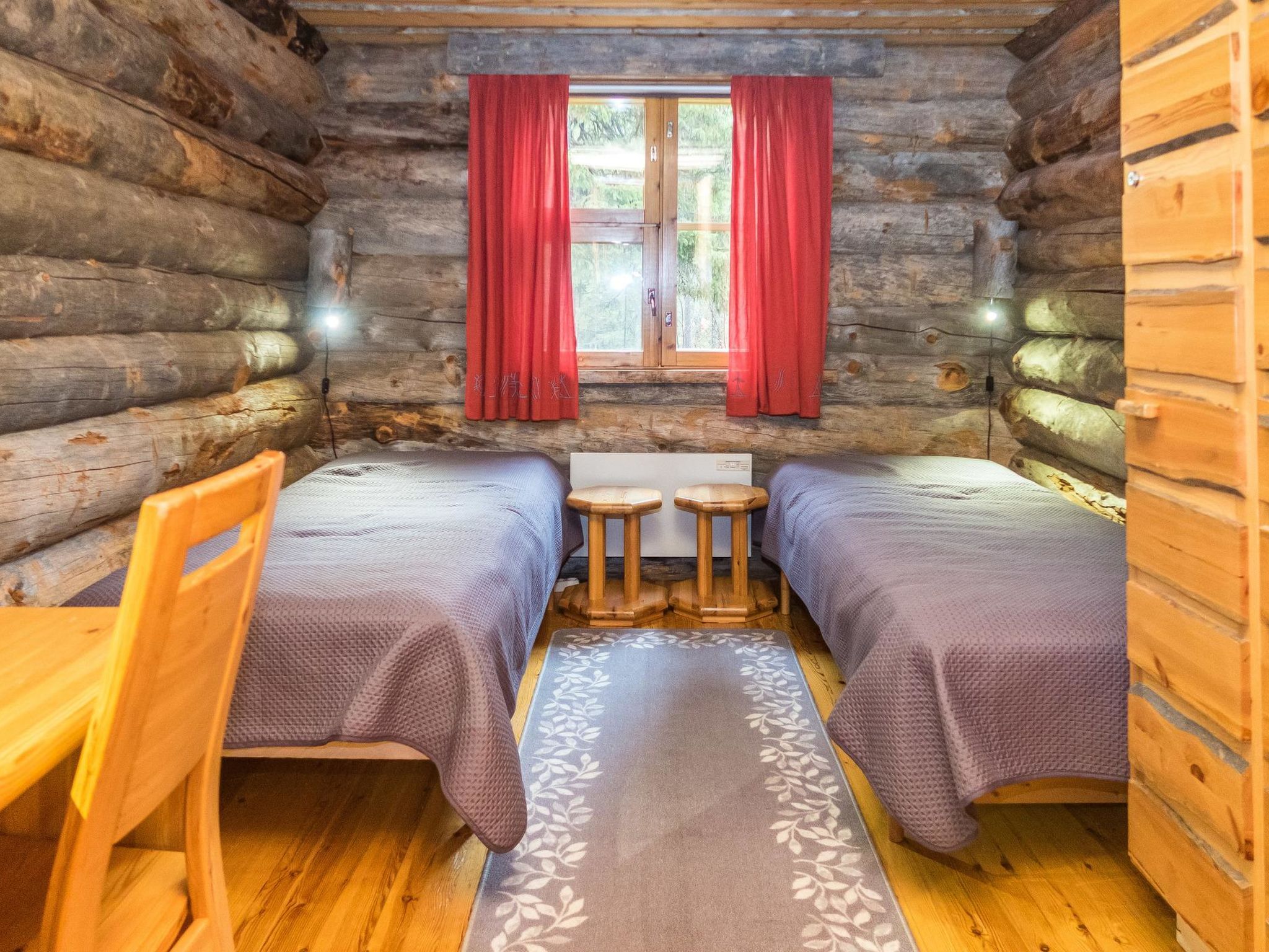 25 km nördlich von Kuusamo, Baujahr 1988. Kieferhütte im Reihenhaus, Wohnküche, Schlafzimmer 1: zwei Betten á 80 x 200 cm, Schlafzimmer 2: Doppelbett, 4 Matratzen auf dem Dachboden (steile Treppe zum Dachboden), Kamin, Badezimmer, Toilette, Sauna. Erdgeschoss 78 m2, Dachboden 30 m2. Ferienwohnung im Kiefer-Blockhaus mit 3 weiteren Ferienwohnungen. 200 m zum See Kesäjärvi mit Sandufer, wo ein Ruderboot zu finden ist (zur Mitbenutzung mit einer anderen Ferienwohnung). Der nächste Skilift befindet sich in der Talvijärvi Gegend 2.1 km (Lift ist normalerweise von Dezember bis April geöffnet), Ruka Zentrum liegt cca 3 km entfernt. Nächster Lebensmittelmarkt ist 800 m entfernt. Endreinigung ist in den Buchungen, die nach 11.10.2018 getätigt worden sind, inbegriffen. Ski-Wartungsraum zur Mitbenutzung, befindet sich am Ende des Lagergebäudes. Im gleichen Gebäude ist auch separate Lagerung für Brennholz. Die Buchungen beginnen um 16:00 Uhr und enden um 12:00 Uhr (auch bei Wochenendbuchungen).