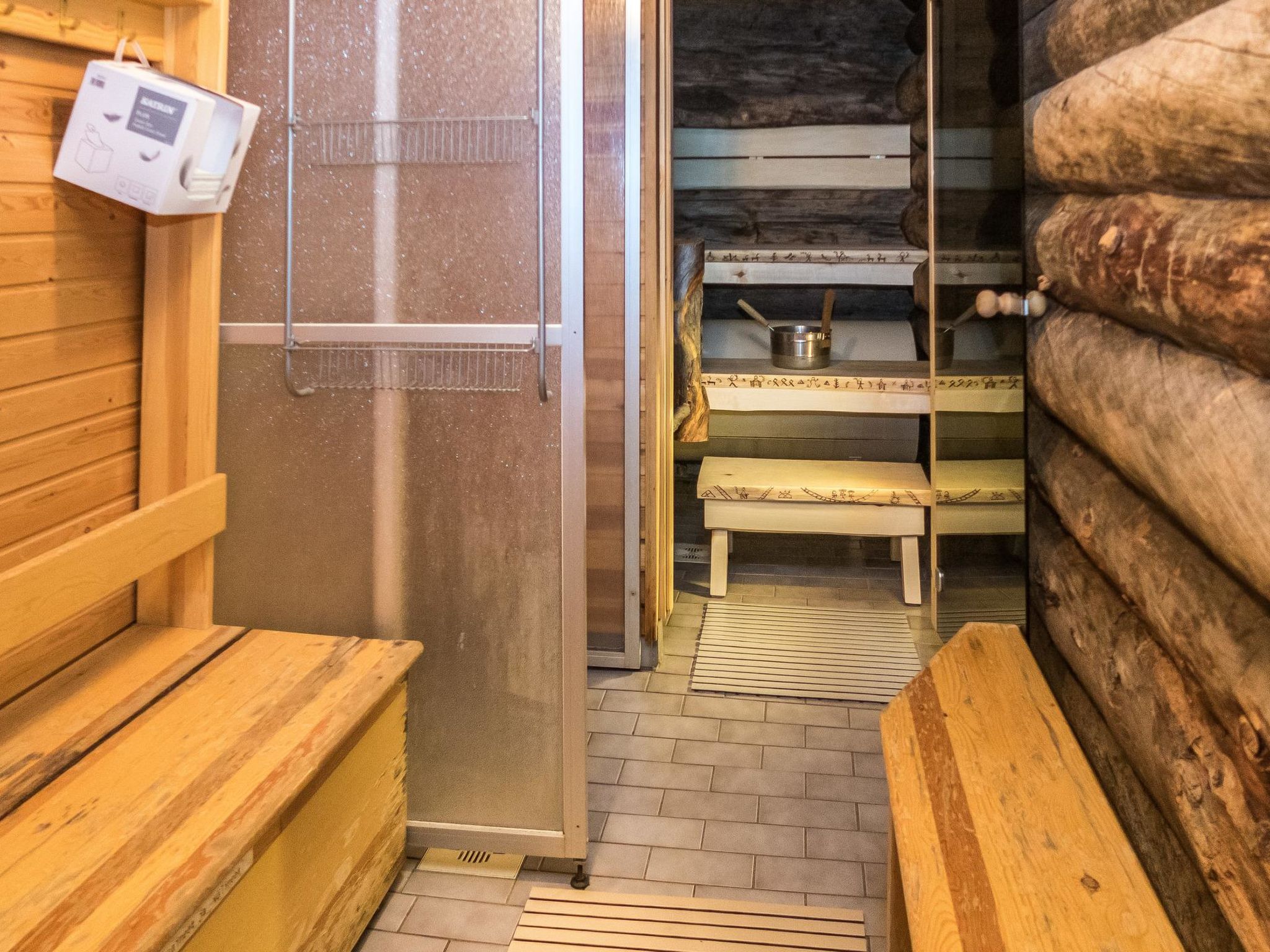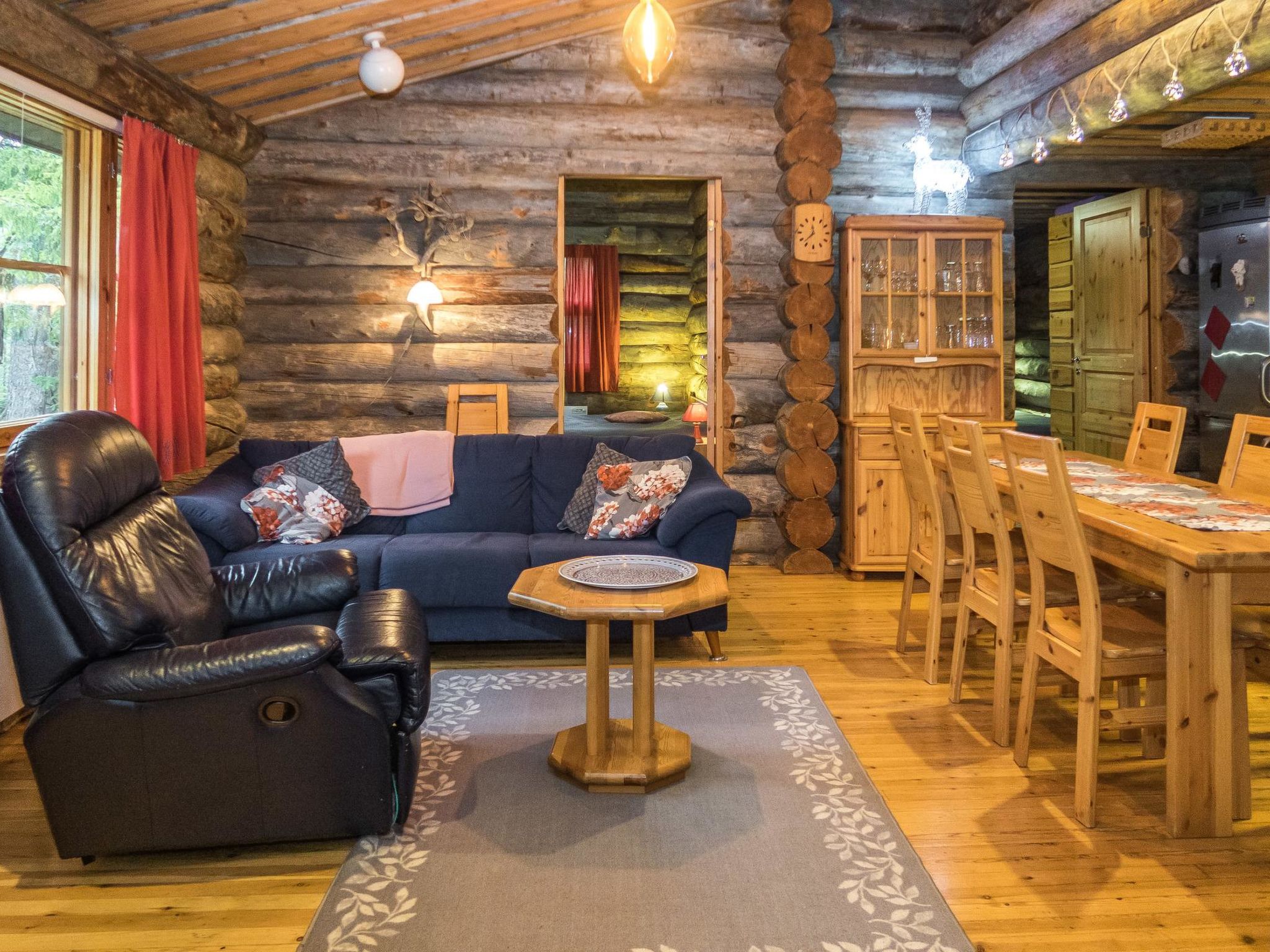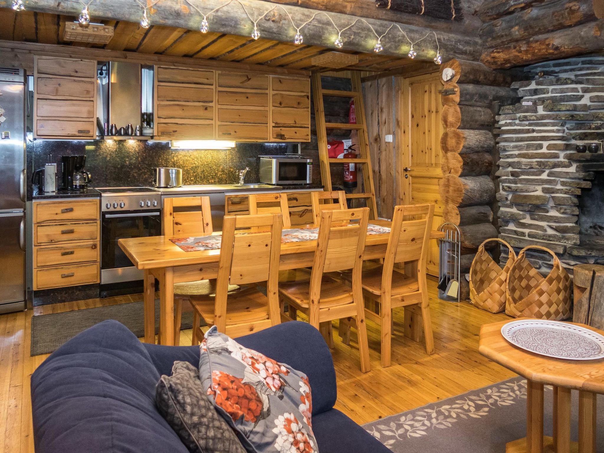 25 km nördlich von Kuusamo, Baujahr 1988. Kieferhütte im Reihenhaus, Wohnküche, Schlafzimmer 1: zwei Betten á 80 x 200 cm, Schlafzimmer 2: Doppelbett, 4 Matratzen auf dem Dachboden (steile Treppe zum Dachboden), Kamin, Badezimmer, Toilette, Sauna. Erdgeschoss 78 m2, Dachboden 30 m2. Ferienwohnung im Kiefer-Blockhaus mit 3 weiteren Ferienwohnungen. 200 m zum See Kesäjärvi mit Sandufer, wo ein Ruderboot zu finden ist (zur Mitbenutzung mit einer anderen Ferienwohnung). Der nächste Skilift befindet sich in der Talvijärvi Gegend 2.1 km (Lift ist normalerweise von Dezember bis April geöffnet), Ruka Zentrum liegt cca 3 km entfernt. Nächster Lebensmittelmarkt ist 800 m entfernt. Endreinigung ist in den Buchungen, die nach 11.10.2018 getätigt worden sind, inbegriffen. Ski-Wartungsraum zur Mitbenutzung, befindet sich am Ende des Lagergebäudes. Im gleichen Gebäude ist auch separate Lagerung für Brennholz. Die Buchungen beginnen um 16:00 Uhr und enden um 12:00 Uhr (auch bei Wochenendbuchungen).