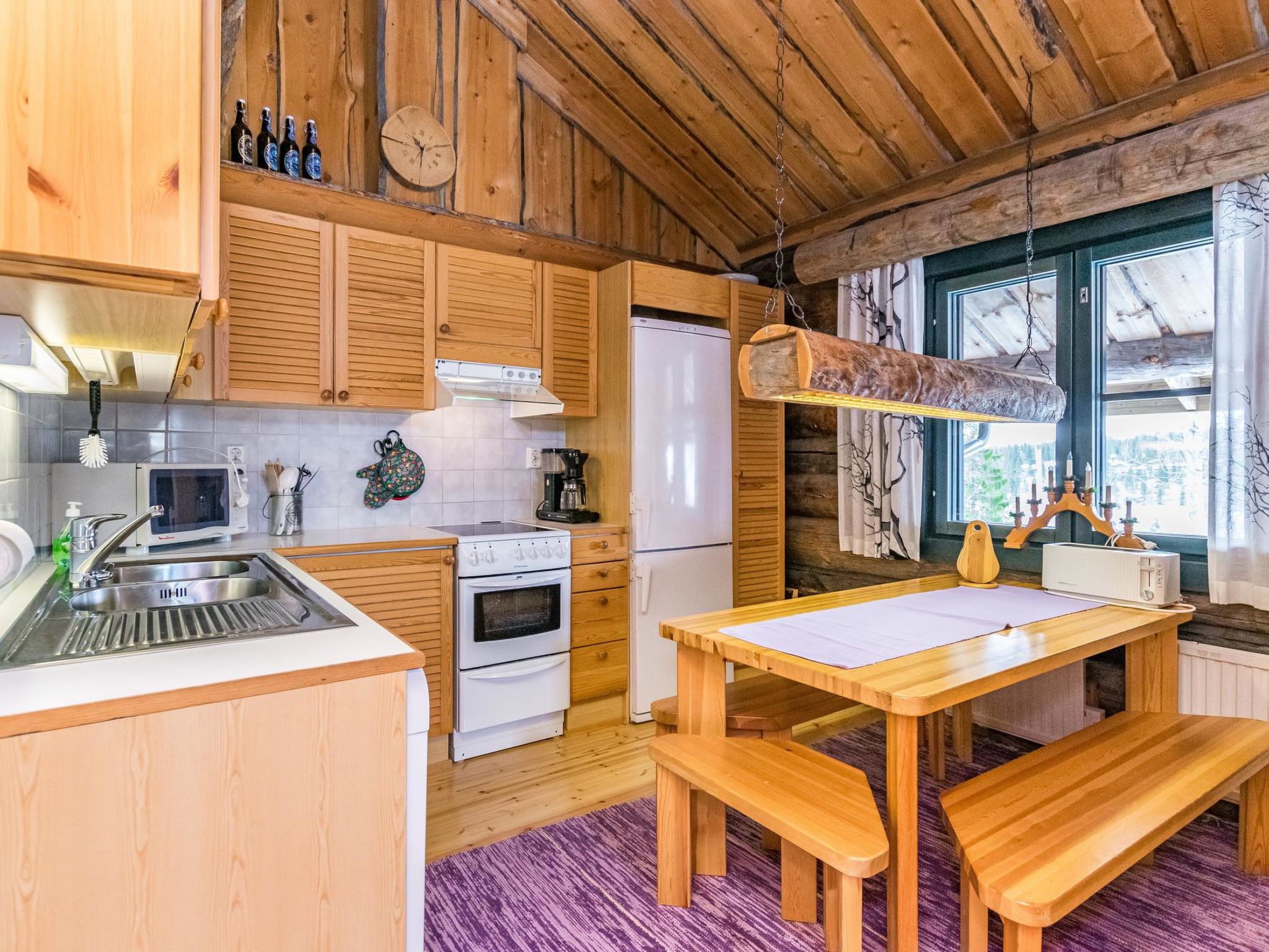 28 km nördlich von Kuusamo, Vuosseli (Ost Ruka) 800 m. Gemütliches Doppel-Blockferienhaus, Baujahr 1989, Schlafzimmer 1: 2 Betten, Schlafzimmer 2: Schlafsofa für 2, Dachboden: 5 Matratzen, Wohnküche, elektrische Sauna. Block-Ferienhaus-Gegend in Saarua-Aho, an der Ylätie Strasse. Nächster Skilift RukaExpress, nächstes Restaurant Ski Bistro. Zusätzliche Informationen: Vom Parkplatz über die Treppe zum Ferienhaus. Andere Entfernungen: Valtavaara Tageswanderweg 1 km, Oulanka Nationalpark / Pieni Karhunkierros Pfad 29 km. Buchungen beginnen um 16:00 Uhr und enden um 12:00 Uhr (auch bei Wochenendbuchungen).