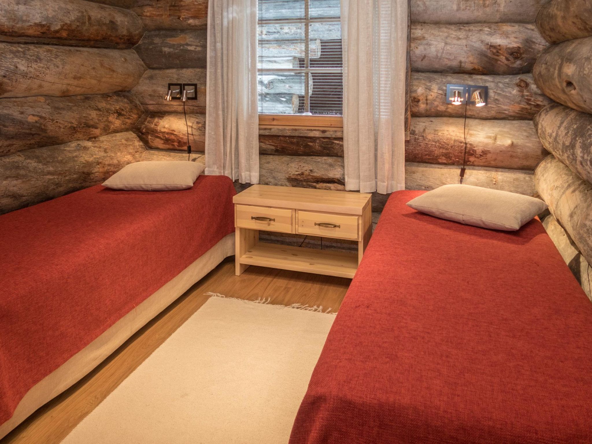 28 km nördlich von Kuusamo, Dorf Ruka (West-Ruka) 1.5 km. Kelo-Blockhaus, Baujahr 2007, Schlafzimmer 1-3 (im Erdgeschoss): 2 Betten, Schlafzimmer 4-5 (im Obergeschoss): 2 Betten. Wohnküche, elektrische Sauna. Bettwäsche und Endreinigung sind im Preis inbegriffen. Stilvolles und geräumiges Kelo-Blockhaus im Ferienhausgebiet, in der Nähe von Skipisten. Andere Entfernungen: Oulanka Nationalpark/Karhunkierros Pfad 23 km, Riisitunturi 29 km. Weitere Informationen: Entfernung zum Skibus 100 m. Das nächstgelegene Restaraunt Royal Ruka. Bettwäsche und Endreinigung sind im Preis inbegriffen. Hauswirtschaftsraum mit Skiwachsmöglichkeit. Buchungen beginnen um 16 Uhr und enden um 12 Uhr (auch bei Wochenendbuchungen).