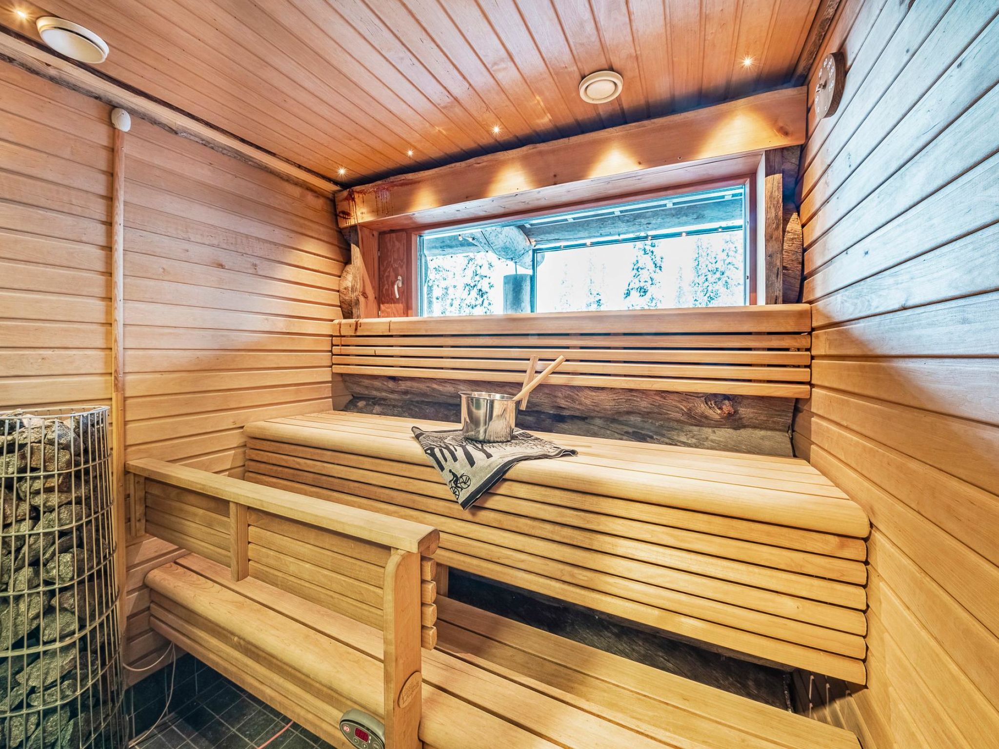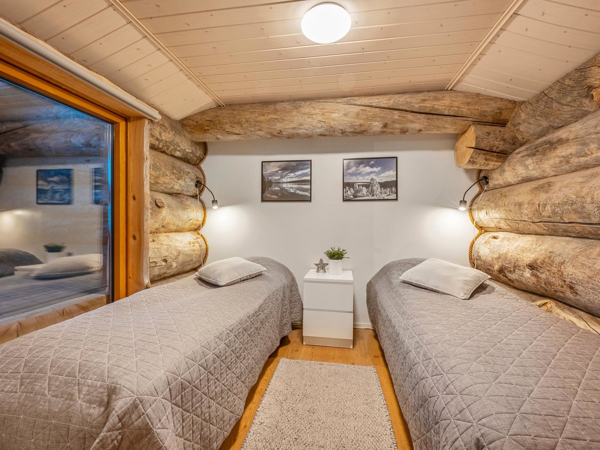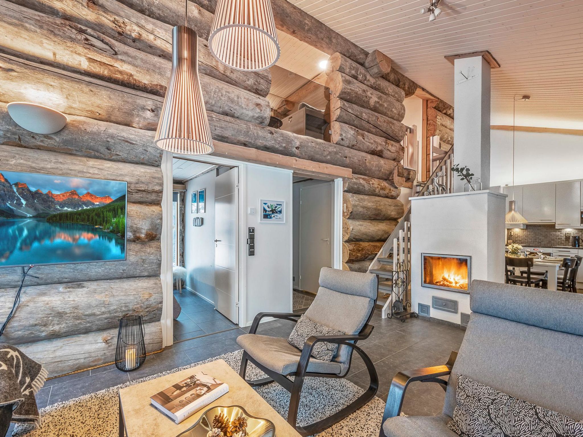 B-Seite eines Kelo-Blockdoppelhauses, in einer gemütlichen Hausgegend, zwischen dem Skigebiet Rukatunturi und der finischen Nationalstrasse 5, gelegen. Der nächste Skilift - Kelo, das nächste Restaurant - Royal Ruka. 26 km nördlich von Kuusamo, Dorf Ruka (West-Ruka) 2.5 km. Schlafzimmer 1 (Erdgeschoss): Doppelbett, Schlafzimmer 2-3 (Obergeschoss): 2 Betten, Lobby im Obergeschoss: ausziehbare Schlafcouch für zwei Personen. Wohnküche, elektrische Sauna, Ankleideraum. Vom verglasten Balkon können Sie einen direkten Blick auf die Natur geniessen. Andere Entfernungen: Oulanka Nationalpark / Karhunkierros Pfad 22 km. Weitere Informationen: 100 MB WLAN-Verbindung. Klimaanlage. Buchungen beginnen um 16:00 Uhr und enden um 12:00 Uhr (auch bei Wochenendbuchungen).