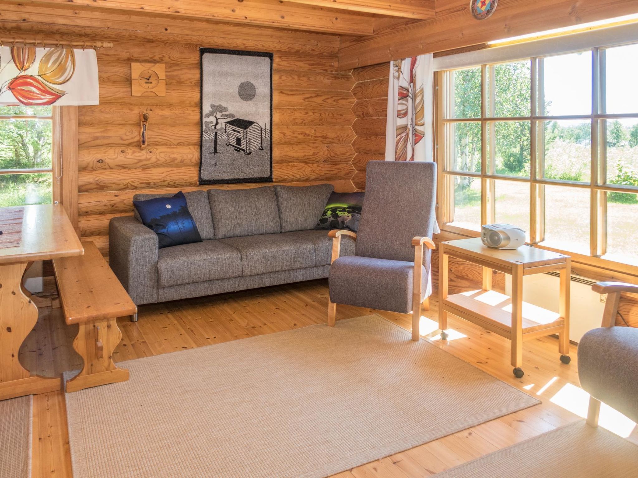 Von Kuusamo 38 km nach Norden, Dorf Ruka (West-Ruka, 14 km). Zum See Kitkajärvi 100 m, 2 Boote zur Mitbenutzung für 4 Ferienwohnungen. Baujahr des Doppelhauses 1988. Erdgeschoss: Wohnküche, elektrische Sauna. Schlafzimmer 1: Doppelbett, Schlafzimmer 2: Etagenbett. Wohnzimmer: ausziehbares Bett für 2. Dachboden (15 m2, niedrige Raumhöhe): 2 Matratzen. In einer ruhigen Gegend, umgeben von Feldern. Zum See Kitkajärvi 100 m, zum Wintersportzentrum Ruka 14 km. Zusätzliche Ausstattung: Drahtlose Internetverbindung verfügbar, diesbezüglich bitte den Hausmeister kontaktieren. Grillhütte zur Mitbenutzung mit 4 Ferienwohnungen. Volleyballfeld. Andere Entfernungen: Oulanka Nationalpark / Pieni Karhunkierros Pfad 17.5 km. Nächste Skipiste 8 km, Käylä beleuchtete Piste (Länge 2.5 km). Zusätzliche Informationen: Es gibt keinen Gefrierschrank oder Gefrierfach im Haus. Der Besitzer kann, bei Bedarf, seinen Gefrierschrank bei sich zu Hause ausleihen. Die Ferienwohnungen Kuukkeli und Käki befinden sich im selben Gebäude. Buchungen beginnen um 16:00 Uhr und enden um 12:00 Uhr (auch bei Wochenendbuchungen).