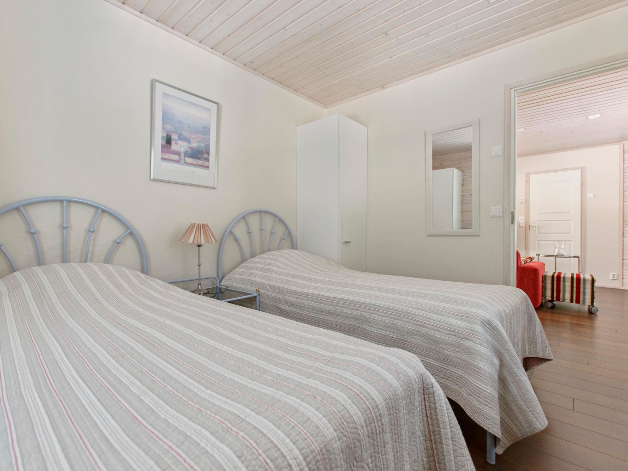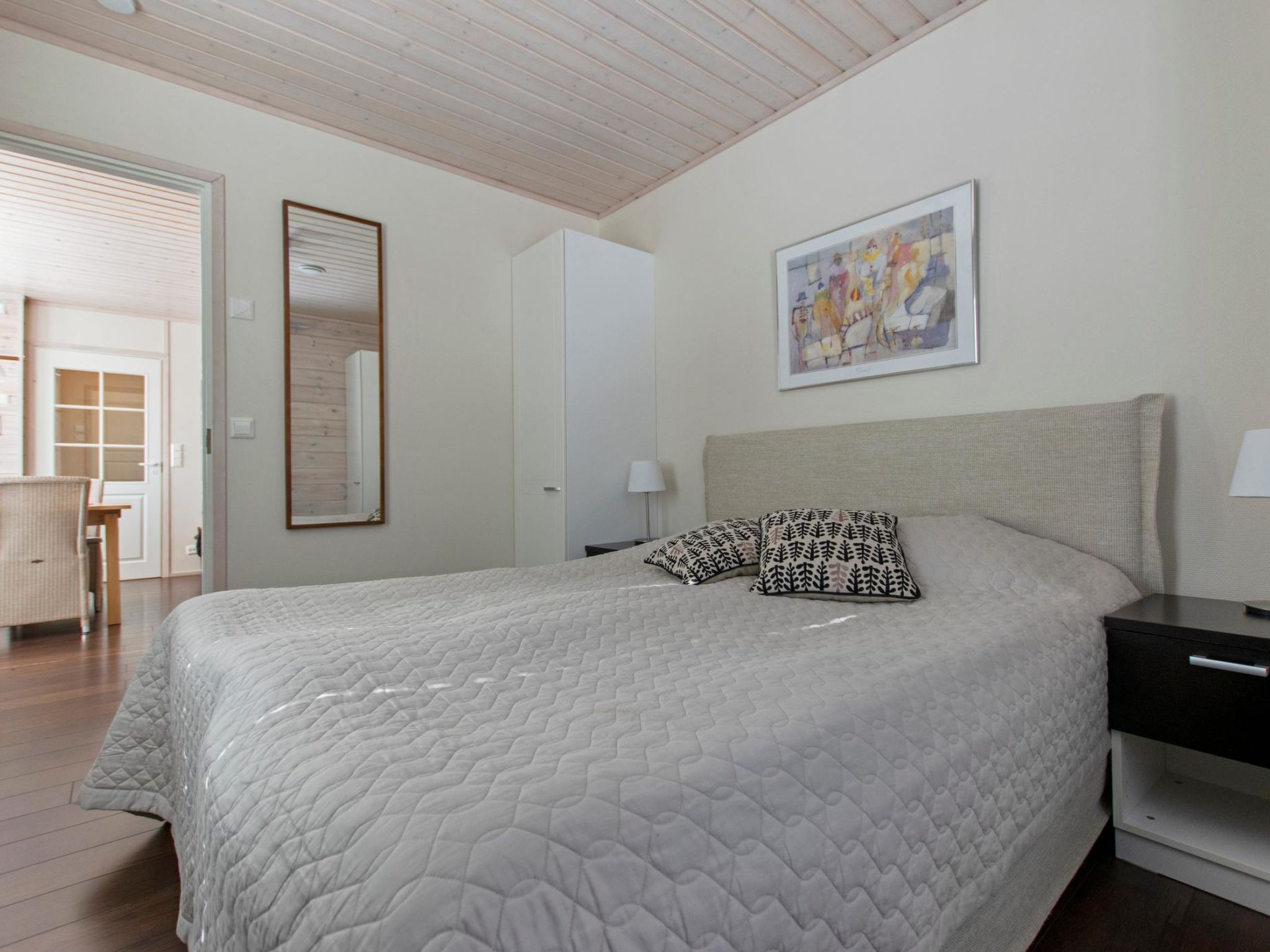 25 km nördlich von Kuusamo, Vuosseli (Ost Ruka) 1.2 km. Block-Ferienhaus, Baujahr 2006, Schlafzimmer 1: Doppelbett, Schlafzimmer 2: 2 Betten mit Federkernmatratzen, Schlafzimmer auf dem Dachboden: 4 Betten mit Federkernmatratzen + 2 Matratzen, Wohnküche. Elektrische Sauna, Ankleideraum, 2 Duschen. Erdgeschoss 78 m² + Obergeschoss 30 m². Gegend mit Ferienwohnungen und Ferienhäusern an der Nietospolku Strasse. Nächster Skilift Masto, nächstes Restaurant RoySki Pub. Zusätzliche Ausstattung: Wasserkocher, abschliessbarer (kalter) Skiraum. Ski-Wachsraum vorhanden, zur Mitbenutzung mit anderen Ferienhäusern im selben Hof. Andere Entfernungen: Oulanka Nationalpark / Pieni Karhunkierros Pfad 28 km. Zusätzliche Informationen: Geschirr für 12 Personen, 2 Fernseher. Buchungen beginnen um 16:00 Uhr und enden um 12:00 Uhr (auch bei Wochenendbuchungen).
