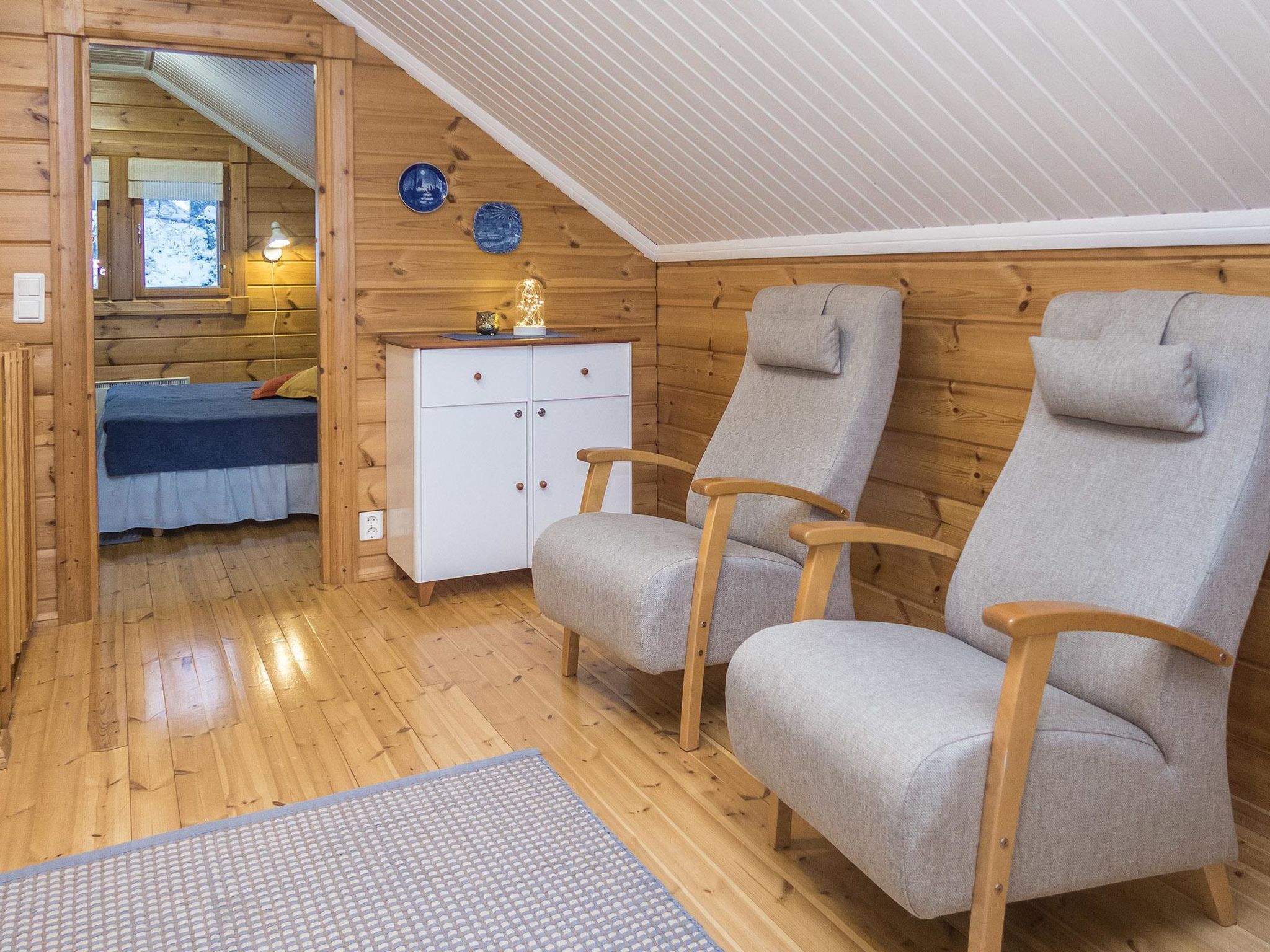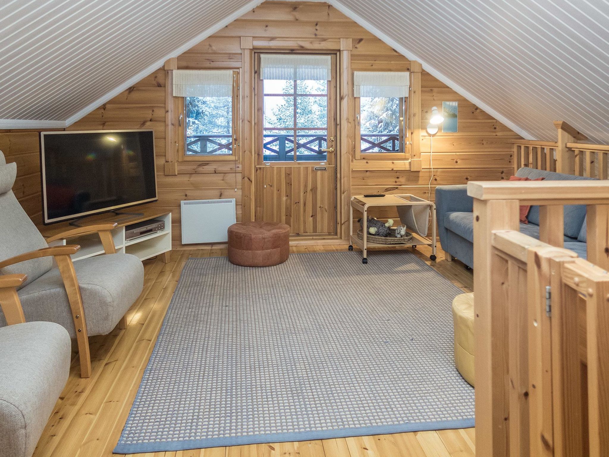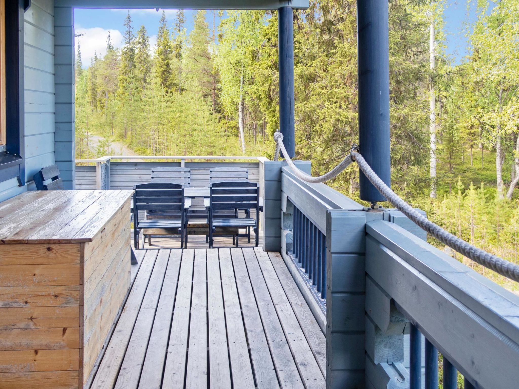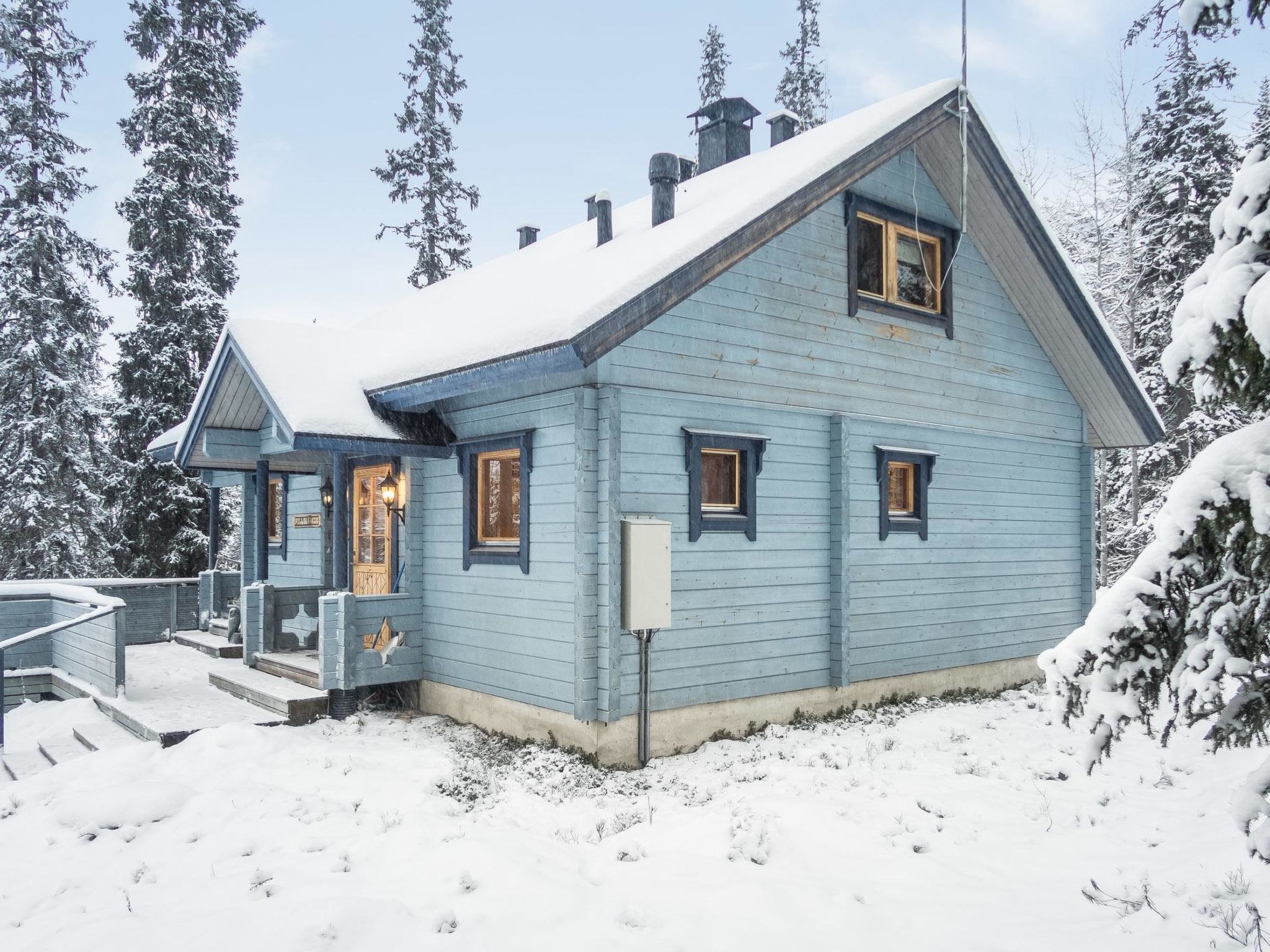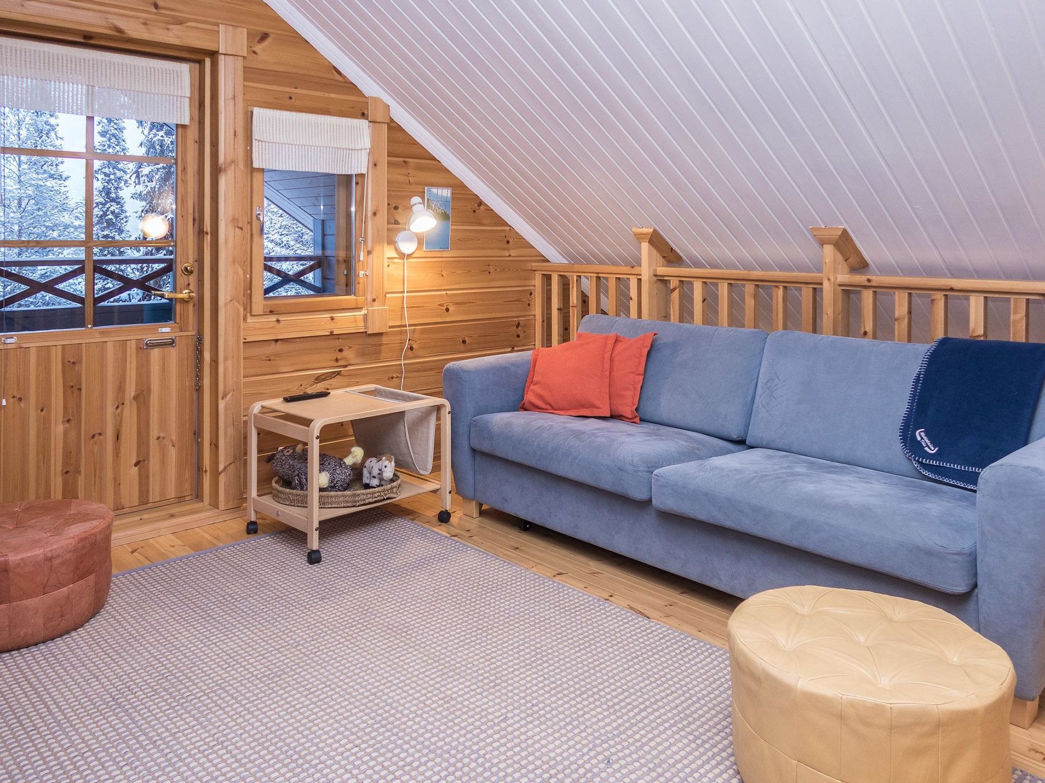 Maximal 2 Haustiere/Hunde erlaubt. 33 km nördlich von Kuusamo, See Konttaisenjärvi 50 m (Länge 1 km, Breite 500 m), flacher und harter Sandboden, Ufer zur Mitbenutzung, eigenes Boot. Block-Berghütte, Baujahr 2004, Wohnküche, Schlafzimmer mit Doppelbett, Hauswirtschafts-/Ankleideraum, Waschraum, Sauna (Elektroherd), offene Veranda, Schlafzimmer im Obergeschoss mit 1 Bett (120 cm breit) und Doppelbett, Erholungsloft mit Schlafcouch/Bett für zwei und Balkon. Internet-Zugang. Berghütte in schöner Lage, Blick auf die Fjells am gegenüberliegenden Ufer. Berghütte ist am Hang gebaut, Treppe vom Parkplatz zur Hütte. Ruka-Loipennetz verläuft direkt an der Hütte vorbei, der nächste Ruka-Skilift ist 8 km entfernt, das Dorf Ruka 9 km. Karhunkierros (Bärenspur) Rucksackroute 1 km, Kuusamo Stromschnellen 10-20 km, Kuusamon Tropiikki Thermalbad 30 km. Schneemobilweg 700 m.