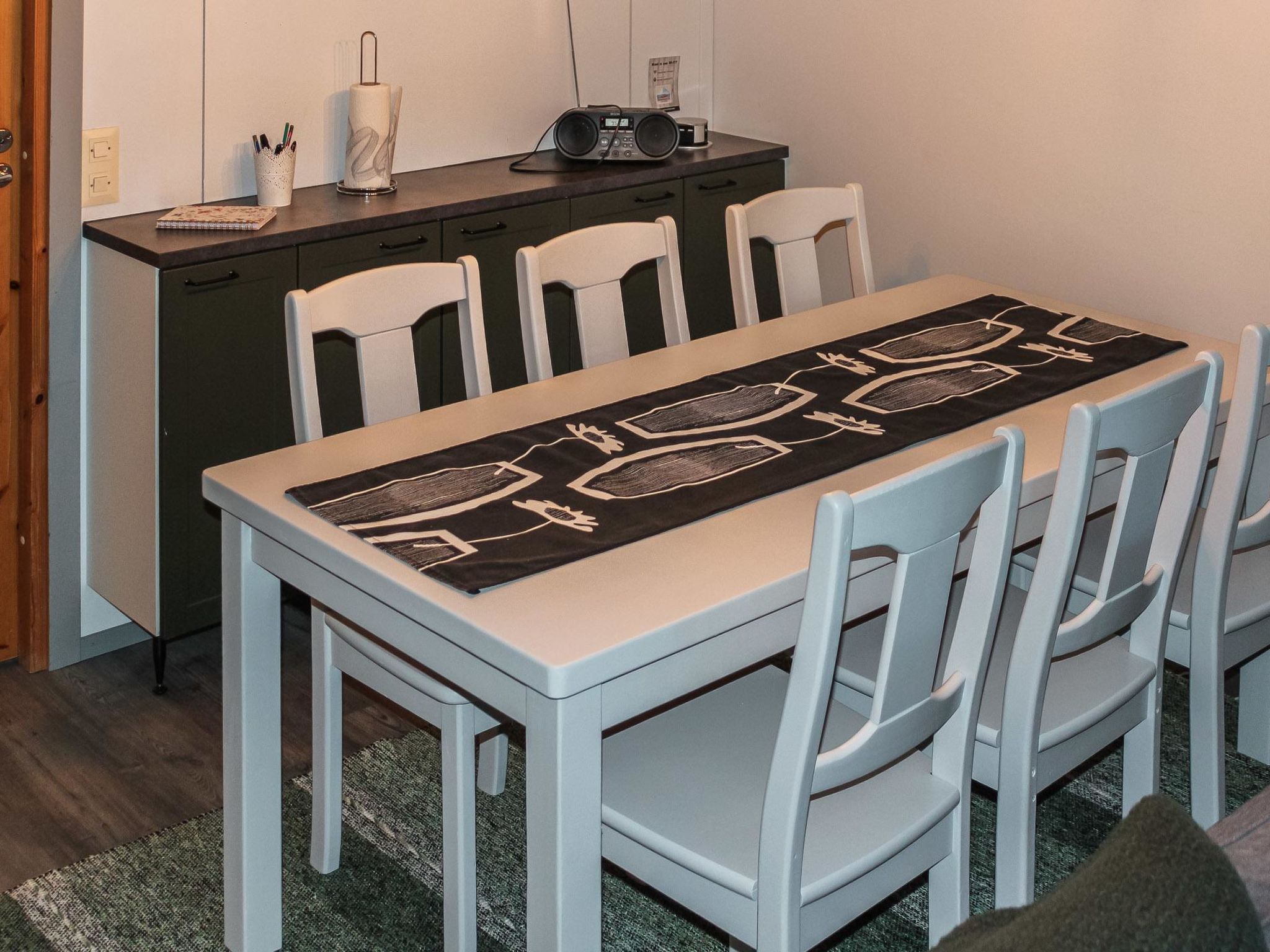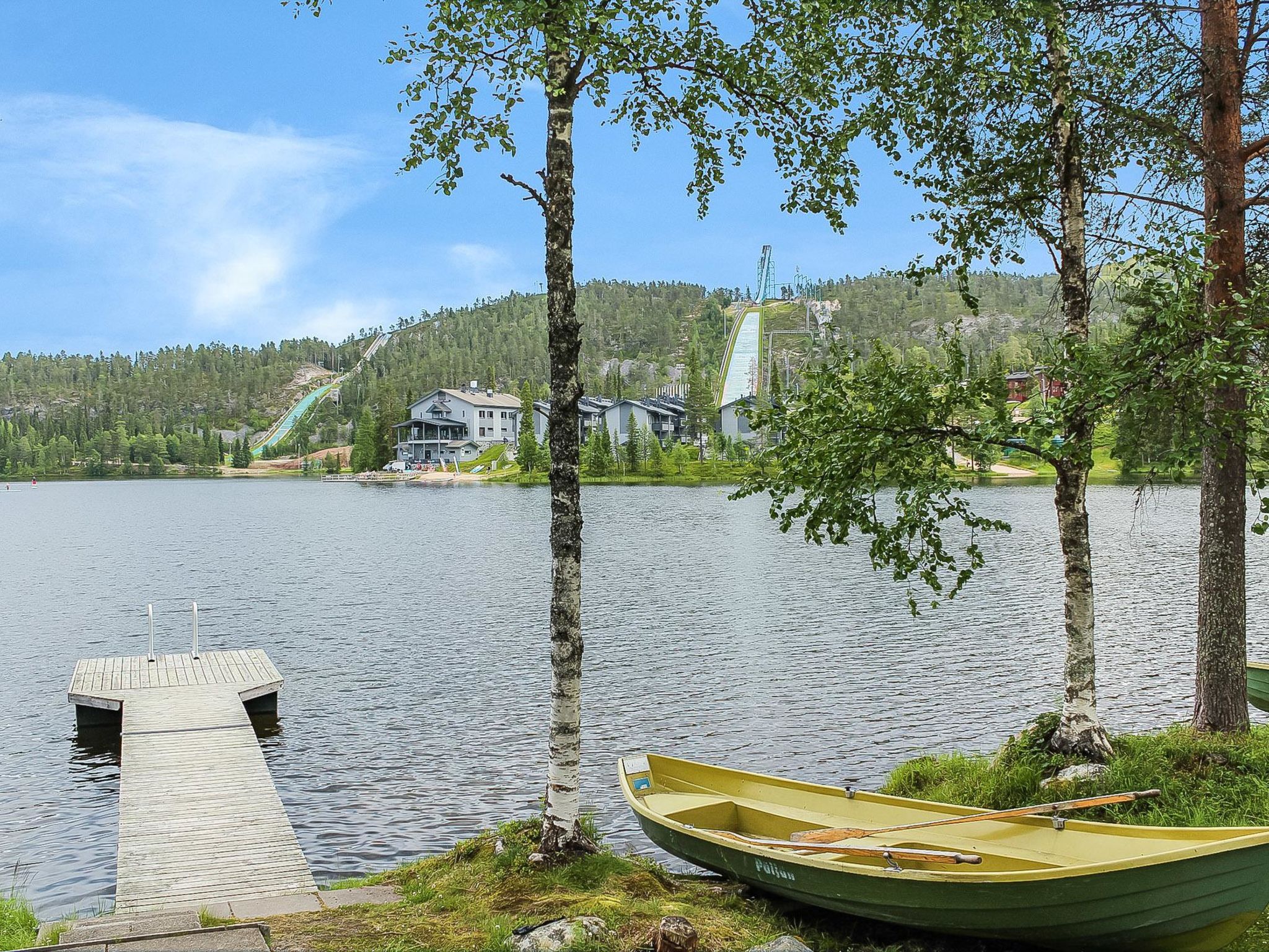 25 km nördlich von Kuusamo, Dorf Ruka (West Ruka) 2.2 km, See Talvijärvi 50 m, flacher Strand. Planken-Ferienwohnung, Baujahr 1989, Schlafzimmer 1: Doppelbett, Schlafzimmer 2: Etagenbett, Dachboden (14 m2, Höhe 160 cm, steile Treppe): 4 Betten, Wohnküche, elektrische Sauna. Dieses Reihenhaus befindet sich am See Talvijärvi. Andere Reihenhäuser in der Umgebung. Zusätzliche Ausstattung: Ruderboot. Babybett zur Mitbenutzung mit der benachbarten Ferienwohnung, teilen Sie bitte im Voraus mit, wenn Sie ein Babybett benötigen. Andere Entfernungen: Oulanka Nationalpark / Pieni Karhunkierros Pfad 21 km, Riisitunturi Fjell 27 km. Zusätzliche Informationen: Skibus-Haltestelle in der Nähe. Gemeinsamer Grill zur Mitbenutzung mit den anderen Ferienwohnungen (Brennholz nicht im Preis inbegriffen). Nächstes Restaurant Rukan Kaarna. Wenn Sie keine Endreinigung buchen und die Ferienwohnung am Ende nicht reinigen, wird der Hausmeister Ihnen eine doppelte Reinigungsgebühr berechnen. Buchungen beginnen um 16:00 Uhr und enden um 12:00 Uhr (auch bei Wochenendbuchungen).
