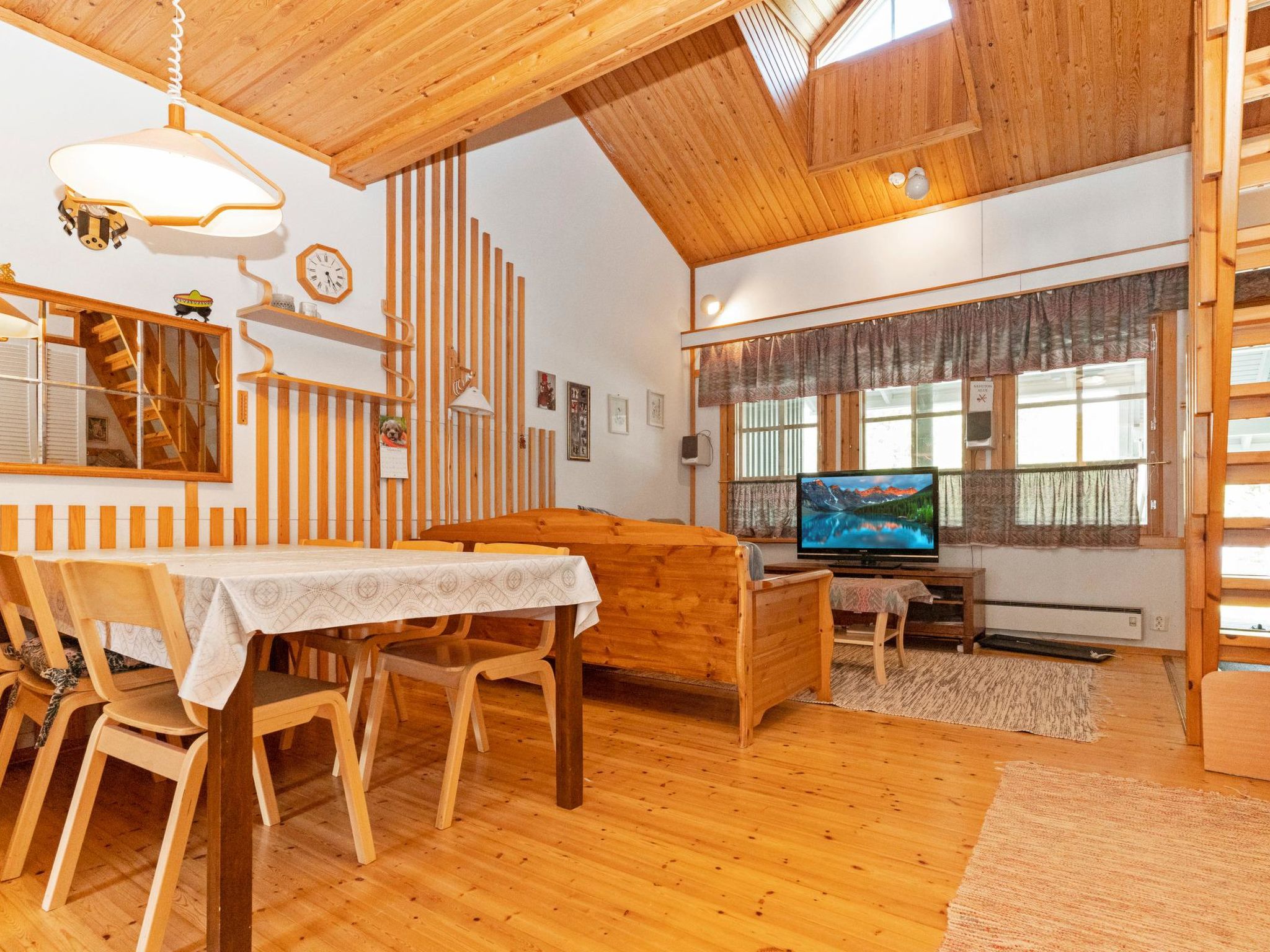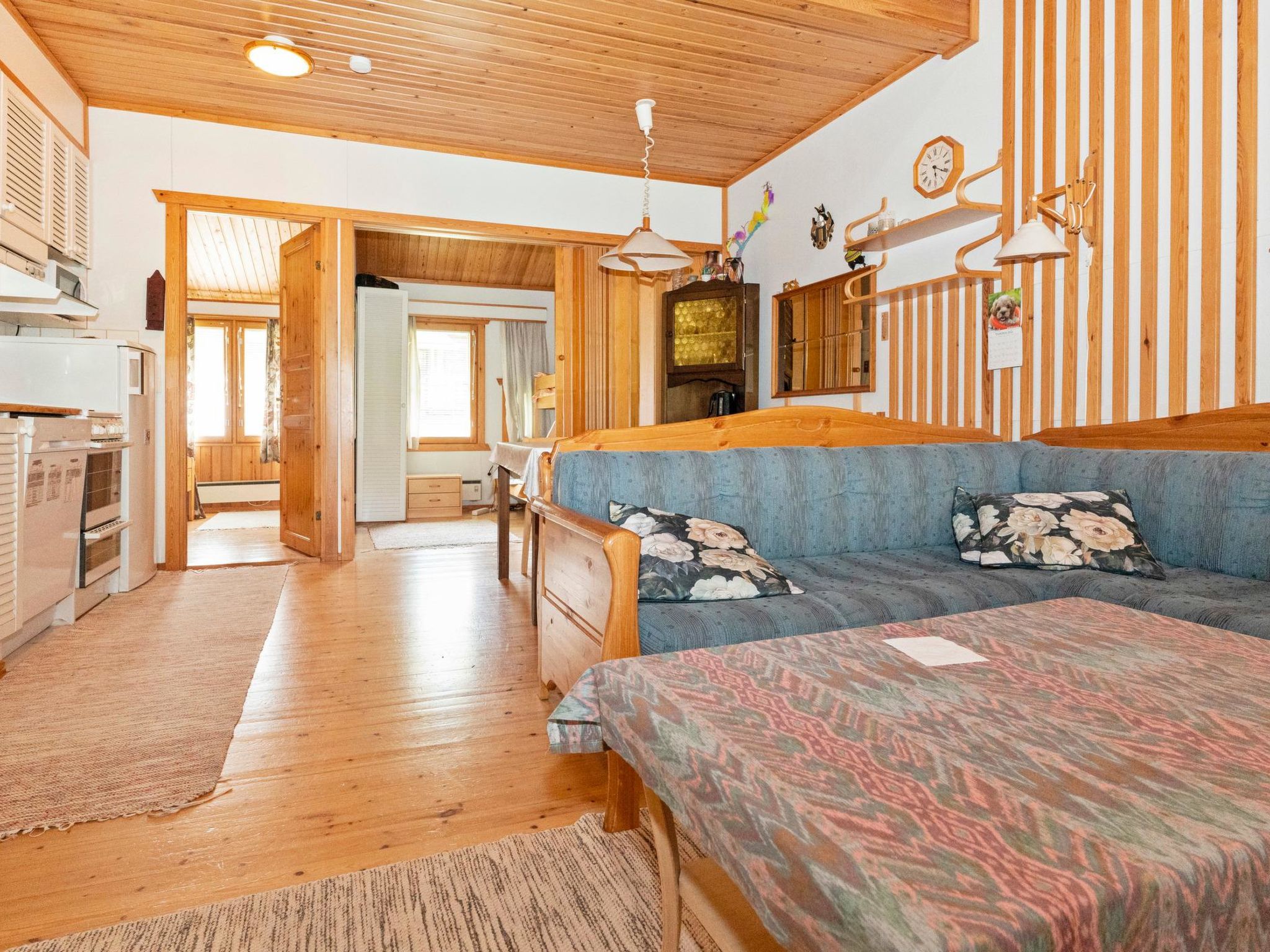 25 km nördlich von Kuusamo, Ruka Dorf (West Ruka) 2 km, See Talvijärvi 30 m. Ferienwohnung, Baujahr 1989, Schlafzimmer 1: 2 Betten, Schlafzimmer 2 (Falttür): Etagenbett (unteres Bett 120 cm, oberes Bett 80 cm breit), Dachboden: 2 Betten und niedriges Etagenbett, Wohnküche, elektrische Sauna. Erdgeschoss 50 m² + Dachboden 14 m². Ferienwohnung kann für maximal 6 Personen gemietet werden. Diese Ferienwohnung, im Reihenhaus, befindet sich direkt am See Talvijärvi. Andere Reihenhäuser in der Gegend, aber das B-Haus befindet sich direkt am See, schöne Aussicht auf den Rukatunturi Fjell. Abschliessbarer Skiraum. Bootssteg (Möglichkeit zum Schwimmen) und Lagerfeuerplatz zur Mitbenutzung. Andere Entfernungen: Oulanka Nationalpark / Pieni Karhunkierros Pfad 21 km, Riisitunturi Fjell 27 km. Zusätzliche Informationen: Nur für Familien. Skibus-Haltestelle 50 m. Nächstes Restaurant Rukan Kaarna. Buchungen beginnen um 16.00 Uhr und enden um 12:00 Uhr (auch bei Wochenendbuchungen).