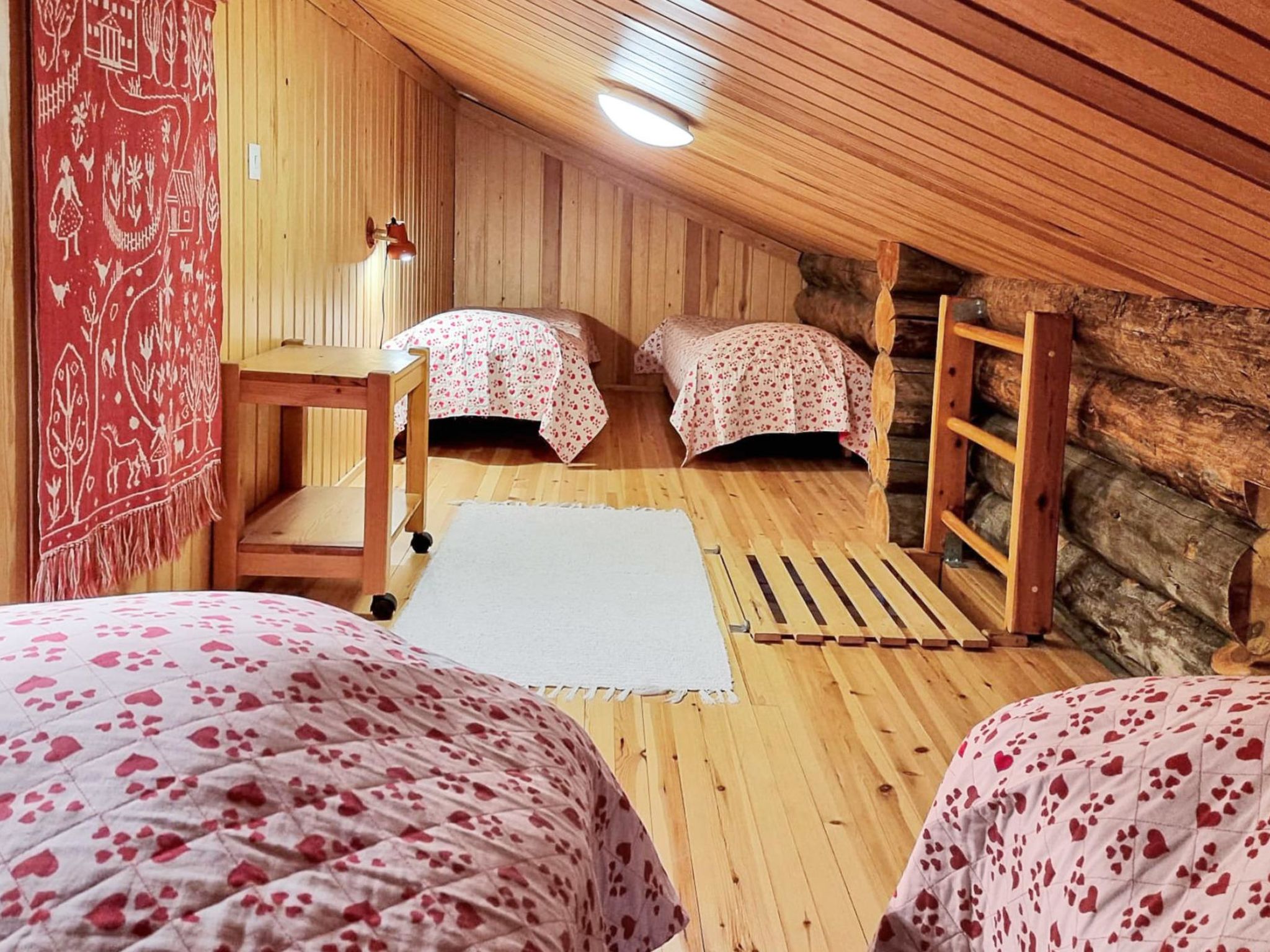 25 km nördlich von Kuusamo, Ruka 3 km, See Kesäjärvi 200 m. Block-Ferienwohnung, Baujahr 1991, Schlafzimmer: Doppelbett, Wohnzimmer: Schlafcouch, Dachboden (16 m², niedrige Raumhöhe, steile Treppe): 4 Betten. Wohnküche. Elektrische Sauna. Im Erdgeschoss 43 m² + Dachboden 16 m². Diese Wohnung befindet sich im Ferienhausgebiet, in der Nähe des Sees Kesäjärvi. Andere Entfernungen: Oulanka Nationalpark / Pieni Karhunkierros Pfad 23 km, Riisitunturi Fjell 30 km. Zusätzliche Informationen: Skibus-Haltestelle in der Nähe. Steile Leiter zum Dachboden. Die Gebühr für die Endreinigung beträgt ds Doppelte, wenn keine Reinigung gebucht wurde und die Ferienwohnung ungereinigt hinterlassen wurde. Die Buchungen beginnen um 16:00 Uhr und enden um 12:00 Uhr (auch bei Wochenendbuchungen).