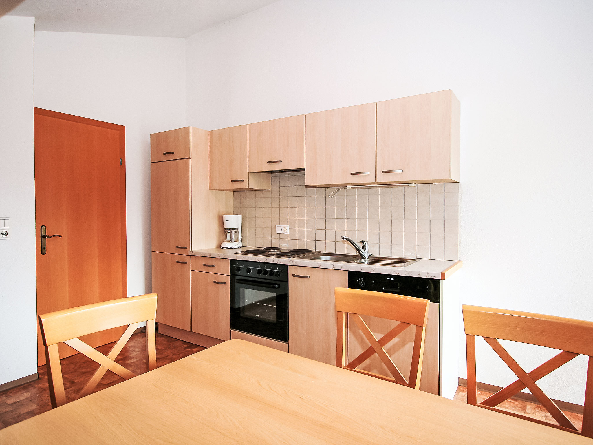 3-Zimmer-Wohnung 65 m2 im 1. Stock. Gemütlich eingerichtet: Eingang. 1 Doppelzimmer. 1 Zimmer mit 2 Betten. Wohn-/Schlafzimmer mit 1 Doppeldiwanbett, Esstisch und Sat-TV (Flachbildschirm). Ausgang zum Balkon. Offene Küche (4 Kochplatten, Backofen, Geschirrspüler, Wasserkocher, elektrische Kaffeemaschine). Dusche, sep. WC. Balkon. Balkonmöbel. Sehr schöne Sicht auf die Berge und die Landschaft. Zur Verfügung: Internet (Wireless LAN, extra). 1 Haustier/Hund erlaubt.