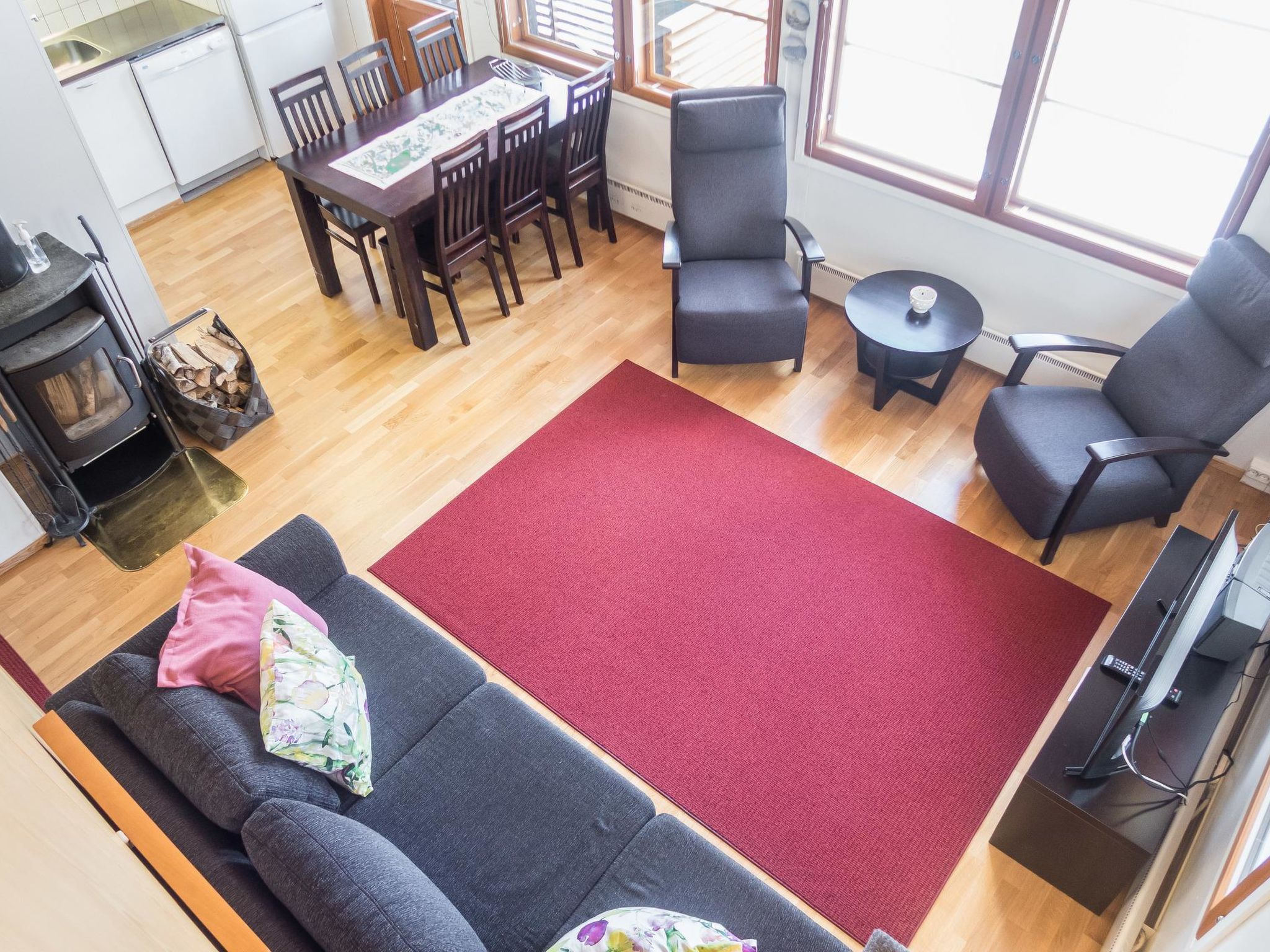 29 km nördlich von Kuusamo, Dorf Ruka (West-Ruka) 200 m. Ferienwohnung, Baujahr 2002, Schlafzimmer: Doppelbett, Obergeschoss: 2 Betten, Wohnzimmer: Schlafcouch für zwei, Wohnküche, elektrische Sauna. Fläche der Ferienwohnung 57 m2: Erdgeschoss 47 m2, Obergeschoss 10 m2. Ferienwohnung befindet sich in der Nähe des Zentrums von Ruka, am Fuss der Vorderpiste. Nächste Skilifte Talvijärvi a Kuru. Andere Entfernungen: Oulanka Nationalpark / Pieni Karhunkierros Pfad 23 km, Riisitunturi Fjell 29 km. Zusätzliche Informationen: Für Familien und geschäftliche Nutzung geeignet. Balkon in Richtung Skistadion. Buchungen beginnen um 16:00 Uhr und enden um 12:00 Uhr (auch bei Wochenendbuchungen).