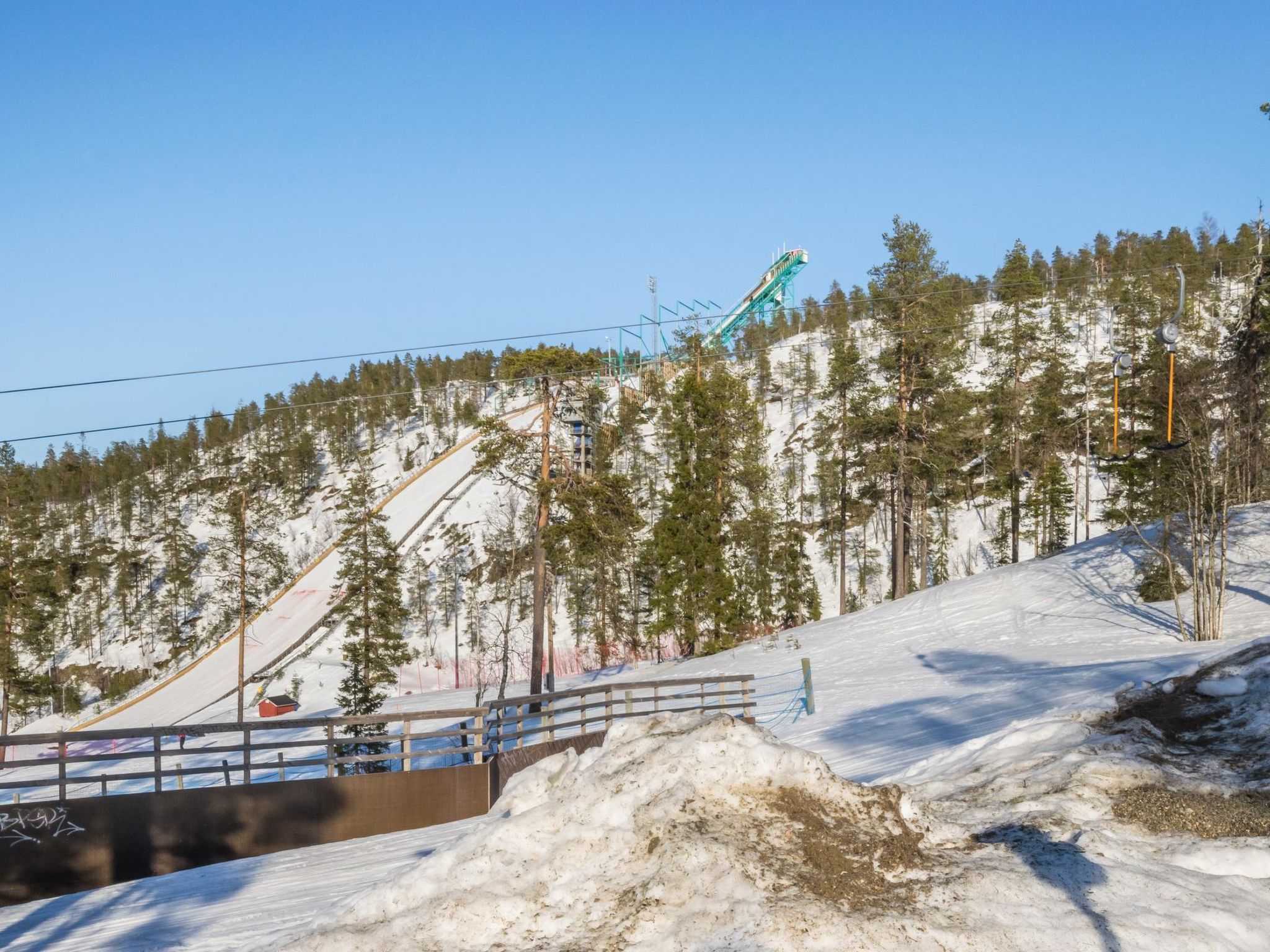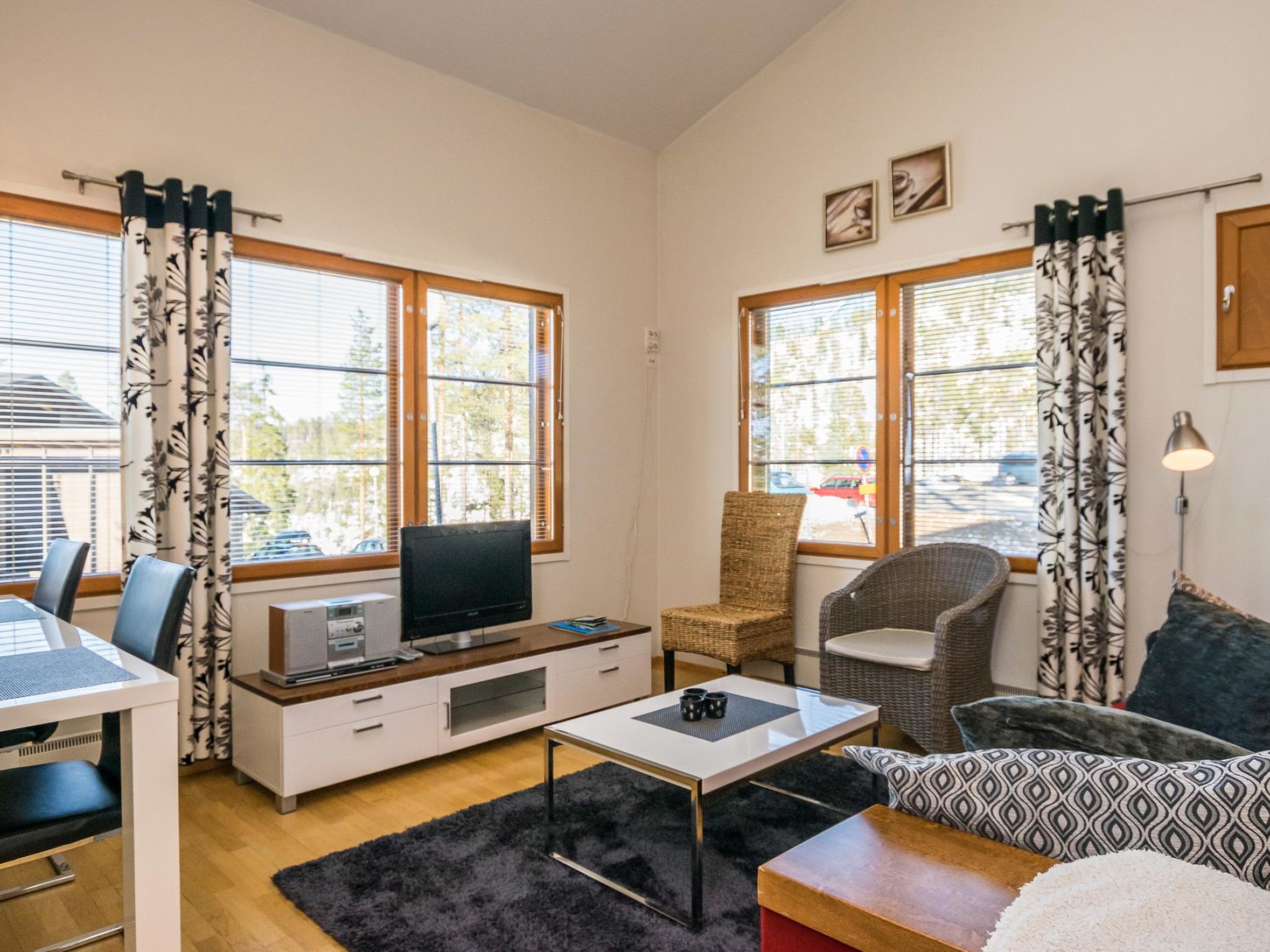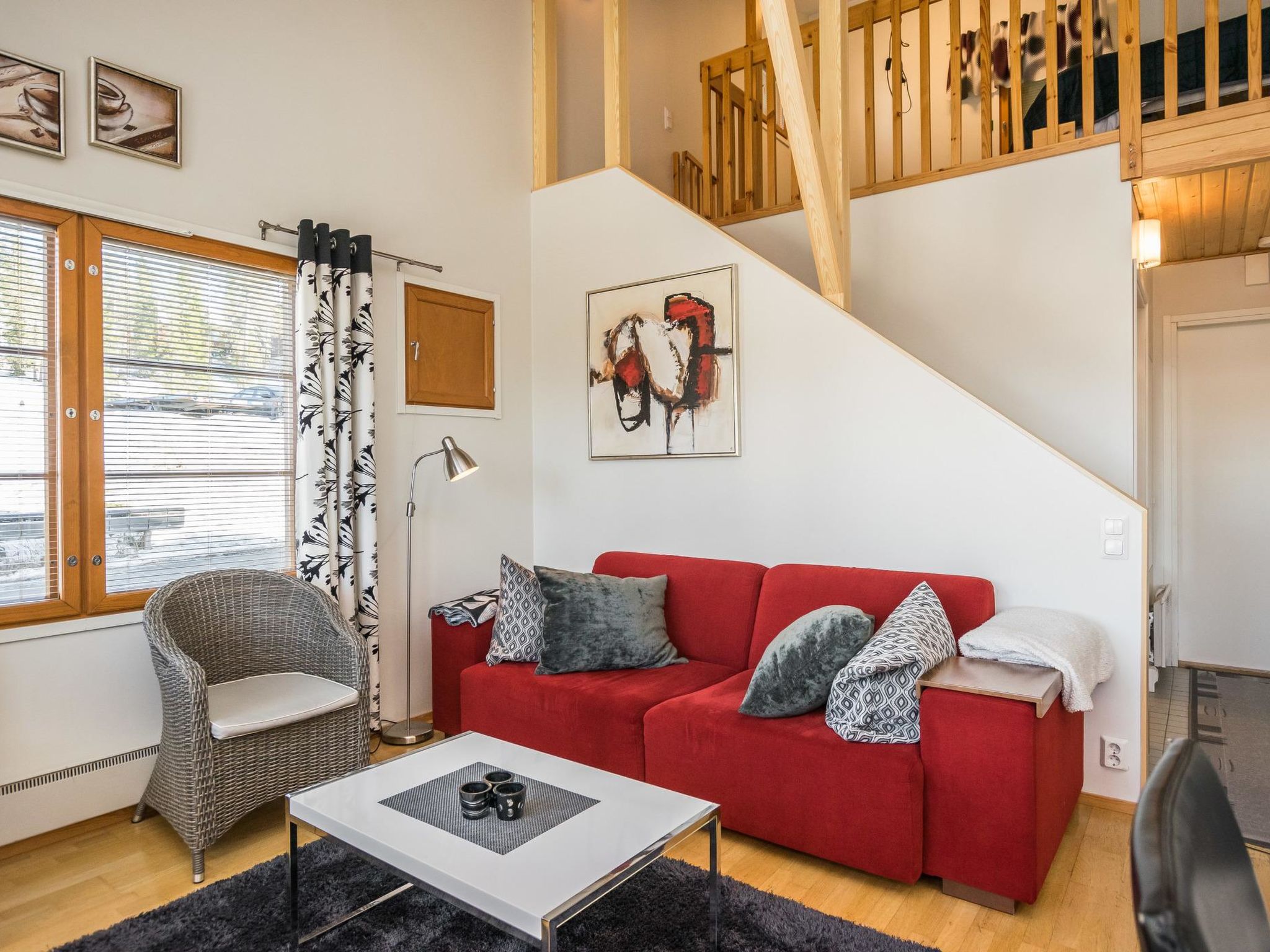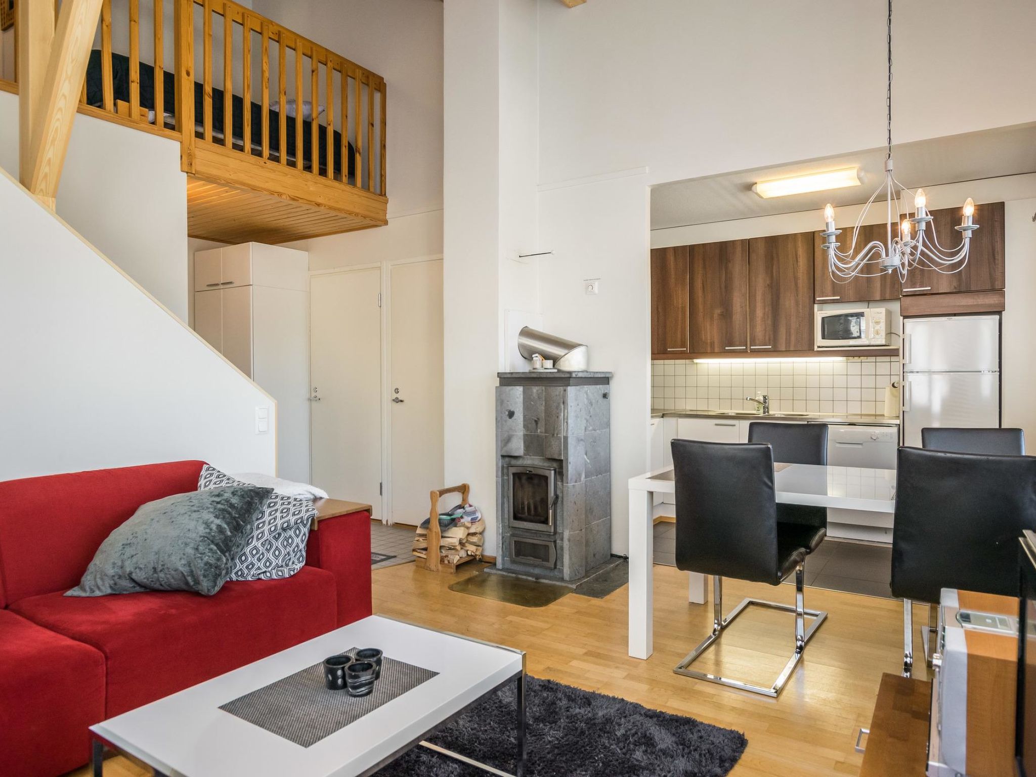 29 km nördlich von Kuusamo, Ruka Dorf (West Ruka) 200 m. Gute Qualtitätswohnung, Baujahr 2002, Schlafzimmer: 2 Betten, Obergeschoss 2 Betten + Matratze, Wohnküche, elektrische Sauna. Fläche der Ferienwohnung 57 m²: Erdgeschoss 47 m², Obergeschoss 10 m². Diese Ferienwohnung befindet sich in der Nähe des Ruka Zentralsbereichs, am Fuss der vorderen Piste. Nächste Skilifte Talvijärvi und Kuru. Zusätzliche Ausstattung: Kindersausstattung (Hochstuhl + Babybett) auf Anfrage und gegen Aufpreis. Andere Entfernungen: Oulanka Nationalpark / Pieni Karhunkierros Pfad 23 km, Riisitunturi Fjell 29 km. Zusätzliche Informationen: Geeignet für Familien und Geschäftsreisende. Balkon Richtung Skistadion. Die Buchungen beginnen um 16:00 Uhr und enden um 12:00 Uhr (auch bei Wochenendbuchungen).