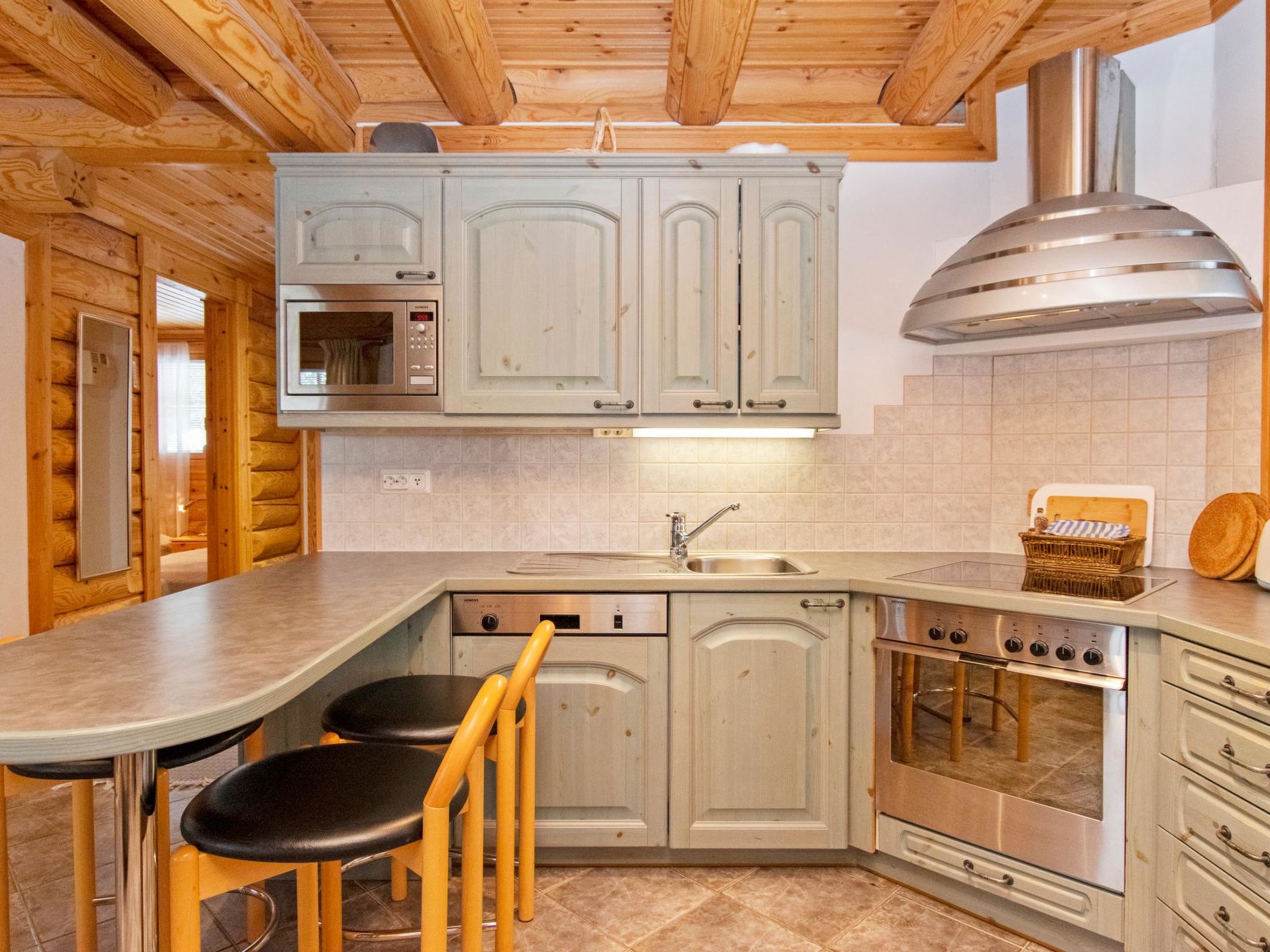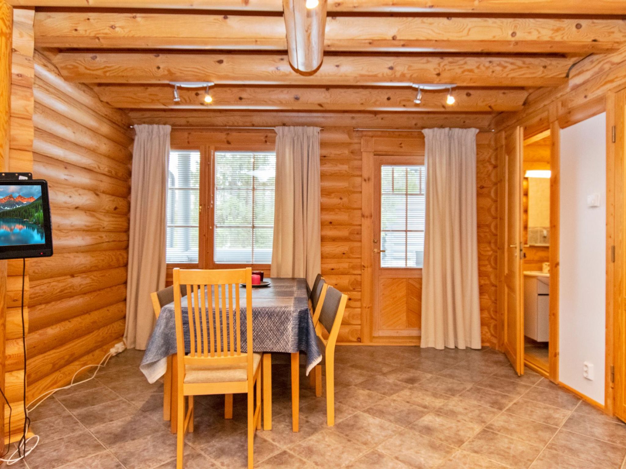 25 km nördlich von Kuusamo, Vuosseli (Ost Ruka) 700 m. Hochwertiges Block-Ferienhaus, Baujahr 2000, Schlafzimmer 1: Doppelbett, Schlafzimmer 2: 2 Betten, Dachboden: 3 Betten, Wohnküche, elektrische Sauna. Fläche des Ferienhauses: Erdgeschoss 90 m² und niedriges Dachgeschoss mit Dachschrägen 60 m² (höchster Punkt 180 cm). Gratis WiFi-Verbindung. Ferienhaus- und Ferienwohnungsgebiet, an der Hissikuja Strasse. Nächste Skilifte Vuosseli III und RukaExpress, nächstes Restaurant RoySki Pub. Andere Entfernungen: Oulanka Nationalpark / Pieni Karhunkierros Pfad 28 km, Valtavaara Tagesausflugspfad 900 m. Zusätzliche Informationen: Für Familien und Geschäftsreisende, 2 Duschen.