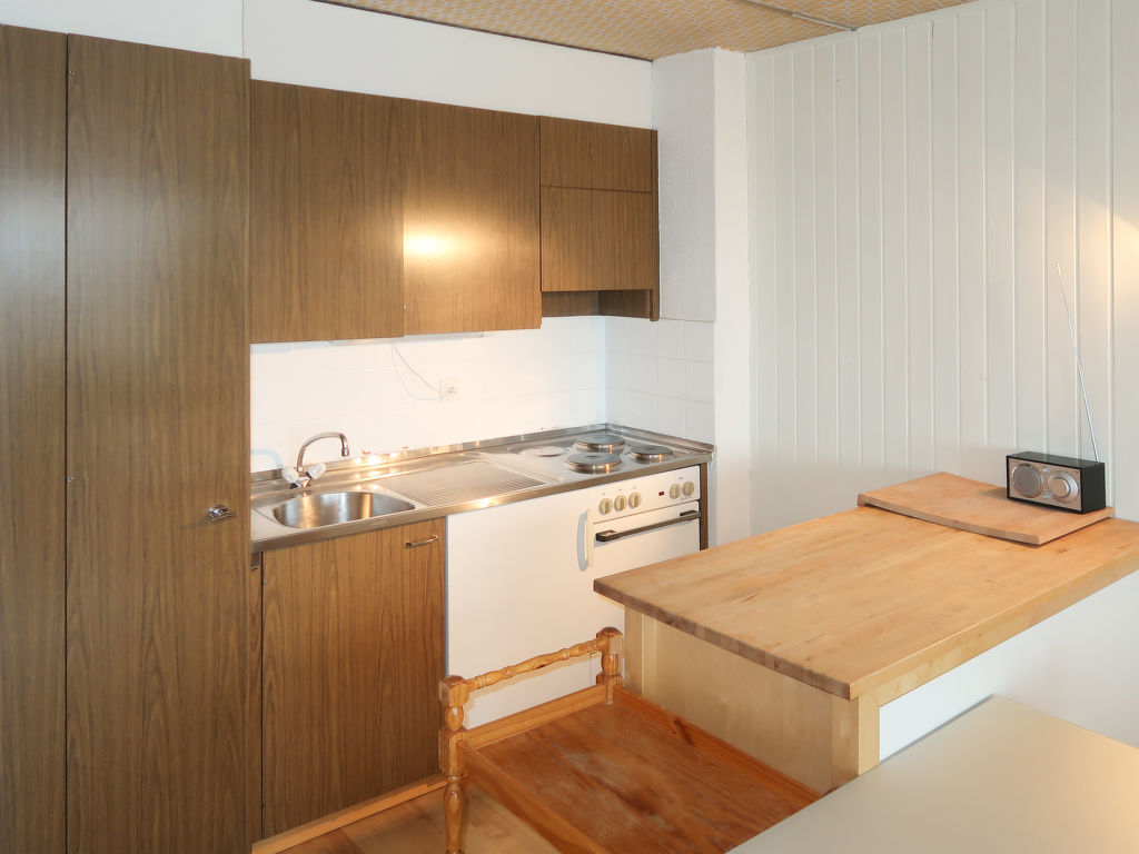 "Résidence Velan", 3-Zimmer-Wohnung 52 m2 im 1. Stock. Komfortabel und geschmackvoll eingerichtet: Wohn-/Esszimmer mit Kabel-TV. Ausgang zum Balkon. 1 Zimmer mit 2 Betten (80 cm, Länge 200 cm). Ausgang zum Balkon. 1 Kinderzimmer mit 1 x 2 Etagenbetten (90 cm, Länge 190 cm), 1 Ausziehbett (1 Pers.). Offene Küche (3 Kochplatten, Backofen) mit Durchreiche. Bad/WC. Balkon, Westlage. Balkonmöbel. Sehr schöne Sicht auf die Berge und die Landschaft. Zur Verfügung: Haartrockner. Internet (Wireless LAN, extra). Bitte beachten: Nichtraucher-Unterkunft.