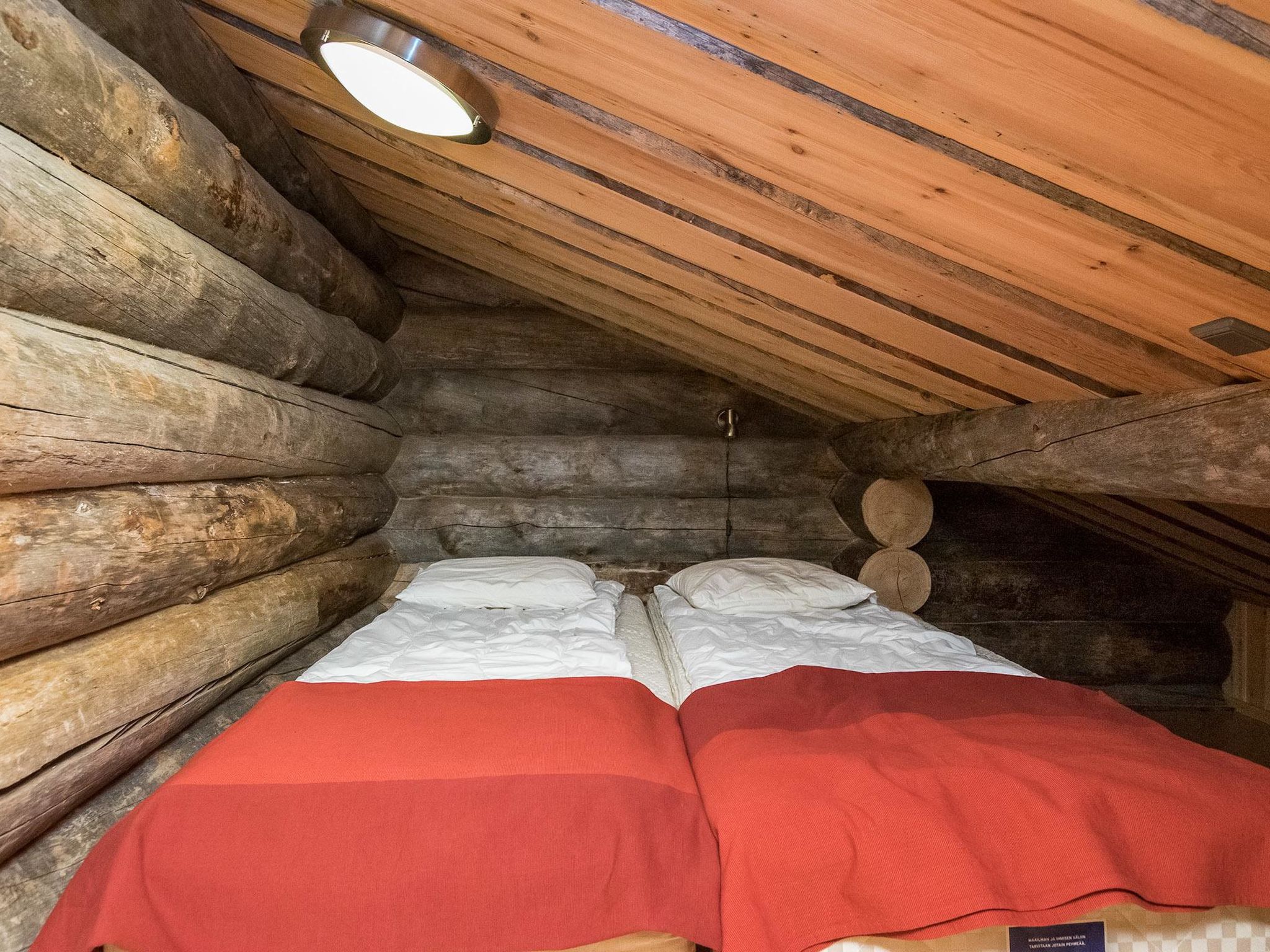 25 km nördlich von Kuusamo, Vuosseli (Ost Ruka) 900 m. Block (Kelo) - Doppelferienhaus, Baujahr 2010, Schlafzimmer 1: 2 Betten, Schlafzimmer 2: 2 Betten, Dachboden (10 m²): 2 Betten, Wohnküche, elektrische Sauna. Dicht bebautes Blockhausgebiet in Saarua-Aho, an der Saaruankuja Strasse. Nächster Skilift RukaExpress, nächstes Restaurant RoySki Pub. Andere Entfernungen: Valtavaara Tagesausflugspfad 1 km, Oulanka Nationalpark / Pieni Karhunkierros Pfad 29 km. Zusätzliche Informationen: Abgeschlossenes Skidepot. Hochstuhl, Töpfchen und Babybett (vom Hausmeister reserviert). Die Buchungen beginnen um 16:00 Uhr und enden um 12:00 Uhr (auch bei Wochenendbuchungen).