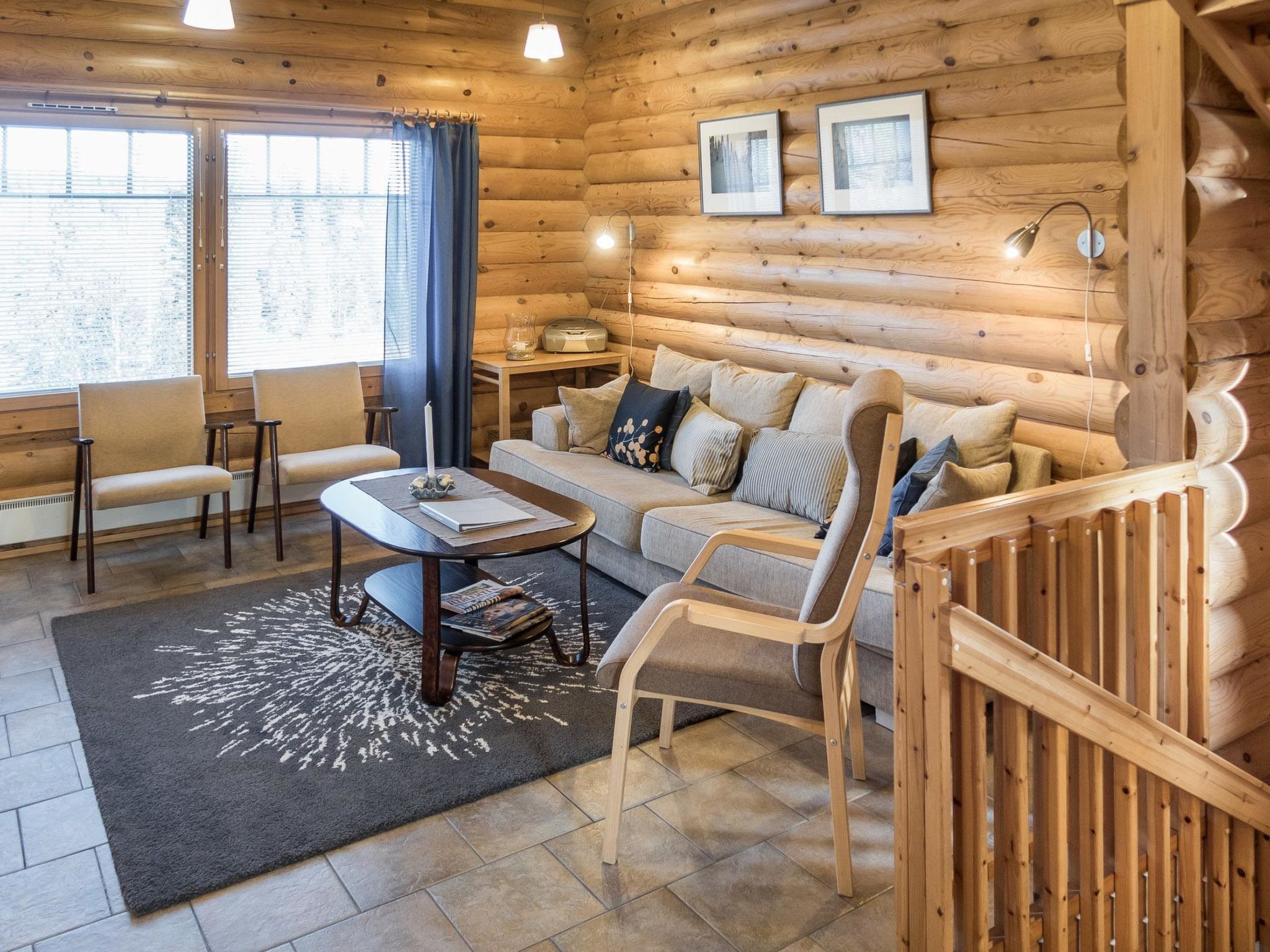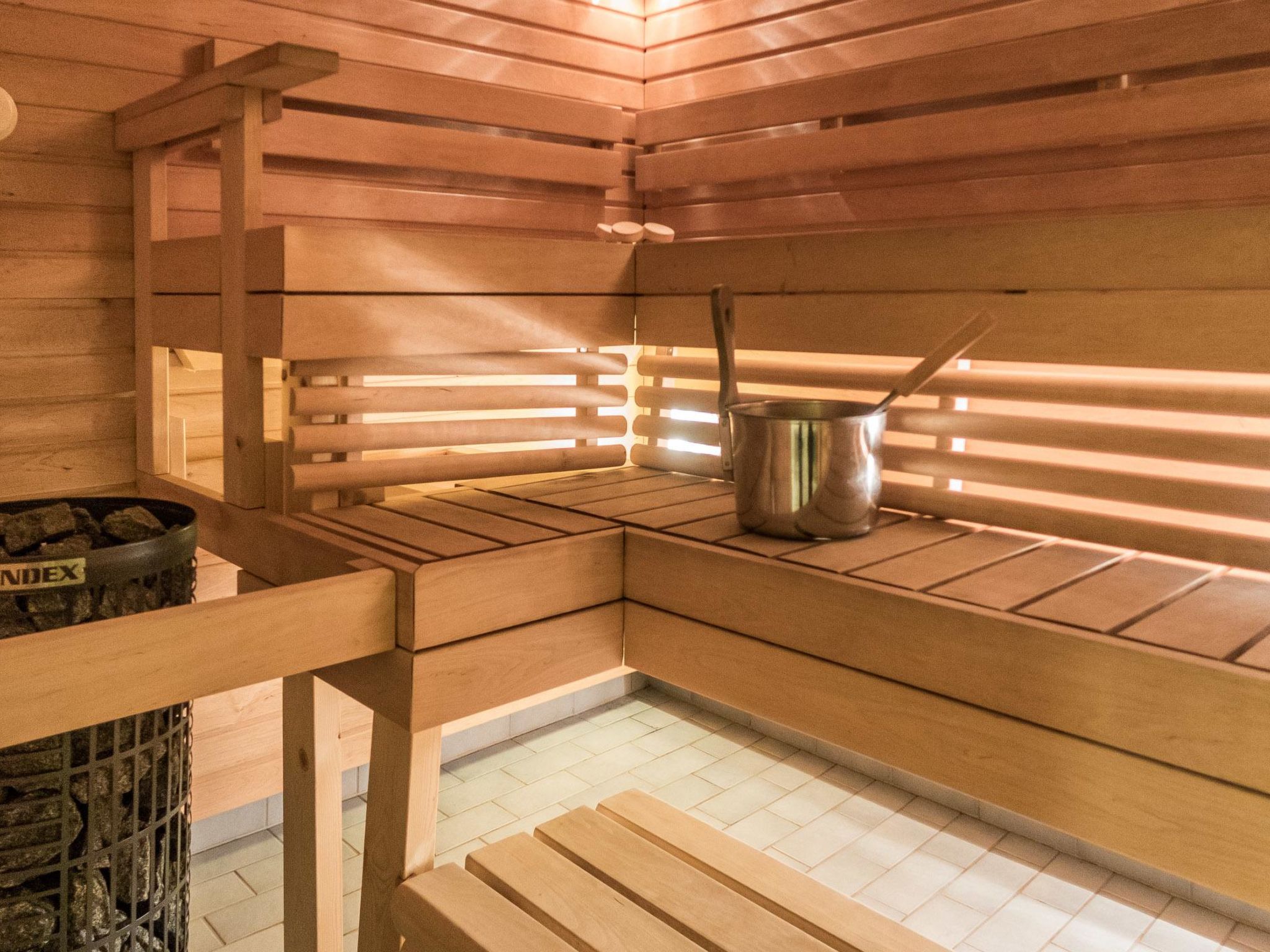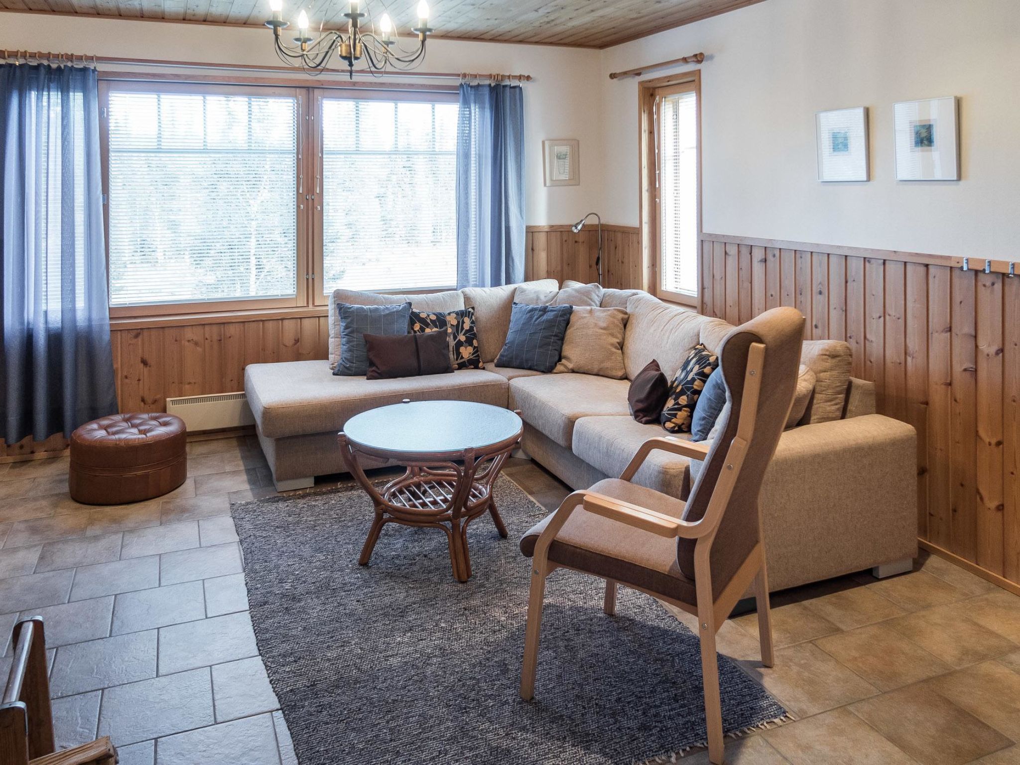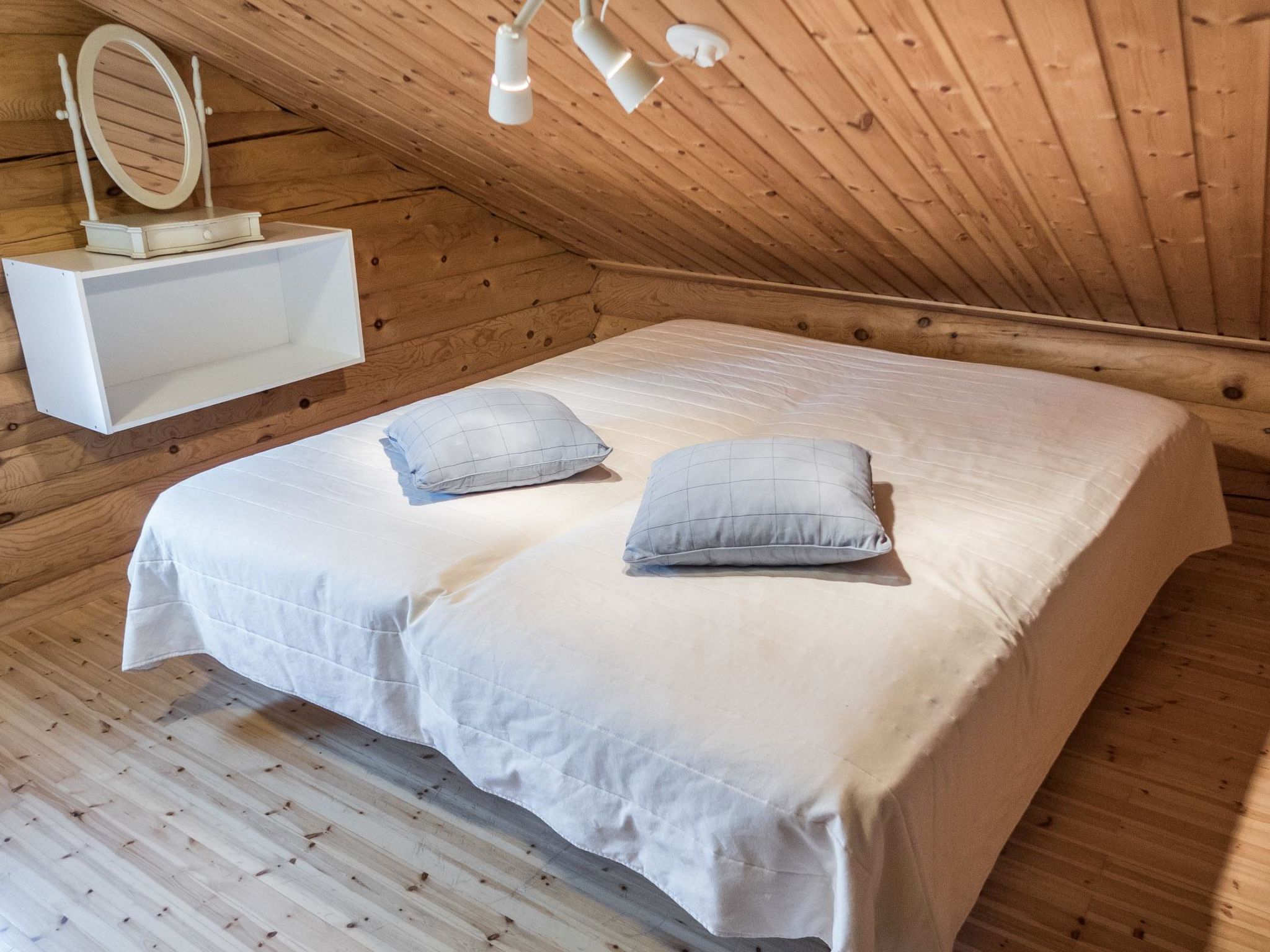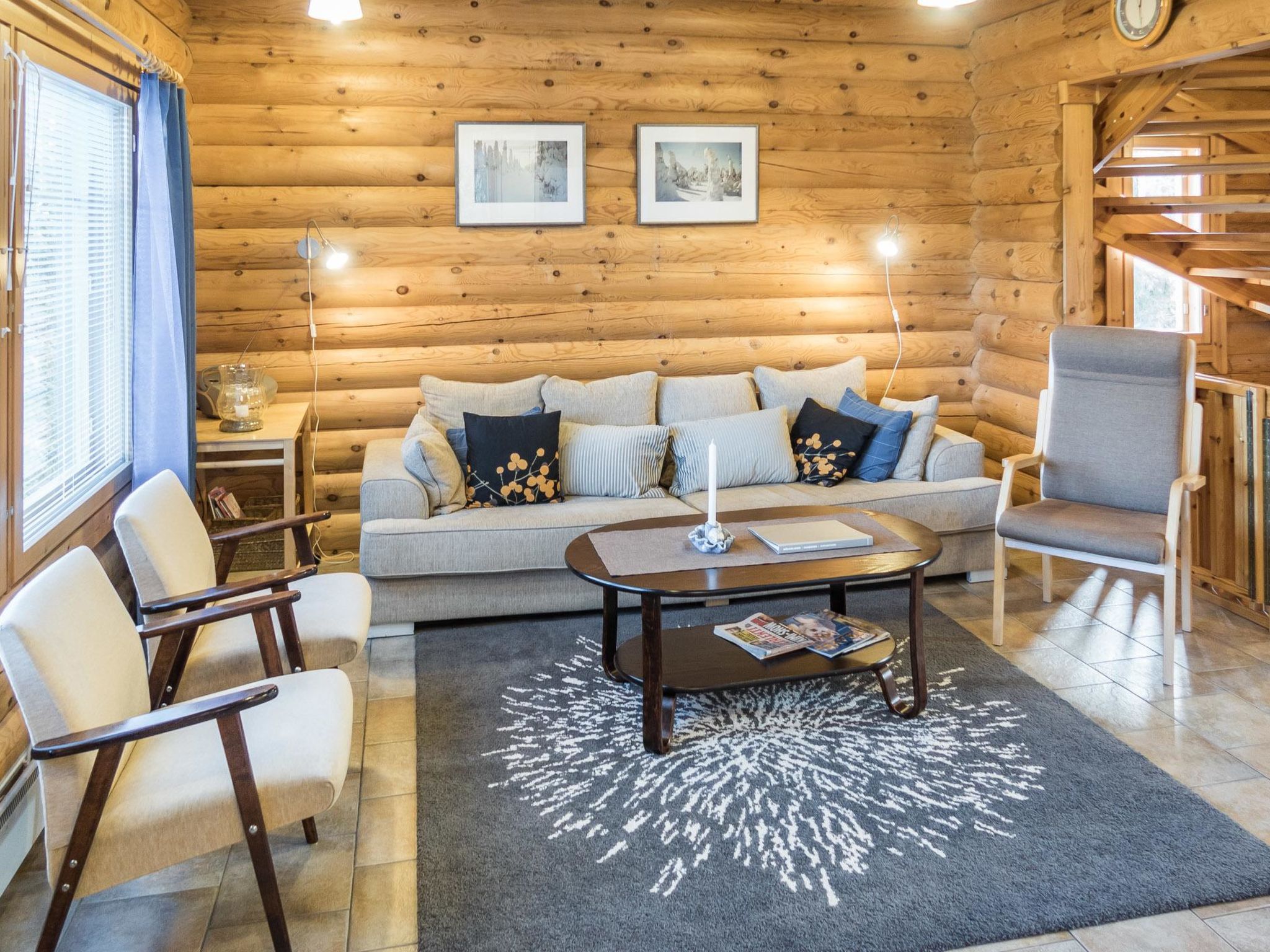 25 km nördlich von Kuusamo, 500 m von Vuosseli (Ost-Ruka). Zweistöckiges Blockhaus, zusätzlich Dachboden, Baujahr 2002, Fläche 114 m² + Dachboden 24 m². Schlafzimmer: 2 Betten, Nische: 1 Bett (120 cm), Nische (Falttür) auf dem Dachboden: 2 Betten, Dachboden: 2 Betten, Kaminzimmer im Erdgeschoss: Schlafsofa, Wohnzimmer: Schlafsofa, Küche, elektrische Sauna. Ferienhaus- und Ferienwohnungsgebiet an der Vuosselinrinnetie Strasse. Nächste Skilifte Vuosseli III und RukaExpress, nächstes Restaurant RoySki Pub. Skibushaltestelle 50 m. Zusätzliche Ausstattung: 3 Fernseher, 2 Kamine, Wasserkocher, Satellienfernsehen, Auto-Unterstand für zwei Autos. Andere Entfernungen: Oulanka Nationalpark / Pieni Karhunkierros Pfad 28 km, Valtavaara Tagesausflugspfad 900 m. Die Buchungen beginnen um 16:00 Uhr und enden um 12:00 Uhr (auch bei Wochenendbuchungen).