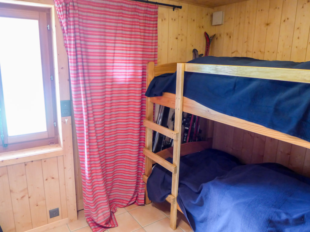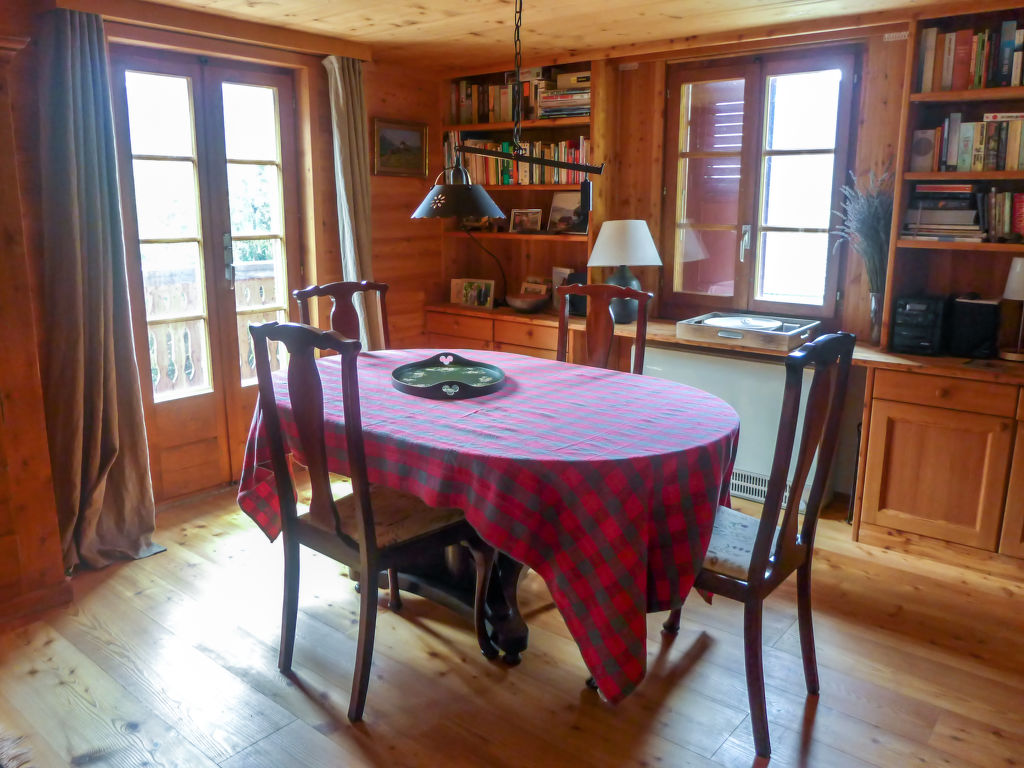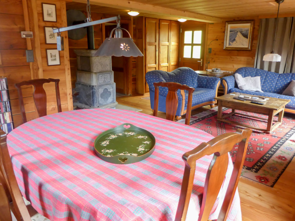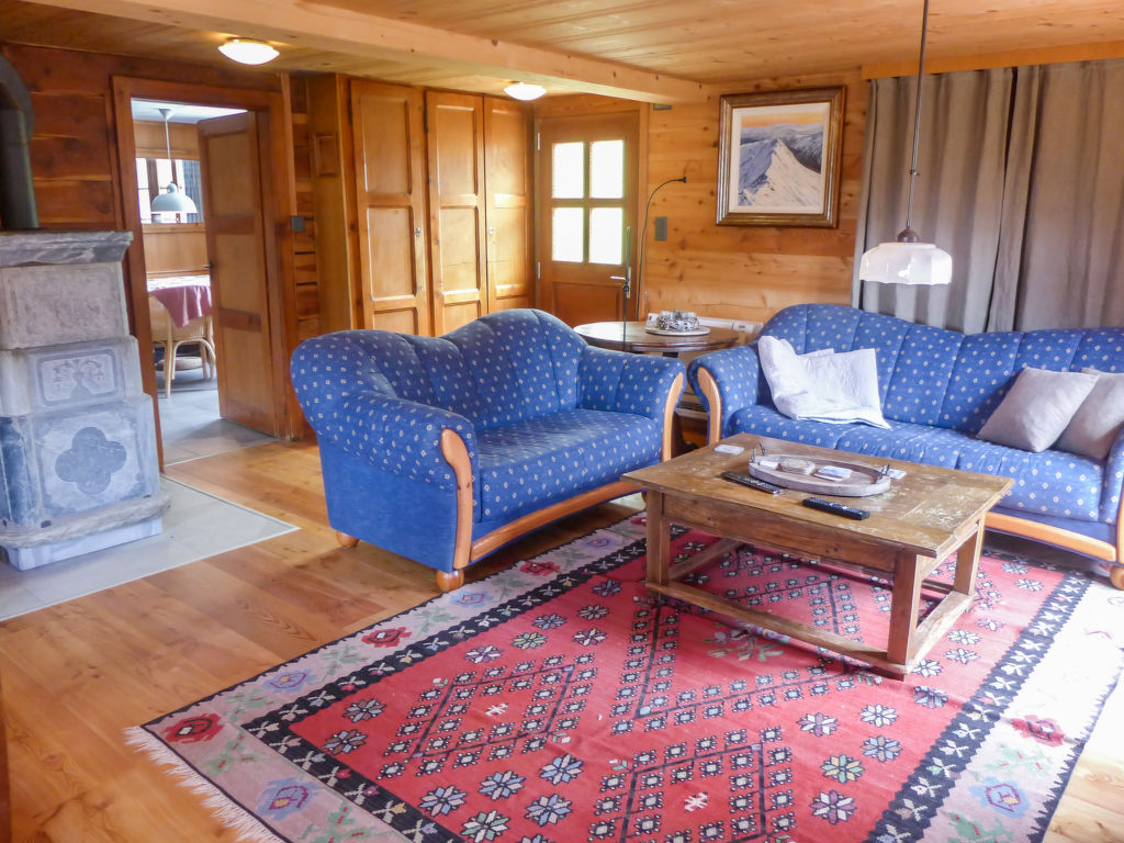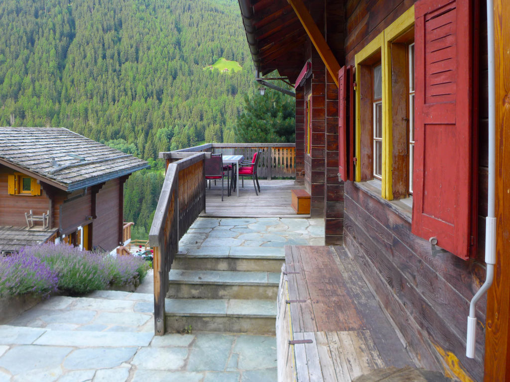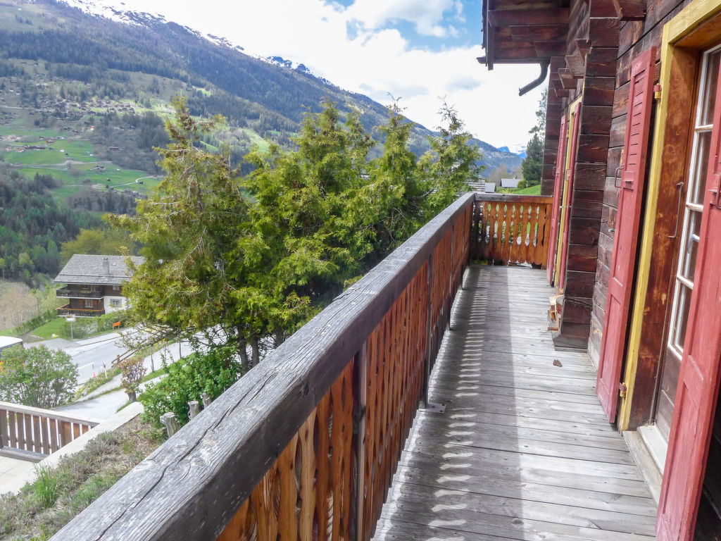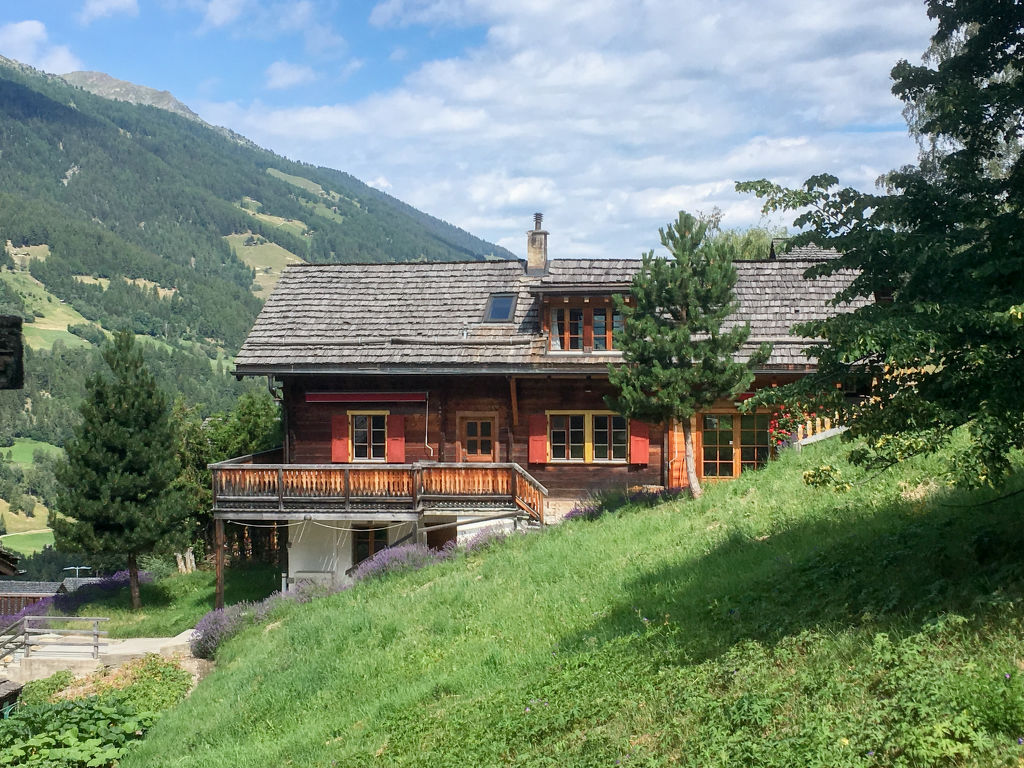"Chalet Ankie", 9-Zimmer-Chalet auf 3 Stockwerken. Komfortabel und mit viel Holz eingerichtet: Wohn-/Esszimmer mit TV (Flachbildschirm), CD und DVD. Ausgang zum Balkon. 1 Zimmer mit 1 Doppelbett (160 cm, Länge 200 cm). Küche (Backofen, Geschirrspüler, 4 Induktionskochplatten, elektrische Kaffeemaschine) mit Esstisch. Bad/Dusche, sep. WC. Unteres Geschoss: 1 Zimmer mit 1 x 2 Etagenbetten (90 cm, Länge 200 cm). Ausgang zum Gartensitzplatz. 1 Zimmer mit 1 Doppelbett (160 cm, Länge 200 cm). Ausgang zum Gartensitzplatz. 2 sep. WC's, Dampfdusche, Sauna. Obergeschoss: Salon mit TV (Flachbildschirm), DVD. Ausgang zur Terrasse. Klein, 1 abgeschrägtes Zimmer mit Schiebetür mit 1 Doppelbett (180 cm, Länge 200 cm). Wohn-/Esszimmer. 1 abgeschrägtes Zimmer mit 1 Doppelbett (160 cm, Länge 200 cm). 1 abgeschrägtes Zimmer mit 1 Doppelbett (160 cm, Länge 200 cm). Kochnische (Backofen, Geschirrspüler, 4 Induktionskochplatten, elektrische Kaffeemaschine). Bad, sep. WC. Balkon, grosse Terrasse, Gartensitzplatz. Terrassenmöbel. Sehr schöne Sicht auf die Berge und die Landschaft. Zur Verfügung: Waschmaschine, Wäschetrockner, Kinderhochstuhl. Internet (Wireless LAN, gratis). Parkplatz, Garage. Bitte beachten: Nichtraucher-Unterkunft. Feuerlöscher. Sicht auf den Gletscher.