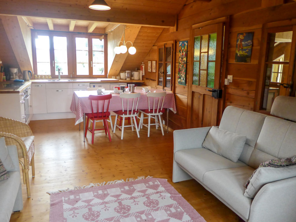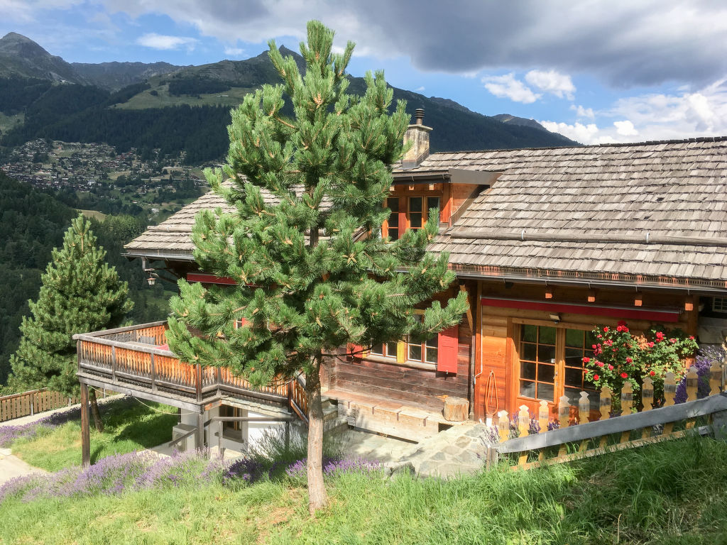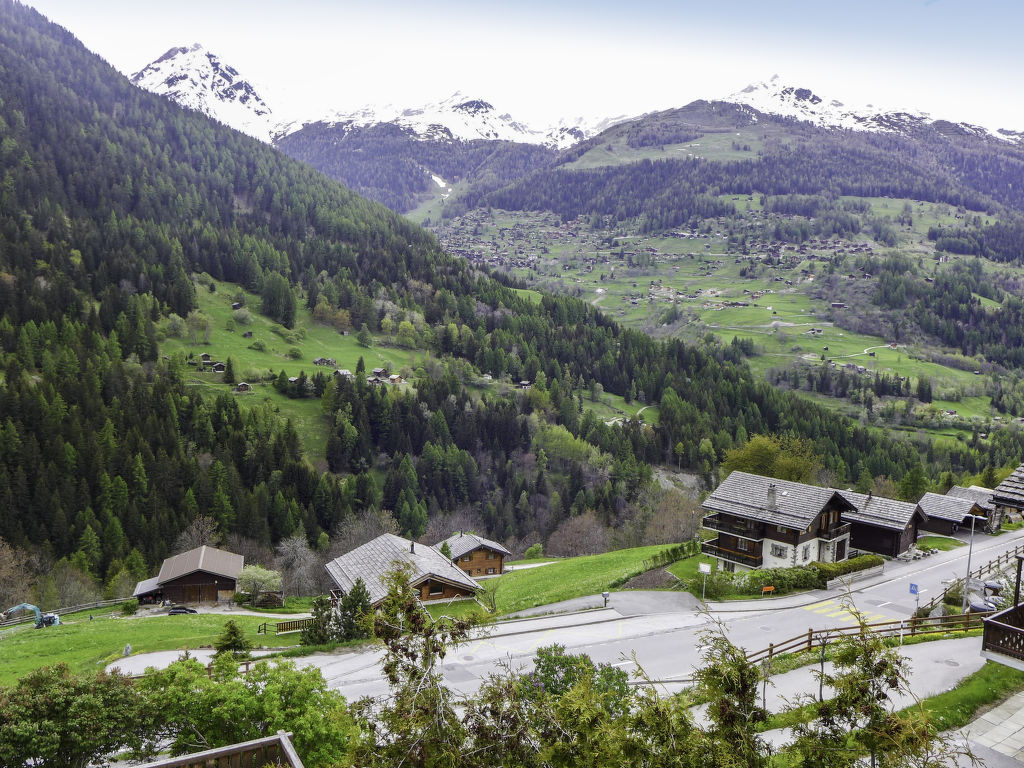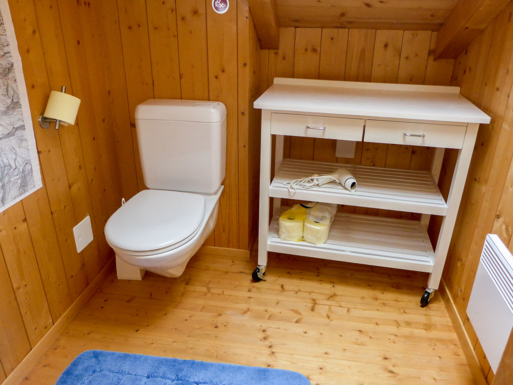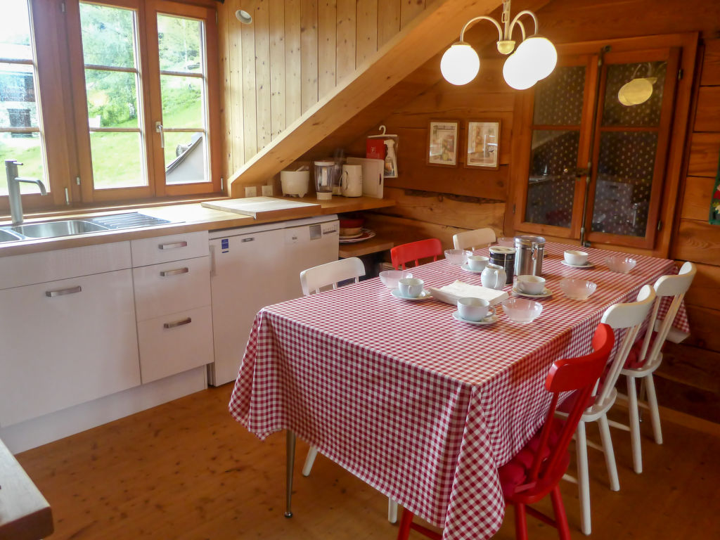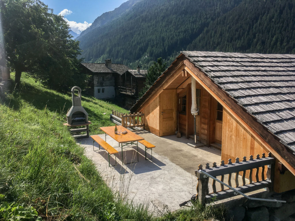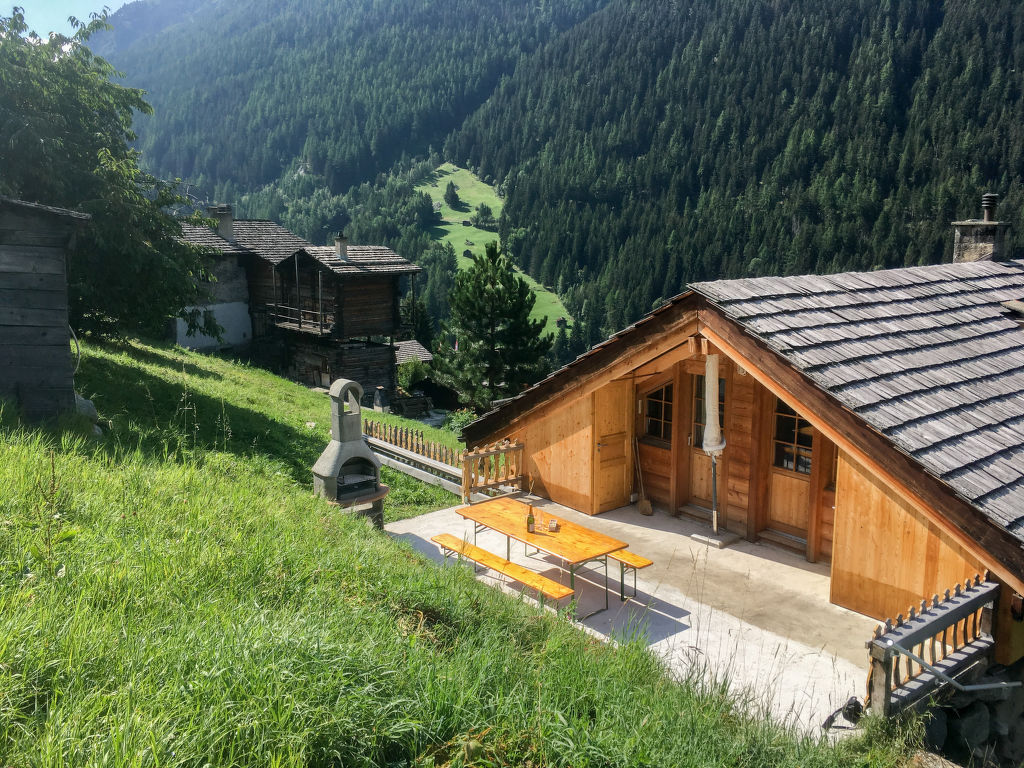 "Chalet Ankie", 9-Zimmer-Chalet auf 3 Stockwerken. Komfortabel und mit viel Holz eingerichtet: Wohn-/Esszimmer mit TV (Flachbildschirm), CD und DVD. Ausgang zum Balkon. 1 Zimmer mit 1 Doppelbett (160 cm, Länge 200 cm). Küche (Backofen, Geschirrspüler, 4 Induktionskochplatten, elektrische Kaffeemaschine) mit Esstisch. Bad/Dusche, sep. WC. Unteres Geschoss: 1 Zimmer mit 1 x 2 Etagenbetten (90 cm, Länge 200 cm). Ausgang zum Gartensitzplatz. 1 Zimmer mit 1 Doppelbett (160 cm, Länge 200 cm). Ausgang zum Gartensitzplatz. 2 sep. WC's, Dampfdusche, Sauna. Obergeschoss: Salon mit TV (Flachbildschirm), DVD. Ausgang zur Terrasse. Klein, 1 abgeschrägtes Zimmer mit Schiebetür mit 1 Doppelbett (180 cm, Länge 200 cm). Wohn-/Esszimmer. 1 abgeschrägtes Zimmer mit 1 Doppelbett (160 cm, Länge 200 cm). 1 abgeschrägtes Zimmer mit 1 Doppelbett (160 cm, Länge 200 cm). Kochnische (Backofen, Geschirrspüler, 4 Induktionskochplatten, elektrische Kaffeemaschine). Bad, sep. WC. Balkon, grosse Terrasse, Gartensitzplatz. Terrassenmöbel. Sehr schöne Sicht auf die Berge und die Landschaft. Zur Verfügung: Waschmaschine, Wäschetrockner, Kinderhochstuhl. Internet (Wireless LAN, gratis). Parkplatz, Garage. Bitte beachten: Nichtraucher-Unterkunft. Feuerlöscher. Sicht auf den Gletscher.