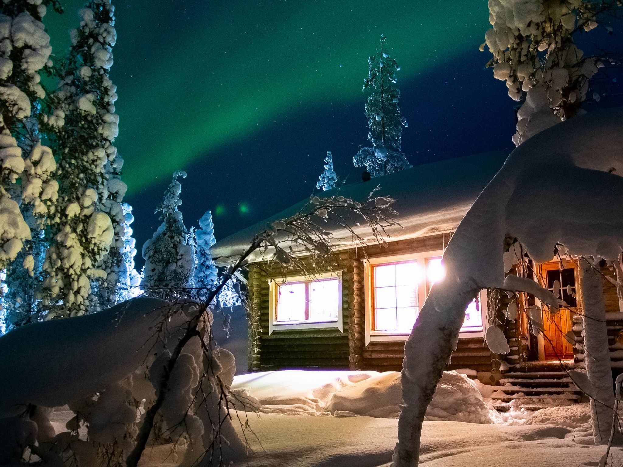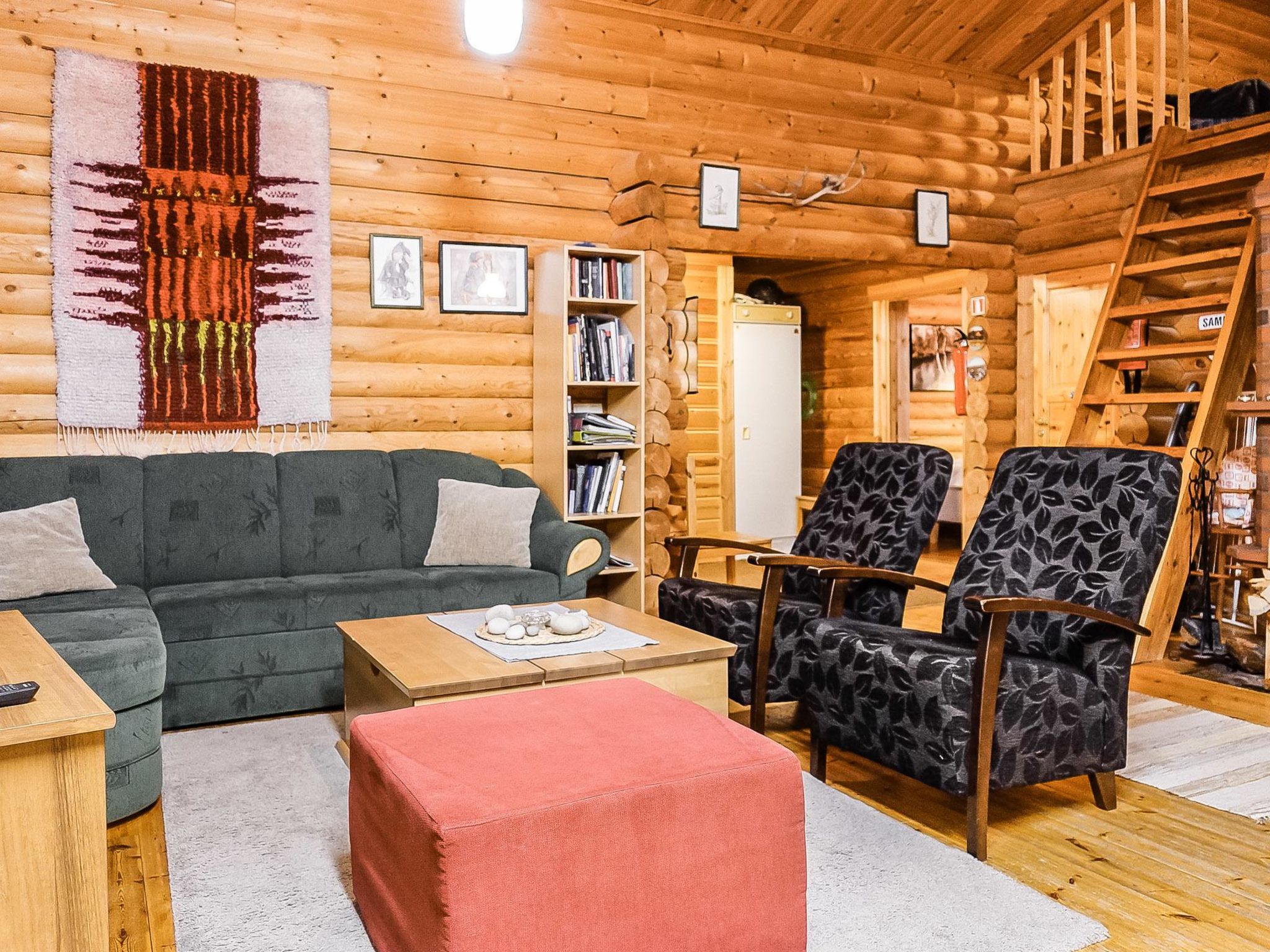 255 km nördlich von Rovaniemi, Ferienhaus in Laanila, ca. 5 km südlich von Saariselkä. Block-Ferienhaus, Baujahr 2003, Wohnküche mit 1 Zusatzbett, Schlafzimmer mit 2 Betten, Schlafzimmer mit 1 Doppelbett, Schlafboden (zu dem eher steile Treppe führt): 2 Betten und 1 Matratze, Ankleideraum, Waschraum, Sauna (Elektroherd), offene Veranda. Komfortables Ferienhaus in Laanila, in der Nähe von Saariselkä, Laaninhovi 700 m. Saariselkä 5-6 km, Kaunispää Skilifte 5 km, Spa 3 km. Saariselkä Loipennetz 200 m, beleuchtete Loipe 14 km.