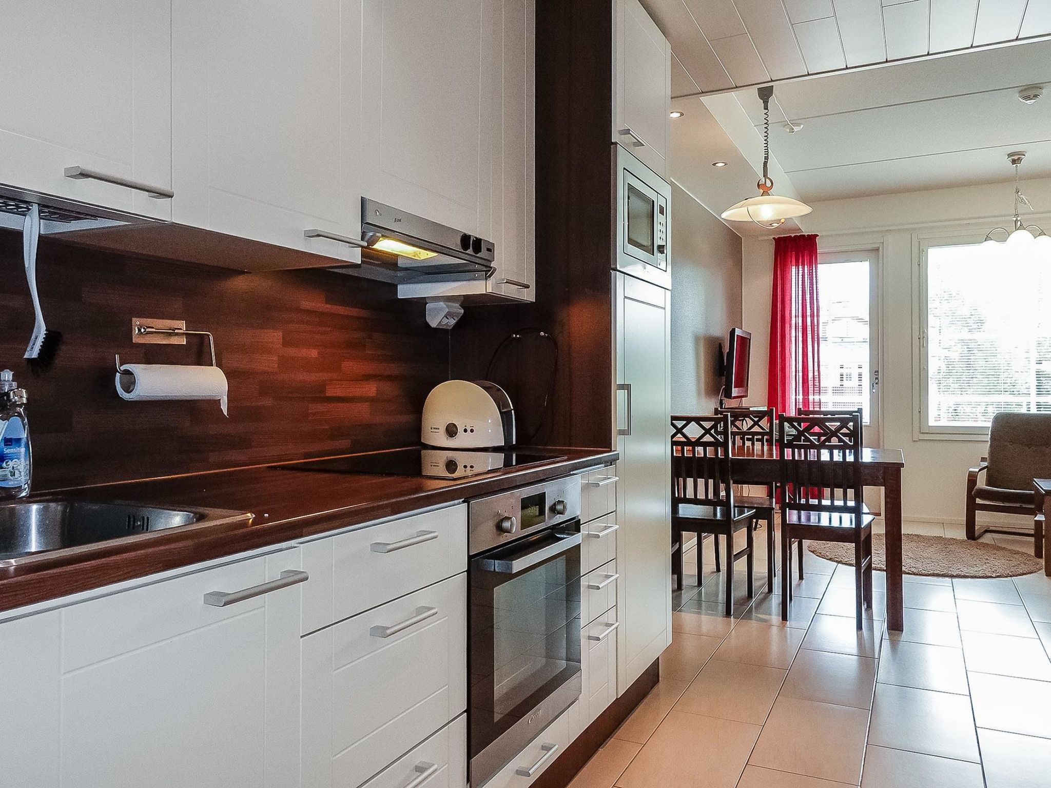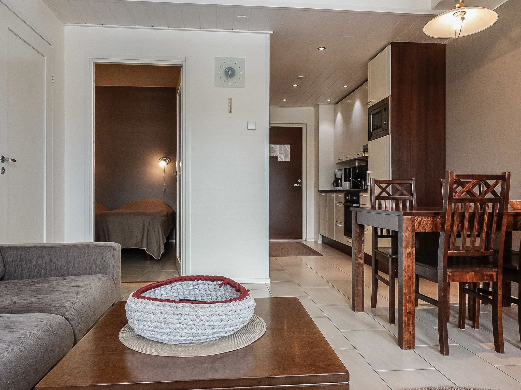 Im zentralen Teil des Ferienortes Levi, Ferienwohnung aus Holz und Stein, auf einer Ebene, im zweiten Stock des Apartmenthotels, Baujahr 2012. Wohnküche mit Schlafsofa/Bett, 1 Schlafzimmer mit 2 Betten, Sauna (Elektroherd), Waschraum/WC. Im Haus ist auch Waschmaschine, Wäschetrockner und beheizter Ski-Wartungsraum verfügbar. Zur Ferienwohnung gehört auch eigenes abschliessbares Schliessfach. Endreinigung und Bettwäsche sind in den Preisen der A-Periode (Wochen 8-17, 52, 1-2) enthalten. Praktische Ferienwohnung im Herzen von Levi-Zentrum. Alle Dienstleistungen sind zu Fuss erreichbar. Zum Beispiel, Restaurants 300-600 m, Thermalbad 650 m, Skipiste 650 m. Golfplatz 4 km.