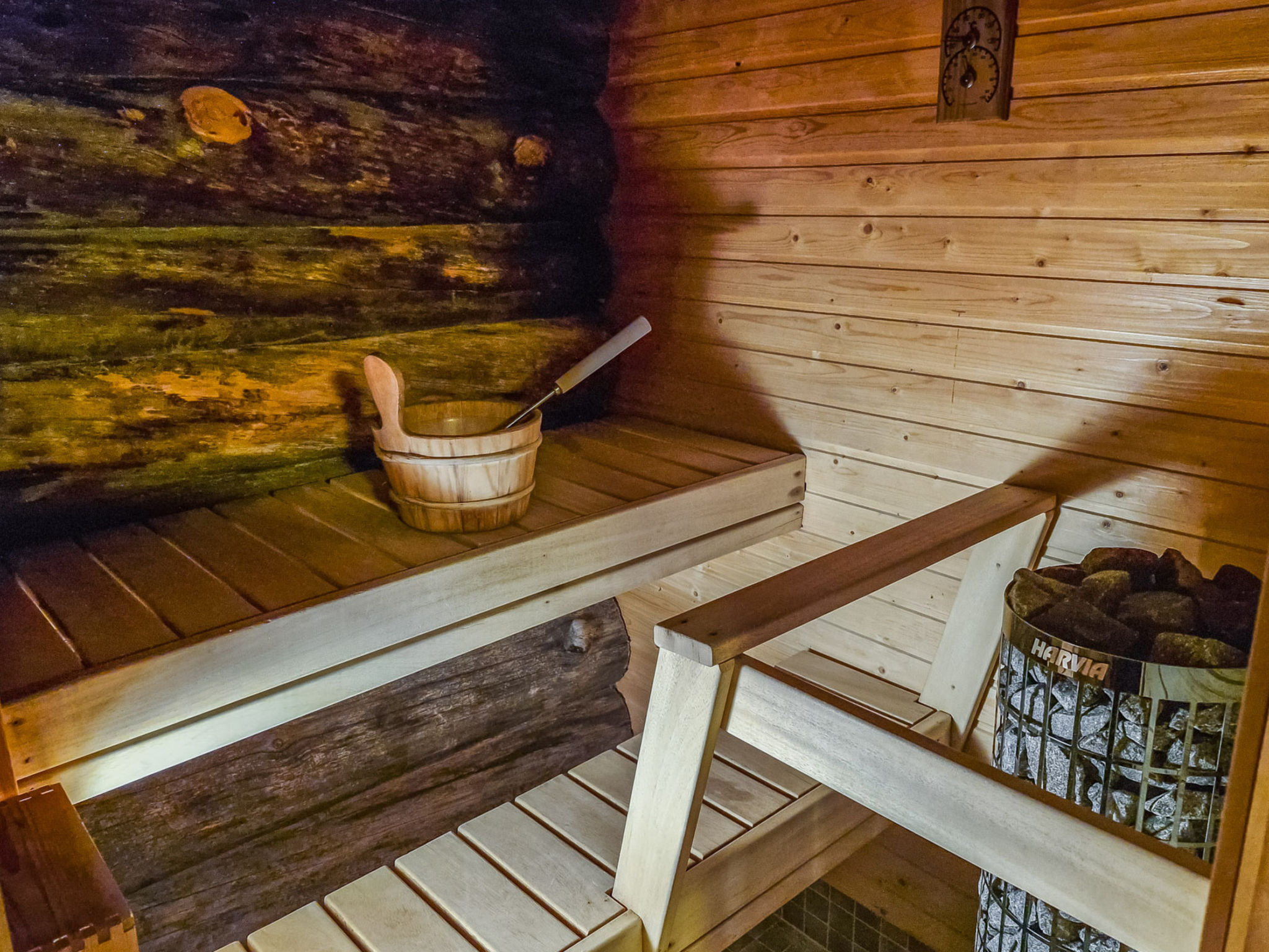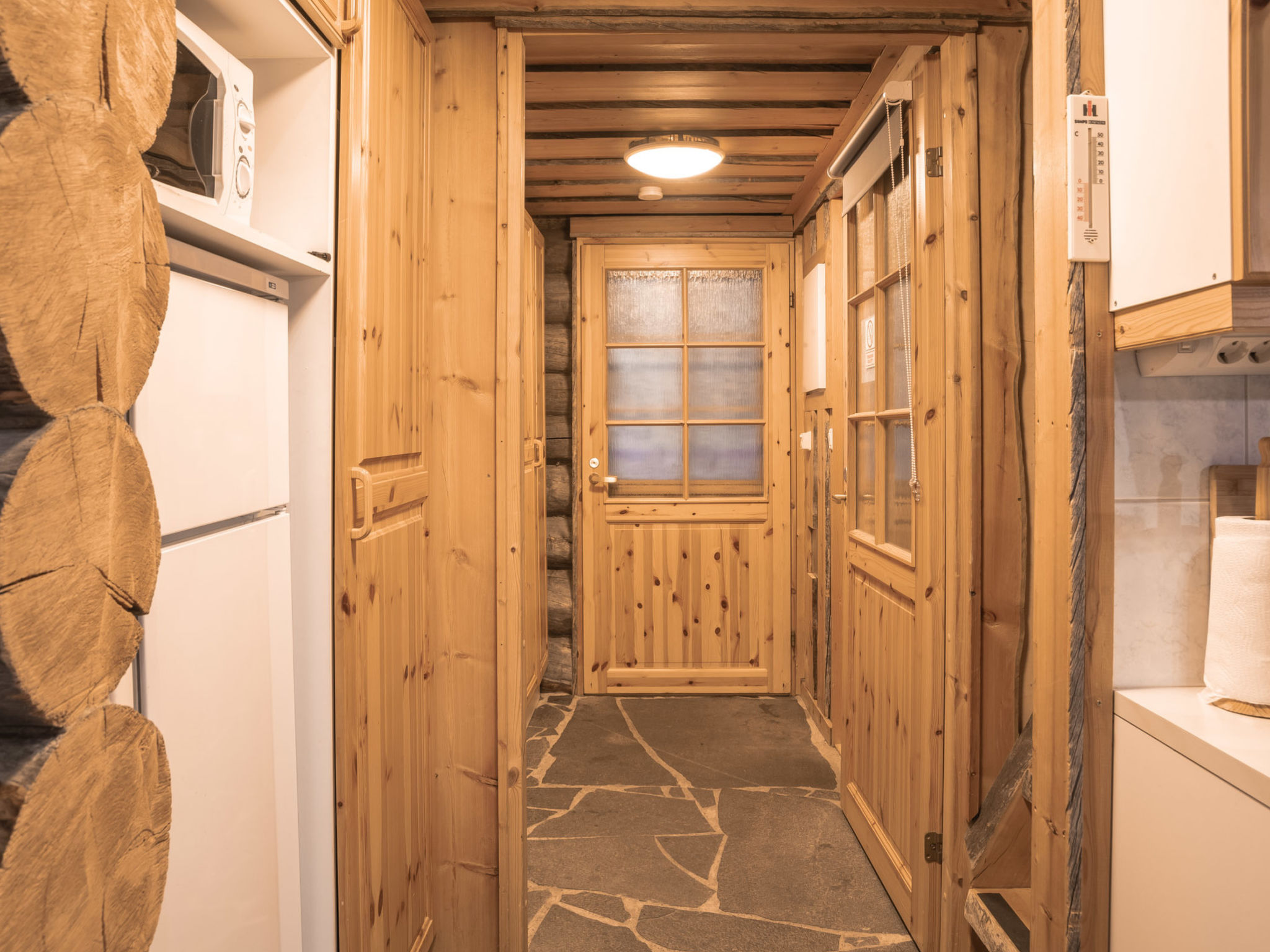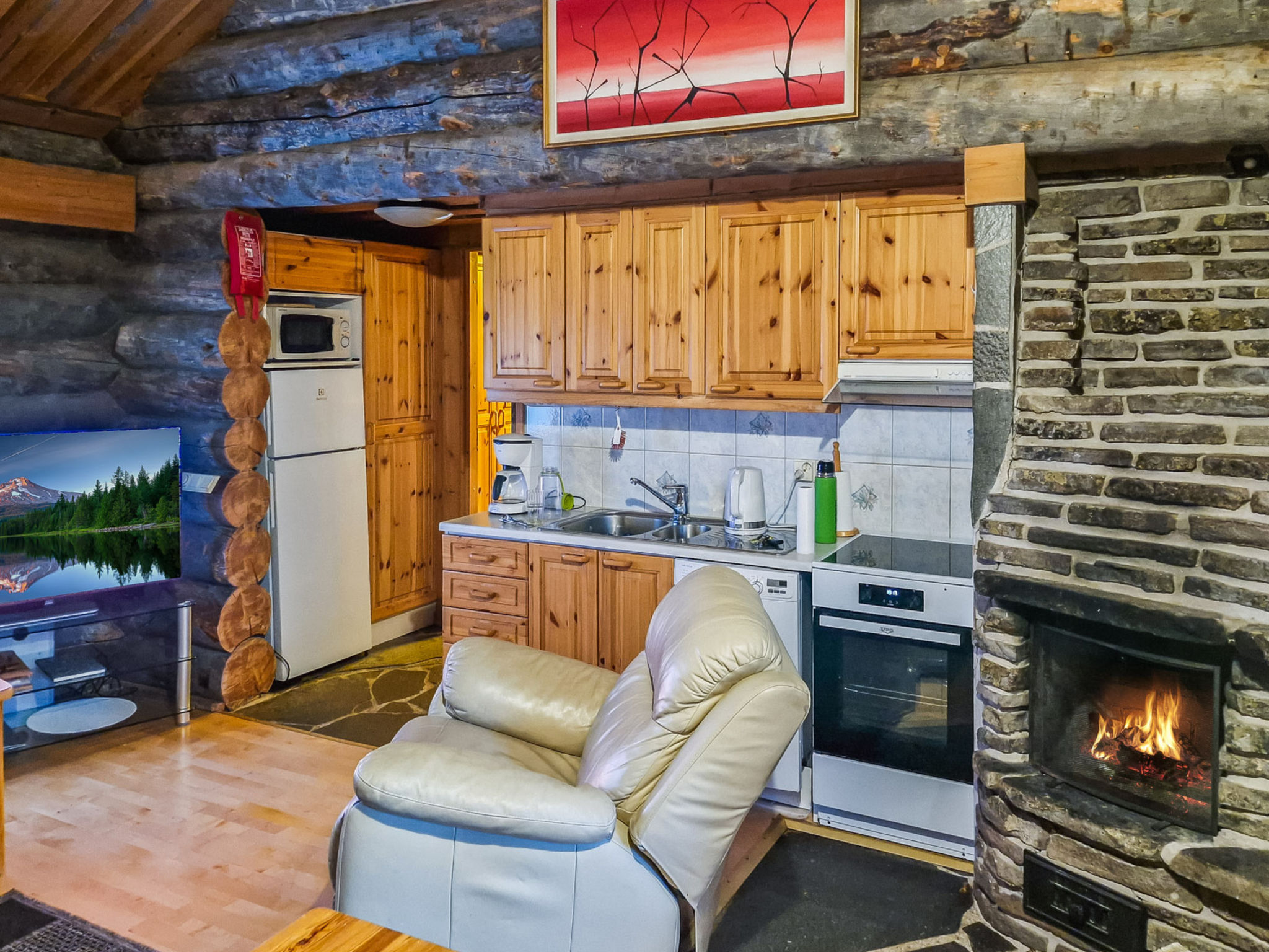 170 km nördlich von Rovaniemi, im Ferienort Levi, Levikekus/Mylly. Block-Ferienwohnung, Baujahr 1999. Wohnküche mit 2 Schlafsofas (eines kann ausgebreitet werden), 15 m2 grosser Dachboden verfügt über zwei durch Trennwände getrennte Schlafbereiche, ein Bereich mit Etagenbett, ein (der untere) mit Doppelbett. Sauna mit Elektroherd, Badezimmer/Toilette, Flur und kleine überdachte Veranda. Enge Treppe, ziemlich steile Treppe zum Dachboden. Dachboden ist teilweise niedrig, Kinderschutzgitter am oberen Ende der Treppe. TV auch auf dem Dachboden. Tokkapirtti 3 befindet sich in einer ruhigen Gegend, trotzdem in der Nähe des Zentrums von Levi. Dienstleistungen, wie Geschäfte und Restaurants im Umkreis von 0.8 – 1 km, nächste Skipiste - Eturinne (Frontpiste) 1 km entfernt. Ferienwohnung 13163 befindet sich im selben Gebäude.