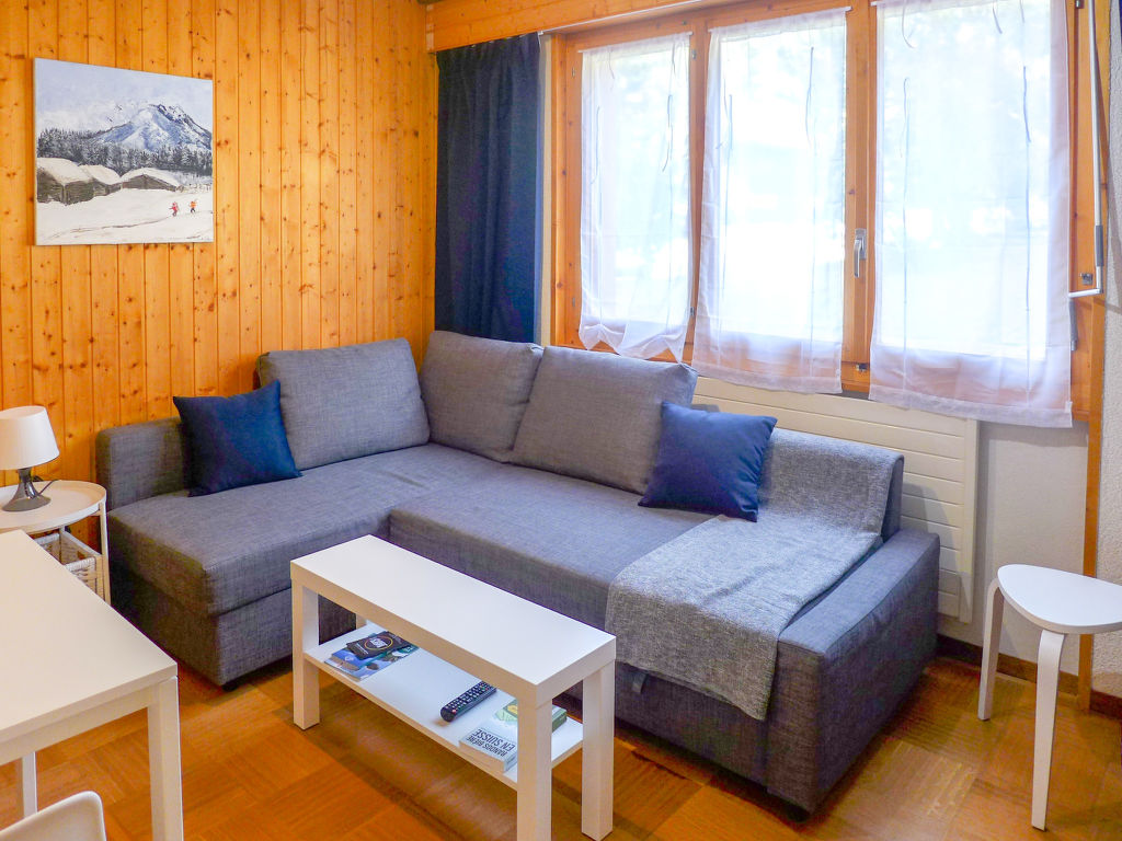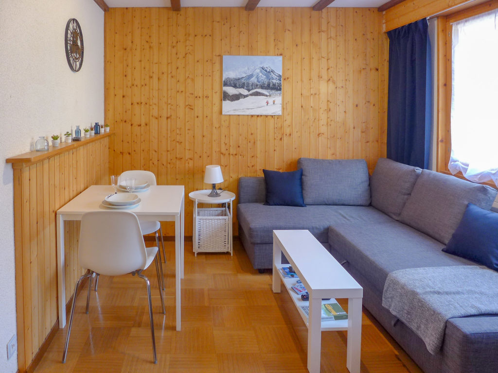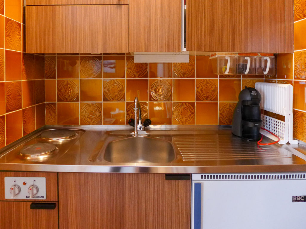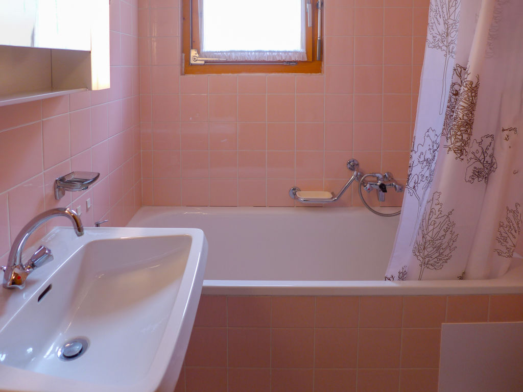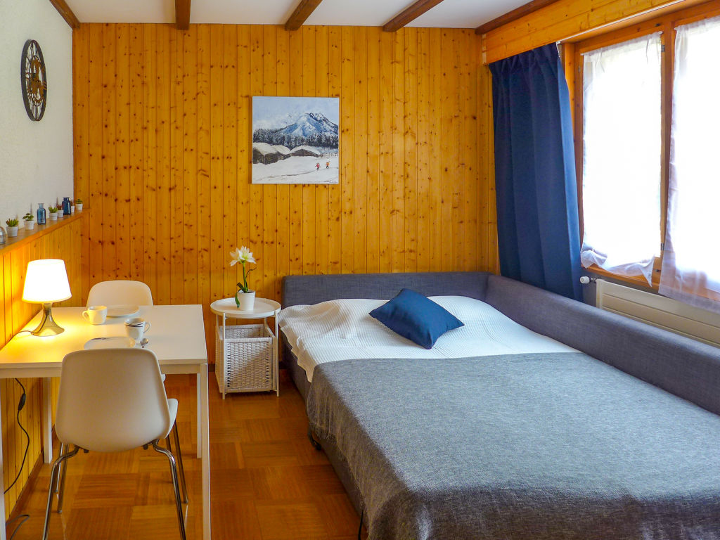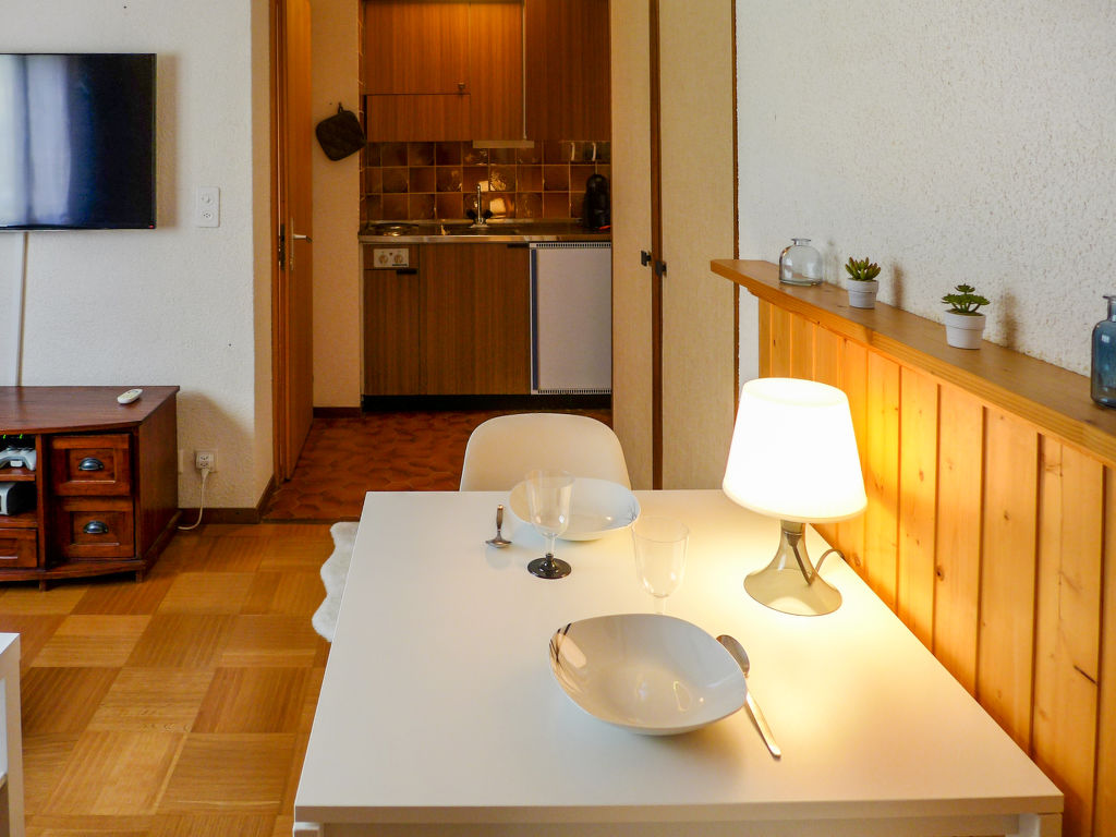 "Amethyste 16", 1-Zimmer-Wohnung 20 m2, Nordlage. Einfach eingerichtet: Wohn-/Schlafzimmer mit 1 Diwanbett (140 cm, Länge 200 cm), TV (Flachbildschirm). Kleine, offene Küche (2 Kochplatten, elektrische Kaffeemaschine, Kapseln für die Kaffeemaschine (Dolce Gusto) extra). Bad/WC. Sicht auf die Berge und den Wald. Parkplatz. Bitte beachten: Nichtraucher-Unterkunft.