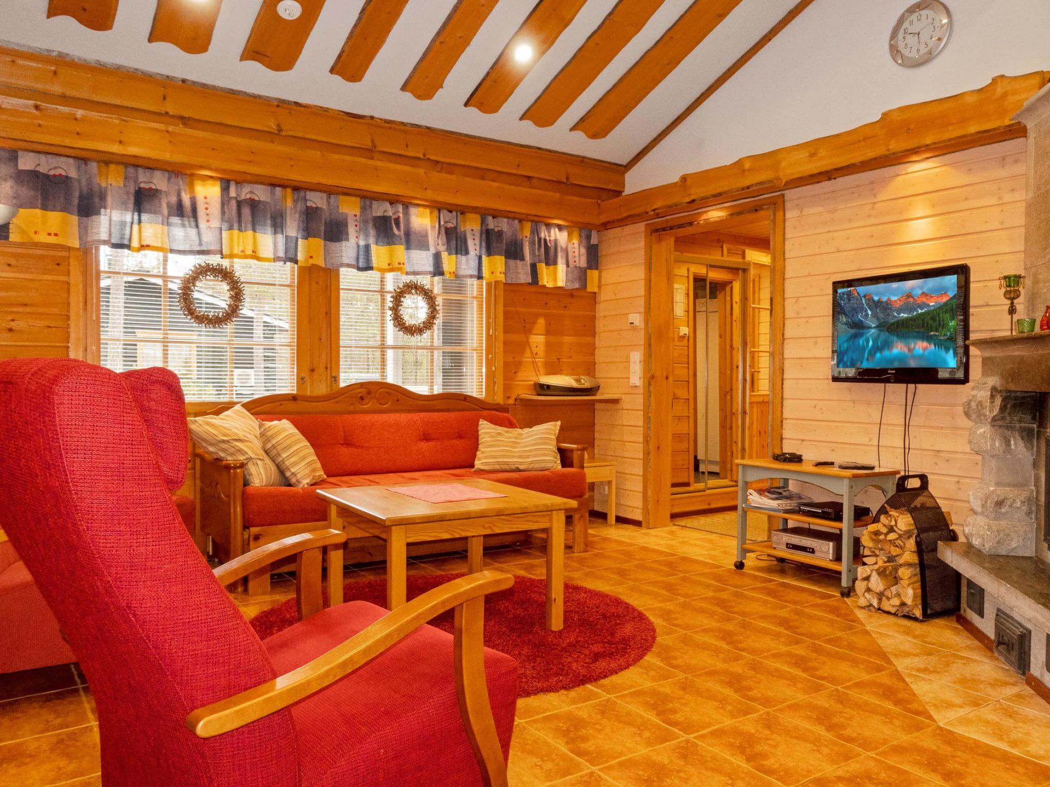 Maximal 1 Haustier/Hund erlaubt. Lauri 5 ist ein Haus mit drei Schlafzimmern, im ruhigen Viertel Metsärakka, in Levi. Das Haus befindet sich am Ende der Straße. Holzhaus. Wohnzimmer, 3 Schlafzimmer mit je 2 Betten, 1 Schlafzimmer mit Falttür, Kochnische, Sauna, Waschraum, separates WC und überdachte Terrasse. Wenn Haustier/Haustiere dabei sind, muss der Kunde die Endreinigung zur Buchung hinzufügen. Die Reservierung endet um 10:00 Uhr am Abreisetag. Es gibt eine Nachbarhütte nebenan. Die nächste Skipiste ist Eturinne 1,5 km in Levikeskus und dann Koillisrinne 2,6 km. Restaurant- und Programmservice von Levikeskus, im Umkreis von 1,3 – 1,6 km, verfügbar.