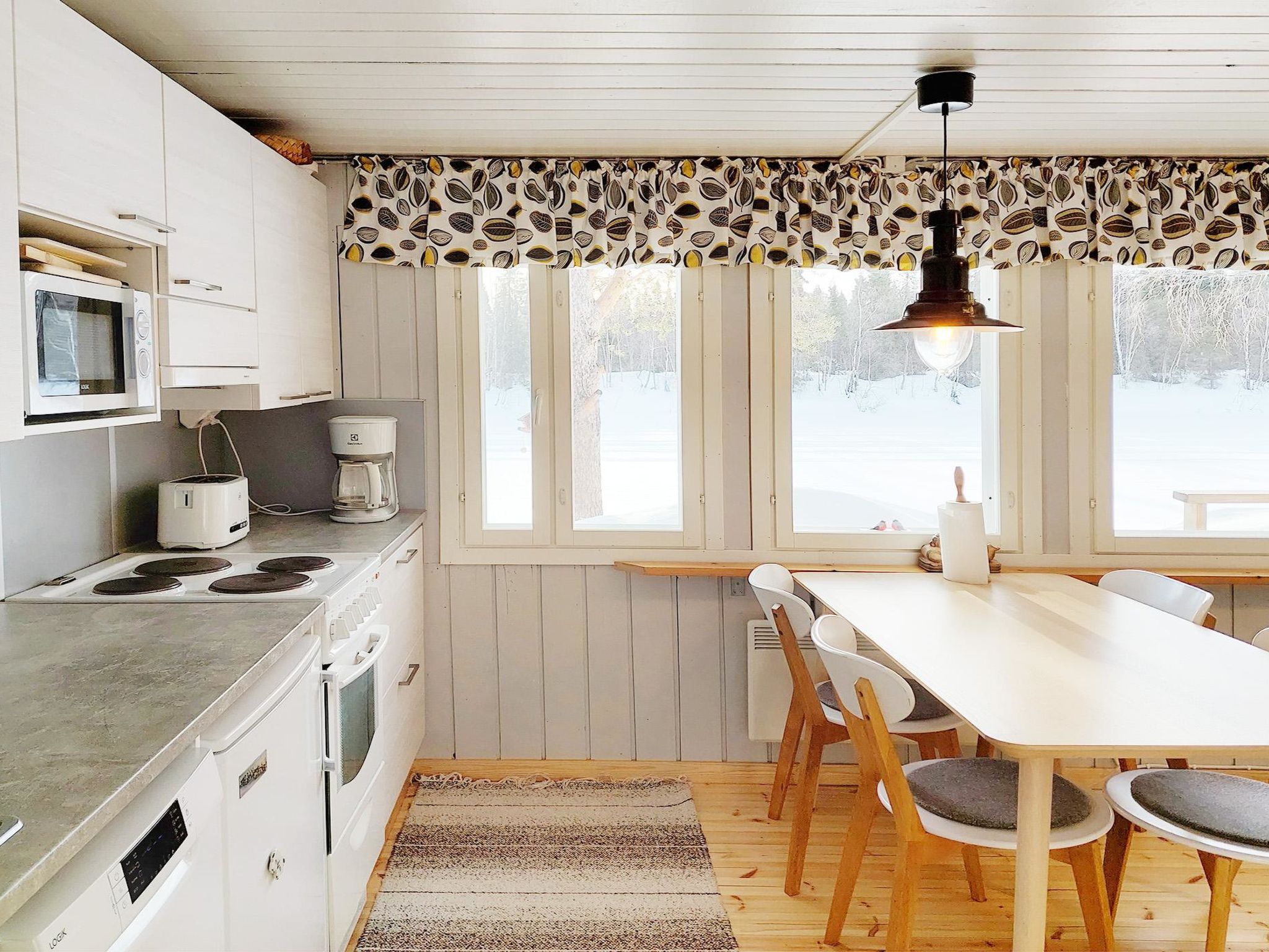 180 km nördlich von Rovaniemi, Fluss Ounasjoki 10 m (Flussbreite 80 m), fliessendes Wasser, harter Boden, Wasserstand variiert, für erfahrene Schwimmer geeignet, eigenes Boot. Holzhaus, Baujahr 1975, erweitert 1990. Wohnzimmer/Kochnische mit Etagenbett (Breite 140 cm), 2 Schlafzimmer mit je 2 Betten, Sauna (Holzofen), WC, Veranda. Eingang in die Sauna von der Terrasse. Die Dusche befindet sich in der Sauna, die möglicherweise nicht warm genug ist, um zu duschen, wenn Sie die Sauna nicht vorher heizen. Kein Kamin drinnen. Das Ferienhaus verfügt über Wasserhahn, das Wasser kommt aus dem Fluss. Wasserpumpe macht Geräusche. Das Trinkwasser kann aus einer Quelle (300 m entfernt) bezogen werden. Es wird jedoch empfohlen Trinkwasser mitzunehmen. Lagerfeuerplatz und hölzerner Unterschlupf im Naturpark. Traditionelles Ferienhaus am Fluss, 10 km vom Touristenzentrum Levin entfernt. Flussangeln in der Nähe des Hauses. Die gegenüberliegende Insel Ketinsaari bietet Gelegenheit für kurze Ausflüge. Programmdienste in Levi, Verleih von Motorschlitten, Kanus und Angelausrüstung, geführte Ausflüge, z.B. Jagd- und Angeltouren. Entfernung zum Nationalpark Pallas-Ylläs 35 km.