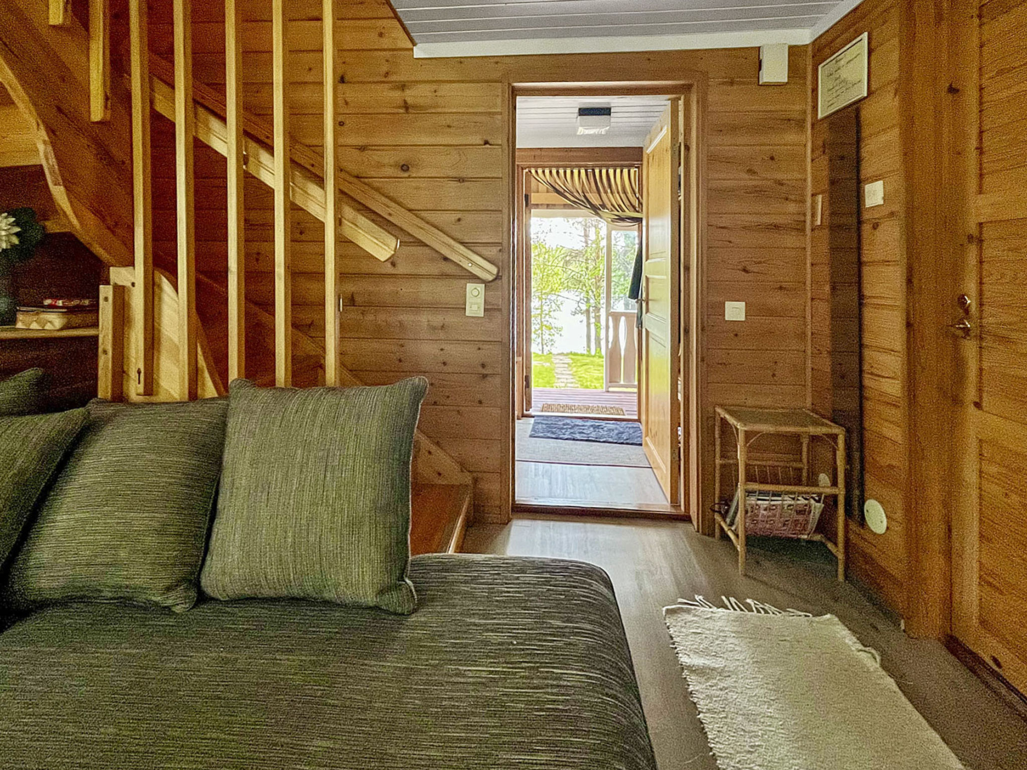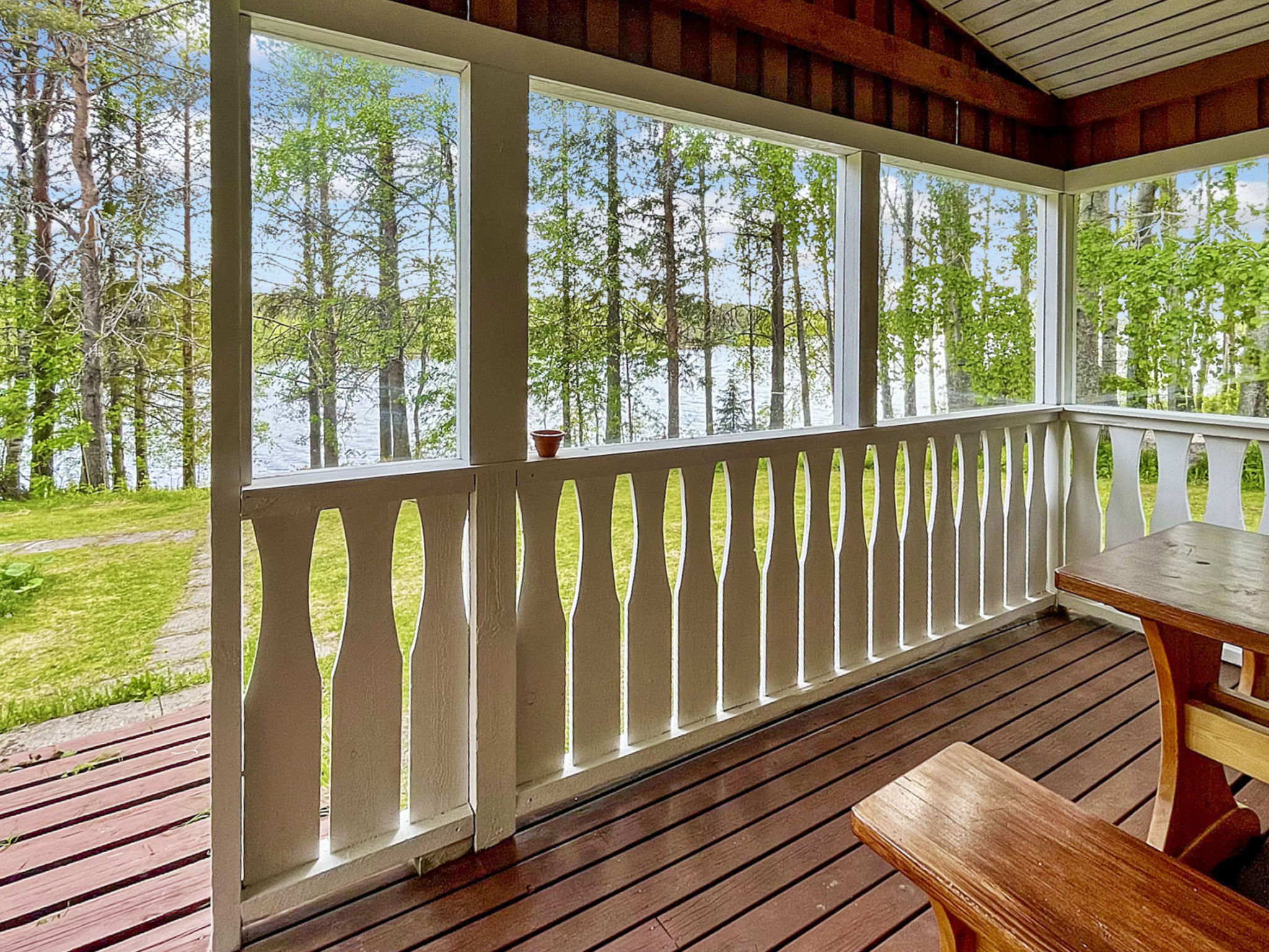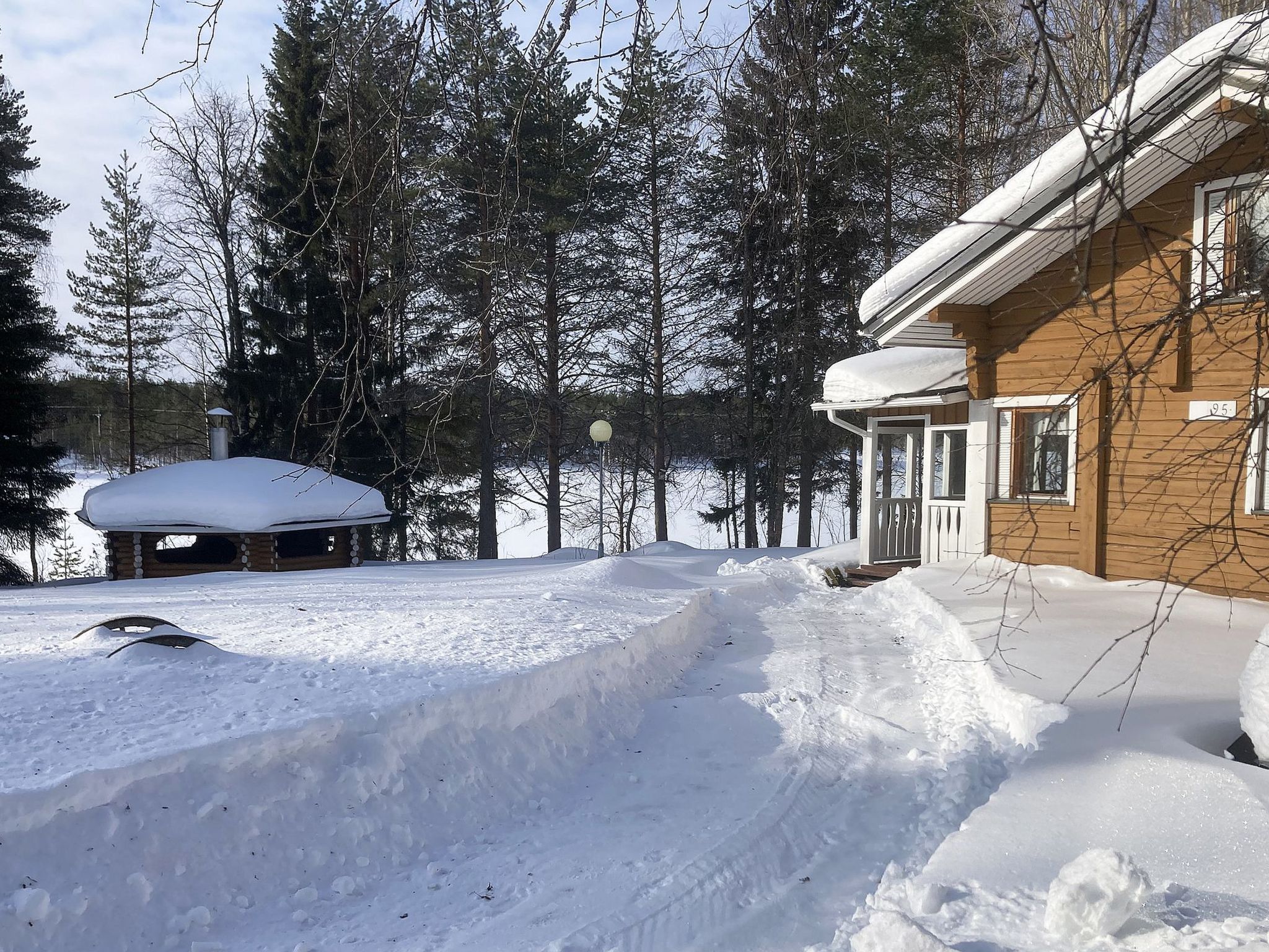 90 km nordwestlich von Kuusamo, See Suolijärvi 40 m (Länge 50 km, Breite 2 km), tiefes, hartes und weiches Ufer, sandiger Lehmboden, eigenes Boot. Blockhaus, Baujahr 1993, Kochnische, Wohnzimmer, im Oberschoss Schlafzimmer mit Doppelbett und Schlafzimmer mit 2 Betten, Waschraum, Sauna (Elektroherd), Vorraum, offene Veranda. Vom Ferienhaus einen sanften Hang hinunter zum Ufer, gepflegter Hof- und Gartenbereich mit Liegewiese. Wäschetrockner. Max. 2 Haustiere erlaubt.