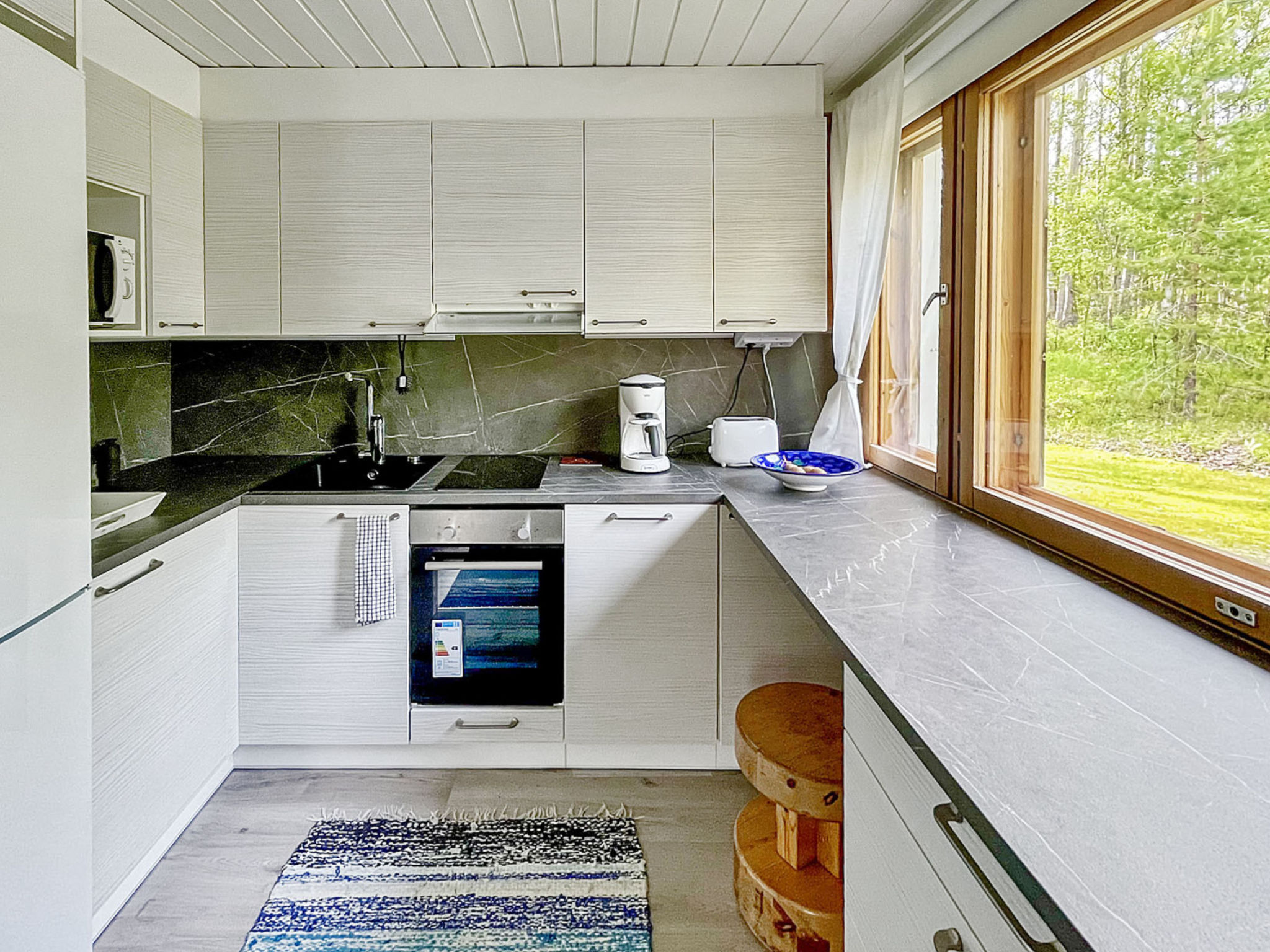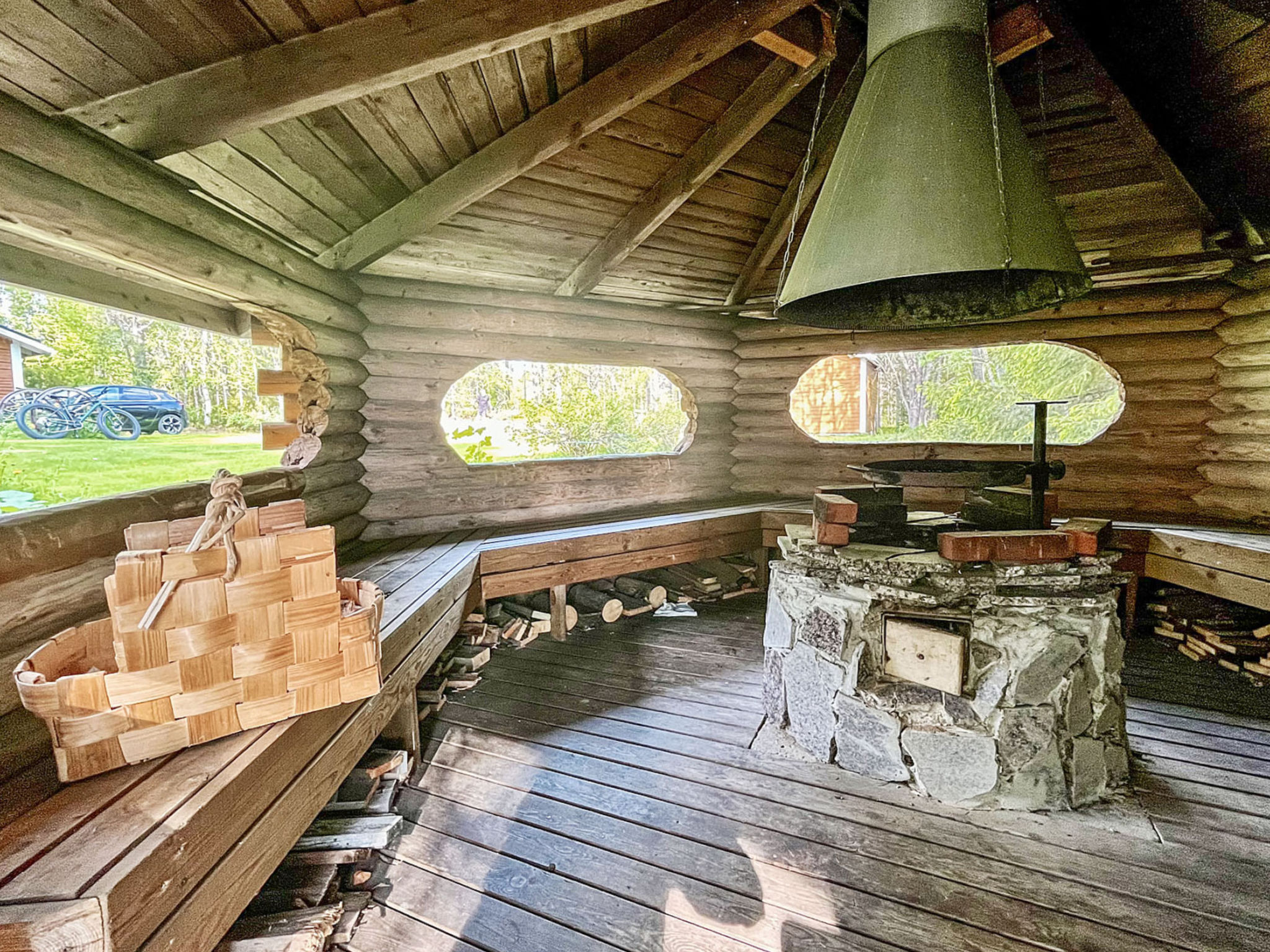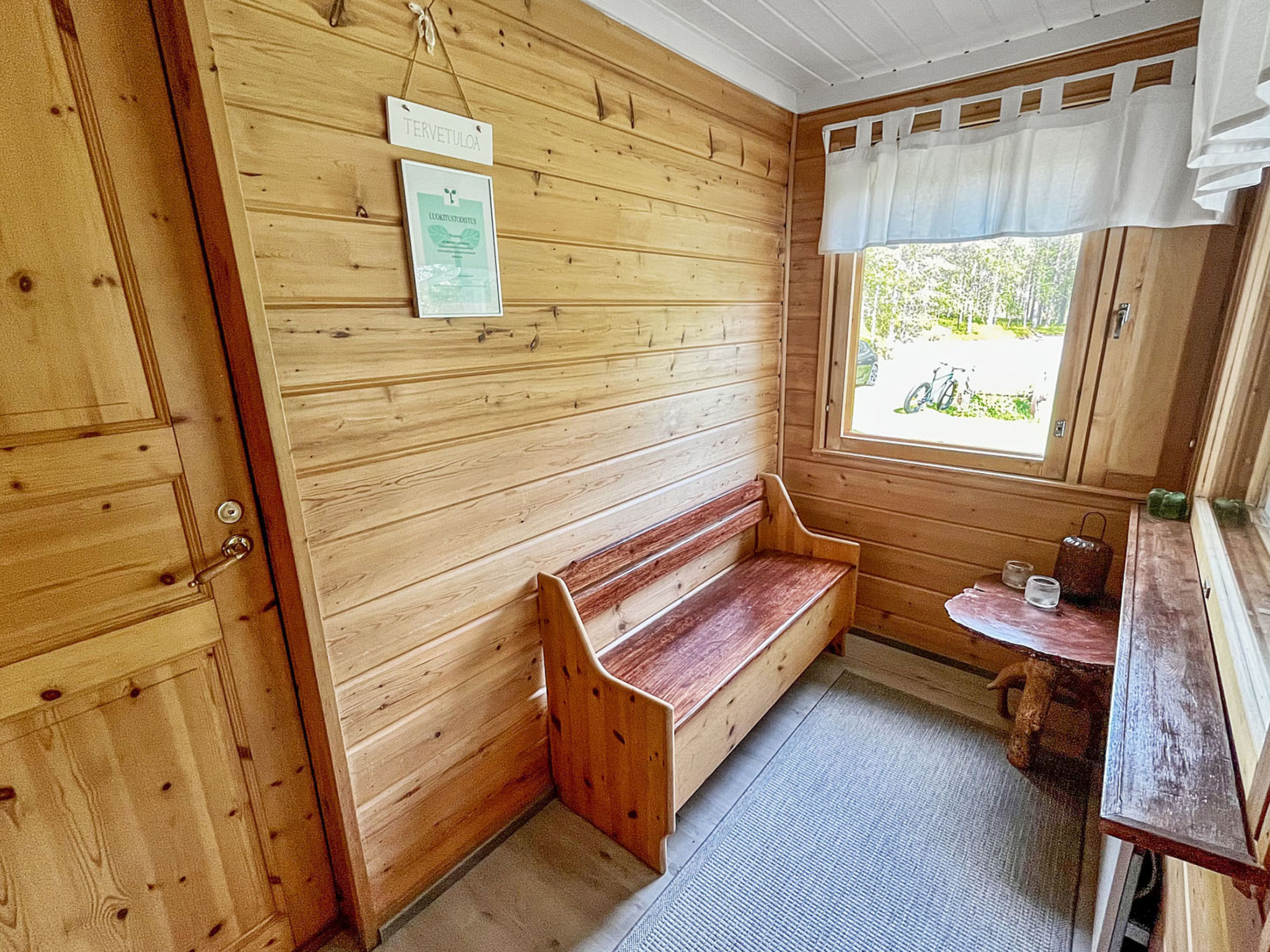 90 km nordwestlich von Kuusamo, See Suolijärvi 40 m (Länge 50 km, Breite 2 km), tiefes, hartes und weiches Ufer, sandiger Lehmboden, eigenes Boot. Blockhaus, Baujahr 1993, Kochnische, Wohnzimmer, im Oberschoss Schlafzimmer mit Doppelbett und Schlafzimmer mit 2 Betten, Waschraum, Sauna (Elektroherd), Vorraum, offene Veranda. Vom Ferienhaus einen sanften Hang hinunter zum Ufer, gepflegter Hof- und Gartenbereich mit Liegewiese. Wäschetrockner. Max. 2 Haustiere erlaubt.