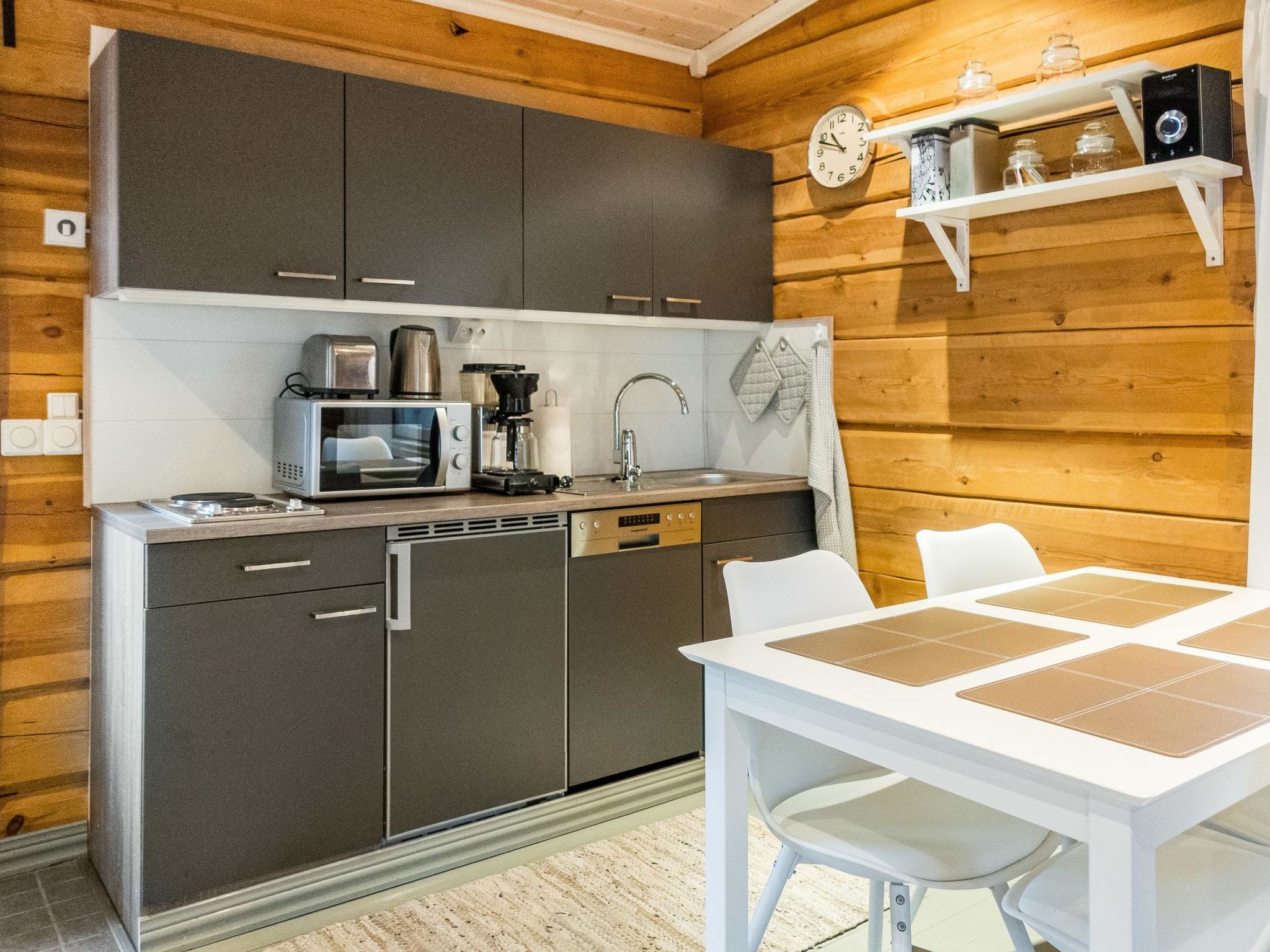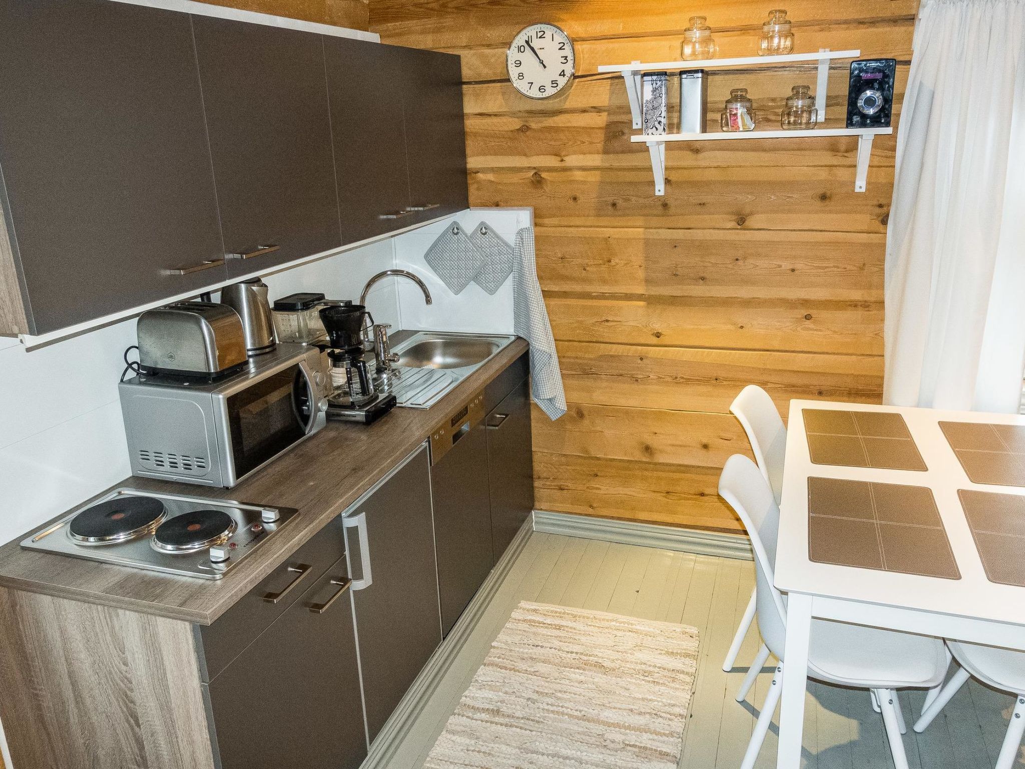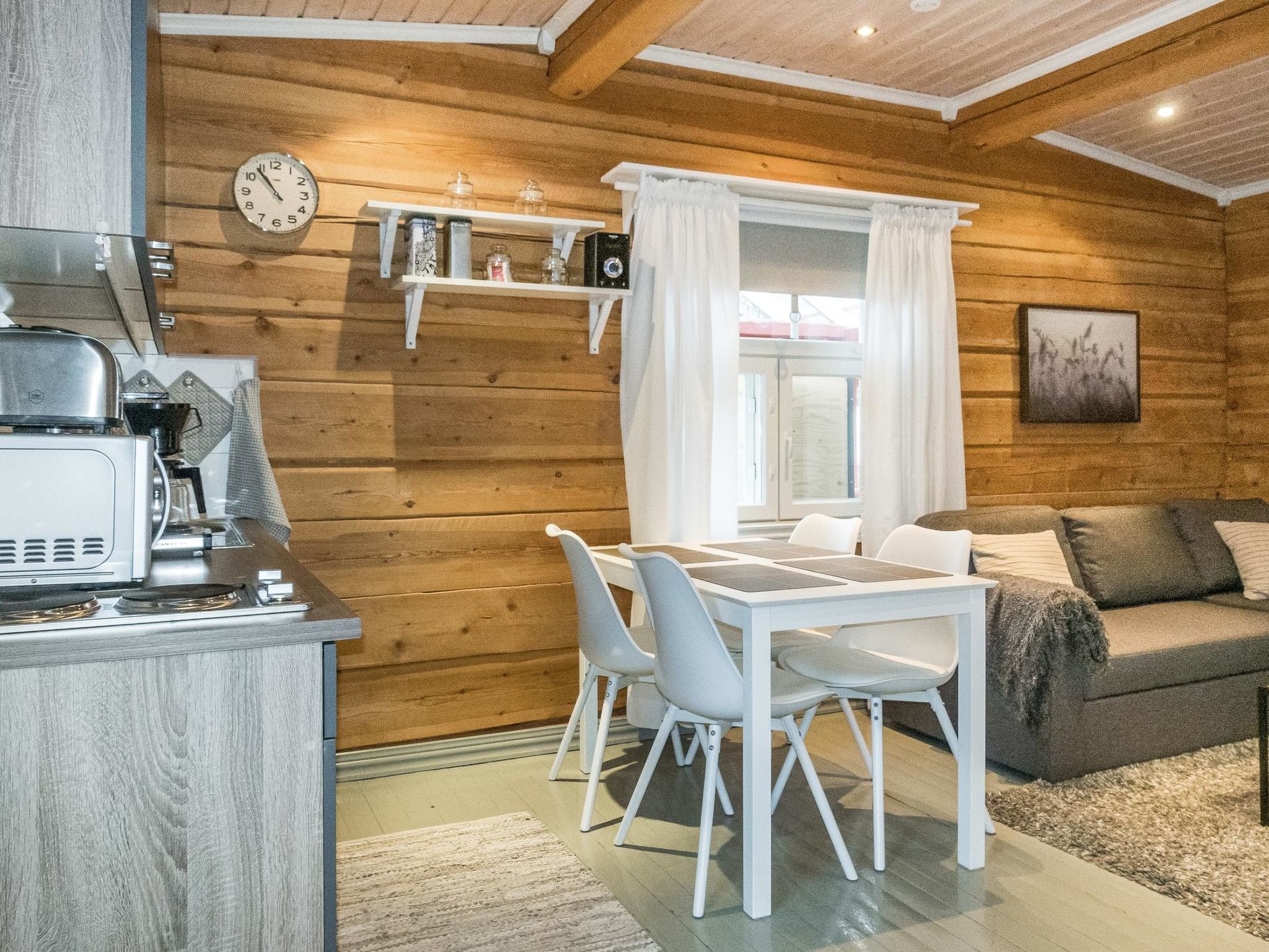 Maximal 2 Haustiere/Hunde erlaubt. Ein stimmungsvolles Haus in der Stadt. In der Nähe des Polarkreises, des Santa-Dorfes und des Skigebiets Ounasvaara. Das 2006 erbaute Blockhaus befindet sich im Einfamilienhausviertel Saarenkylä. Das Haus des Vermieters ist in der Nähe und eine eigene Straße führt bis zum Haus. Das Haus wird 2021 erneuert und renoviert. Wohnküche mit Schlafcouch, Schlafnische mit Doppelbett, Waschraum/WC und überdachte Terrasse. Es gibt keine Sauna im Haus. Die Endreinigung und Bettwäsche sind im Preis inbegriffen. Das Doppelbett ist bezogen und die Bettwäsche für das Schlafsofa liegt im Haus bereit. Haustiere sind, gegen eine zusätzliche Gebühr von EUR 22/Tier, erlaubt. Bitte, fügen Sie Ihrer Buchung eine Haustiergebühr entsprechend der Anzahl der Haustiere hinzu. Die Gegend ist ruhig und es gibt keinen Durchgangsverkehr. Auf der anderen Seite des Hauses gibt es Wald und Eisenbahn. Auf der Bahn verkehren täglich nur wenige Züge. Auf dem Nachbargrundstück befindet sich ein Bauhof eines Reihenhauses, Baubeginn ist im Winter 2021 - 2022 geplant. Dienstleistungen im Zentrum von Rovaniemi 3 km (z. B. Wissenschaftszentrum Arktikum, Kulturhaus Korundi, Wissenschaftszentrum Pilke usw.). Polarkreis 5 km. Skigebiet Ounasvaara 2,3 km. Ounasvaara bietet Skipisten und ein gutes Loipennetz. Im Spätwinter (März-April) verläuft auch eine gepflegte Loipe in der Nähe des Hauses, Entfernung beträgt ca. 100 m.