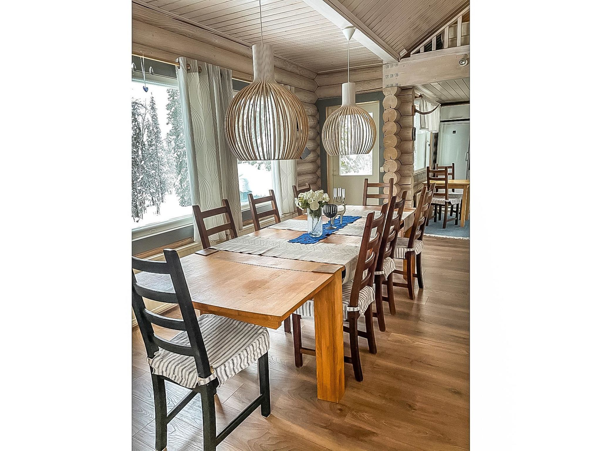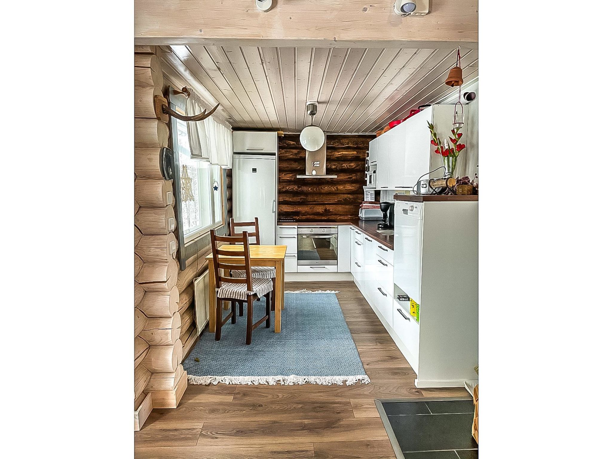 75 km östlich von Kemijärvi, in einem ruhigen Viertel, im Touristenzentrum Sallatunturi, am Ende der Strasse gelegen. Rundes Blockhaus, Baujahr 2010. Sofa (nicht ausziehbar) in der Wohnküche, Doppelbett (Breite 140 cm) im Schlafzimmer, 3 Sprungfeder-Betten, 2 Matratzen auf dem Dachboden, Sauna, Waschraum, separates WC und kleine offene Terrasse. Kochhütte und Brennholzlager. Die Dienstleistungen des Touristenzentrums Sallatunturi sind gut erreichbar. Die nächste Skipiste ist Pohjoisrinne, Entfernung 1.5 kkm. Öffentlicher Strand mit Grill- und Lagerfeuermöglichkeiten in der Hütte und im Freien, Entfernung 1.8 km. Kurhotel 2.5 km. Sporthalle Salla-halli 2.2 m. Dienstleistungen des Gemeindezentrums von Salla 11 km.