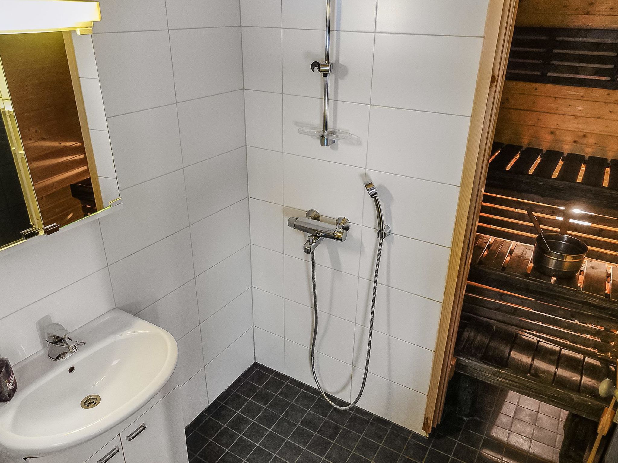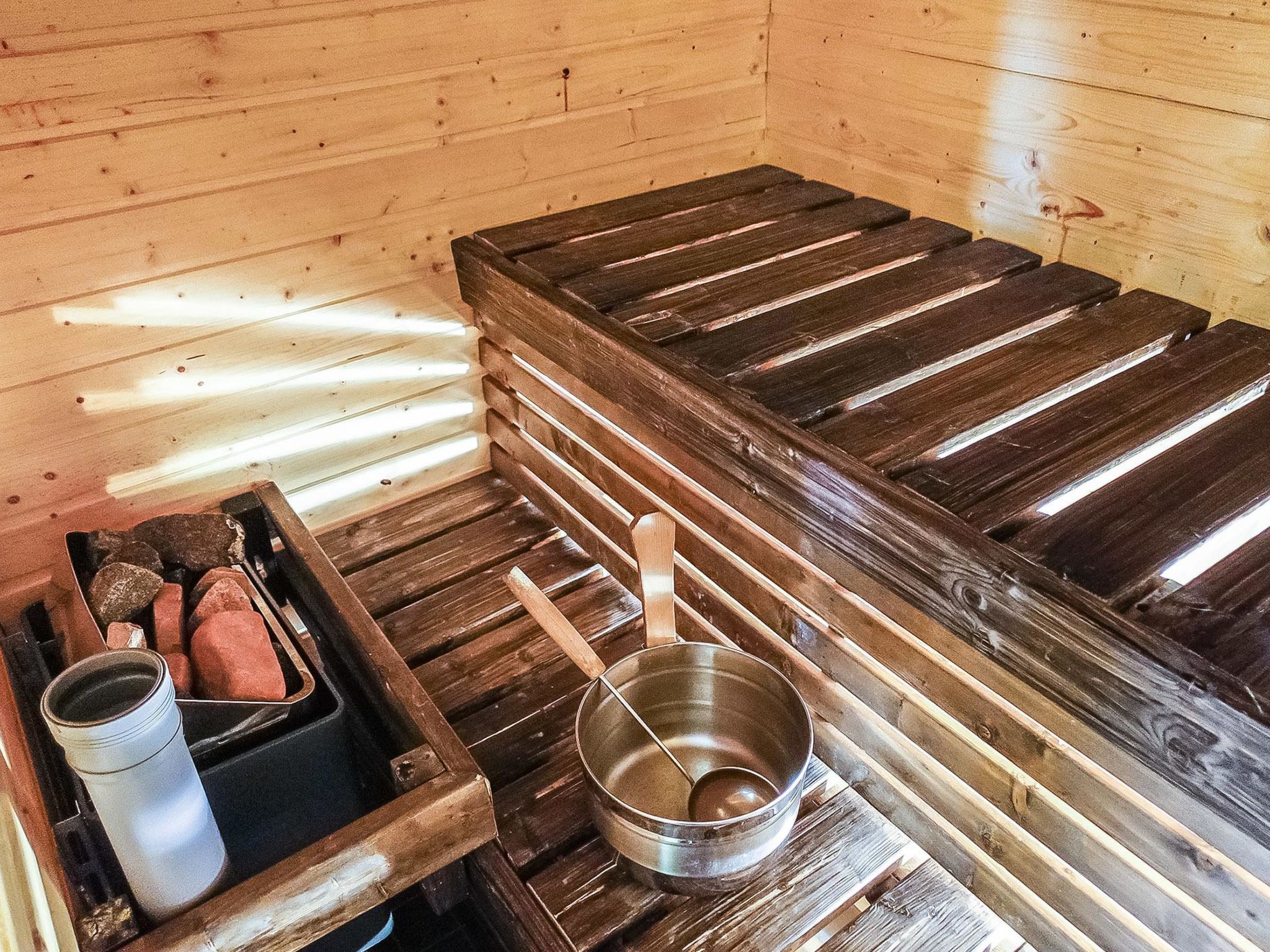 110 km nördlich von Rovaniemi, Block-Ferienwohnung aus Kiefernholz, Baujahr 2002, im Zentrum von Luosto. Wohnzimmer, Küche, Schlafzimmer mit 2 Betten, im Obergeschoss Schlafzimmer mit 2 Betten und Schlafboden mit 2 Betten, steile Treppe zum Obergeschoss, Sauna (Elektroherd), Waschraum, offene Veranda. Ski-Wartungsraum zur Mitbenutzung mit anderen Ferienhäusern. Gepflegte Wohnung in einem Reihenhaus. Sie können maximal 2 Haustiere mitbringen, zusätzliche Kosten betragen EURO 25/Haustier (bitte, zur Reservierung hinzufügen, falls erforderlich). In der Nähe aller Dienstleistungen des Luosto Zentrums, Programmdienste und Restaurants 300-500 m. Amethyst Spa 300 m, Amethyst Mine 5 km.