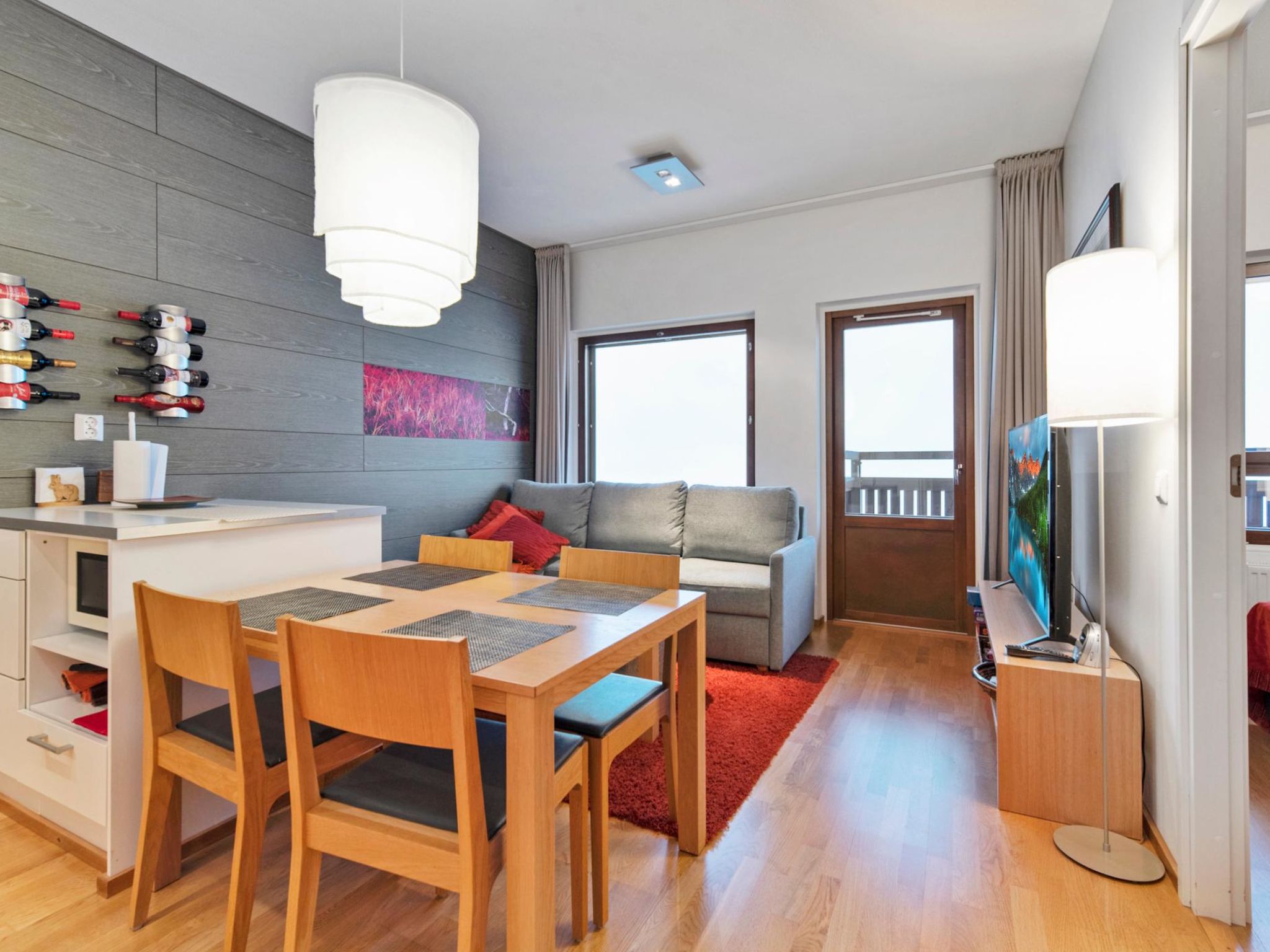 Das Aparthotel liegt 165 km nördlich von Rovaniemi, im Dorf Ylläsjärvi, in der Nähe des Sportresorts Ylläs. Baujahr 2009. Wohnküche, ein Schlafzimmer mit zwei separaten Betten, eine Schlafnische mit einem Etagenbett (oberes Bett 80 cm breit, unteres Bett 120 cm breit), elektrische sauna, Waschraum, separate Toilette. Zusätzlich: Gemeinsamer Ski-Wartungsraum, wohnungsspezifischer Abstellraum. Gute Qualität, "Ski-In/Ski-Out" Ferienwohnung im Dorf Ylläsjärvi, im Herzen des Sportresorts Ylläs. Die Ferienwohnung befindet sich in der obersten Etage des Taiga-Kundendienstzentrums. Pisten, Skipisten, Wanderrouten und nächtliche Aktivitäten sind von der Ferienwohnung aus leicht zu erreichen. Keine Haustiere erlaubt. Die Preise beinhalten Endreinigung, Bettwäsche kann gemietet werden.