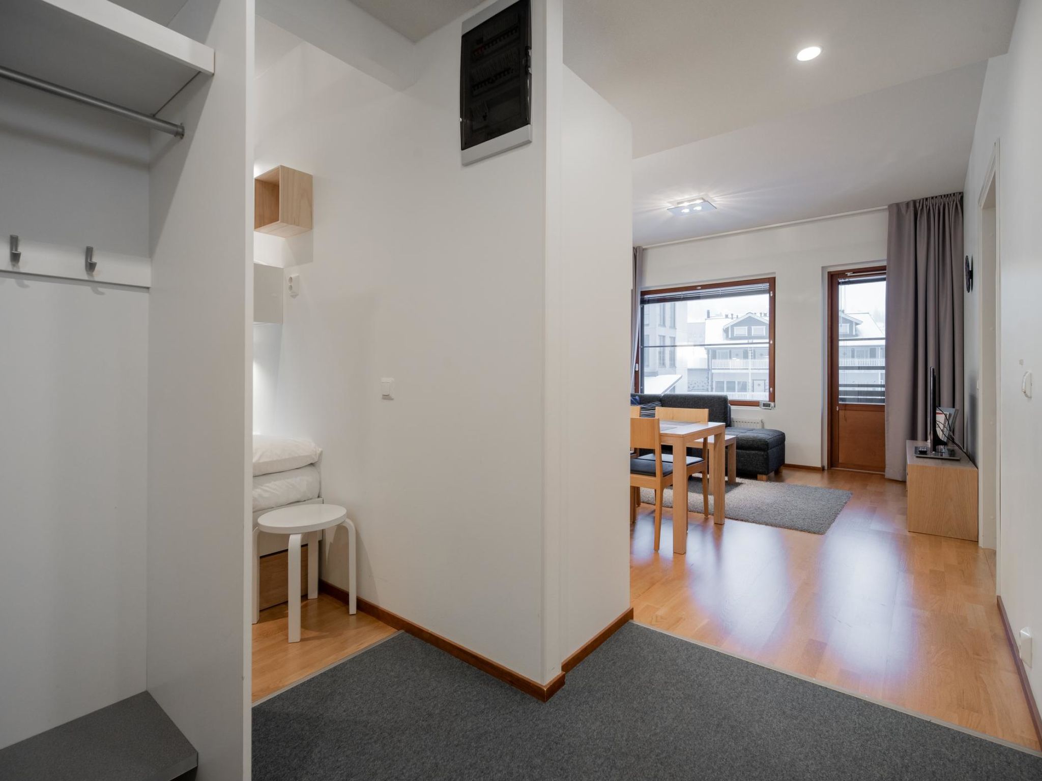 Das Aparthotel liegt 165 km nördlich von Rovaniemi, im Dorf Ylläsjärvi, in der Nähe des Sportresorts Ylläs. Baujahr 2009. Wohnküche, ein Schlafzimmer mit zwei separaten Betten, eine Schlafnische mit einem Etagenbett (oberes Bett 80 cm breit, unteres Bett 120 cm breit), elektrische Sauna, Waschraum, separate Toilette. Zusätzlich: Gemeinsamer Skiwartungsraum, wohnungsspezifischer Abstellraum, drahtlose Breitbandverbindung. Die Wohnung befindet sich im 4. Stock. Blick über das Sport Resort Ylläs. Gute Qualität "Ski-In/Ski-Out" Ferienwohnung befindet sich im Ylläsjärvi Dorf, in der Gegend Iso-Ylläs. Die Ferienwohnung befindet sich in der Nähe der Gondelbahn und des Restaurants Taiga. Pisten, Skipisten, Wanderrouten und nächtliche Aktivitäten sind von der Ferienwohnung aus leicht zu erreichen. Keine Haustiere erlaubt. Die Preise beinhalten Endreinigung, Bettwäsche kann gemietet werden. Die Buchungen beginnen um 16:00 Uhr und enden um 12:00 Uhr (auch bei Wochenendbuchungen).