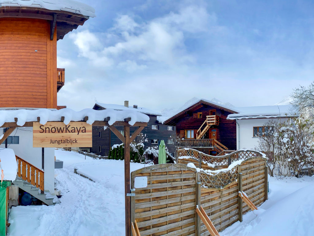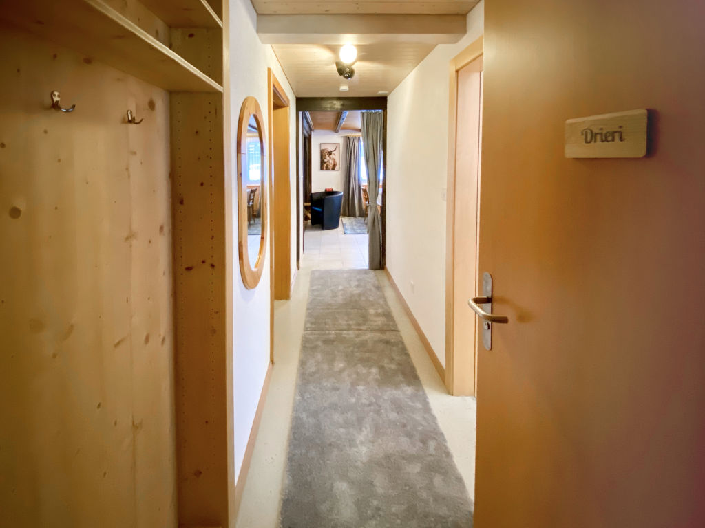 "Chalet Jungtalblick: Wohnung Drieri", 3-Zimmer-Wohnung 78 m2, im Erdgeschoss. Komfortabel und gemütlich eingerichtet: Wohn-/Esszimmer mit 1 Diwanbett und Kabel-TV (Flachbildschirm), Radio und Stereoanlage. Ausgang zum Gartensitzplatz. 1 Zimmer mit 1 Doppelbett (180 cm, Länge 200 cm). 1 Zimmer mit 2 Betten (90 cm, Länge 200 cm). Küche (Backofen, Geschirrspüler, 4 Glaskeramikherd Platten, Mikrowelle, Racletteofen, Fondue Set (Käse)). Dusche/WC. Gartensitzplatz. Terrassenmöbel. Schöne Sicht auf die Berge, das Tal, die Landschaft und die Ortschaft. Zur Verfügung: Kinderhochstuhl, Babybett. Internet (Wireless LAN, gratis). Bitte beachten: Nichtraucher-Unterkunft.