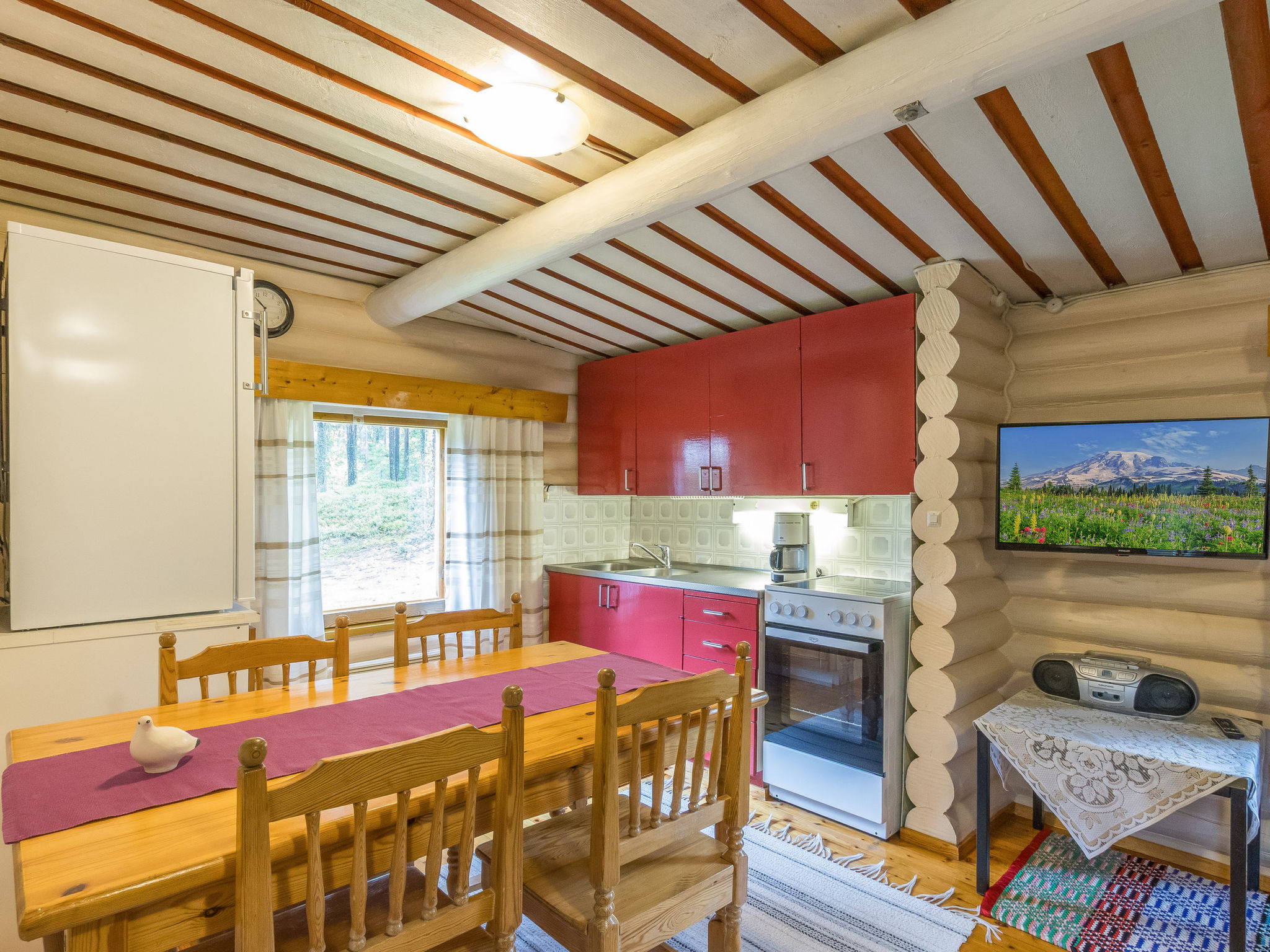 Ein separates Ferien-Blockhaus befindet sich 165 km nördlich von Rovaniemi, im Dorf Ylläsjärvi. Baujahr 1985. Wohnküche mit Schlafcouch, 2x Schlafzimmer mit Doppelbett und Schlafcouch, holzbeheizte Sauna, Terrasse, Toilette. Zugang zur Sauna und Toilette führt über die Terrasse. Die Endreinigung ist in den Preisen inbegriffen. Die Bettwäsche ist auf Bestellung erhältlich. Die Haustiere sind nicht erlaubt. Die Buchungen beginnen um 16.00 Uhr und enden um 11:00 Uhr (auch bei Wochenendbuchungen).