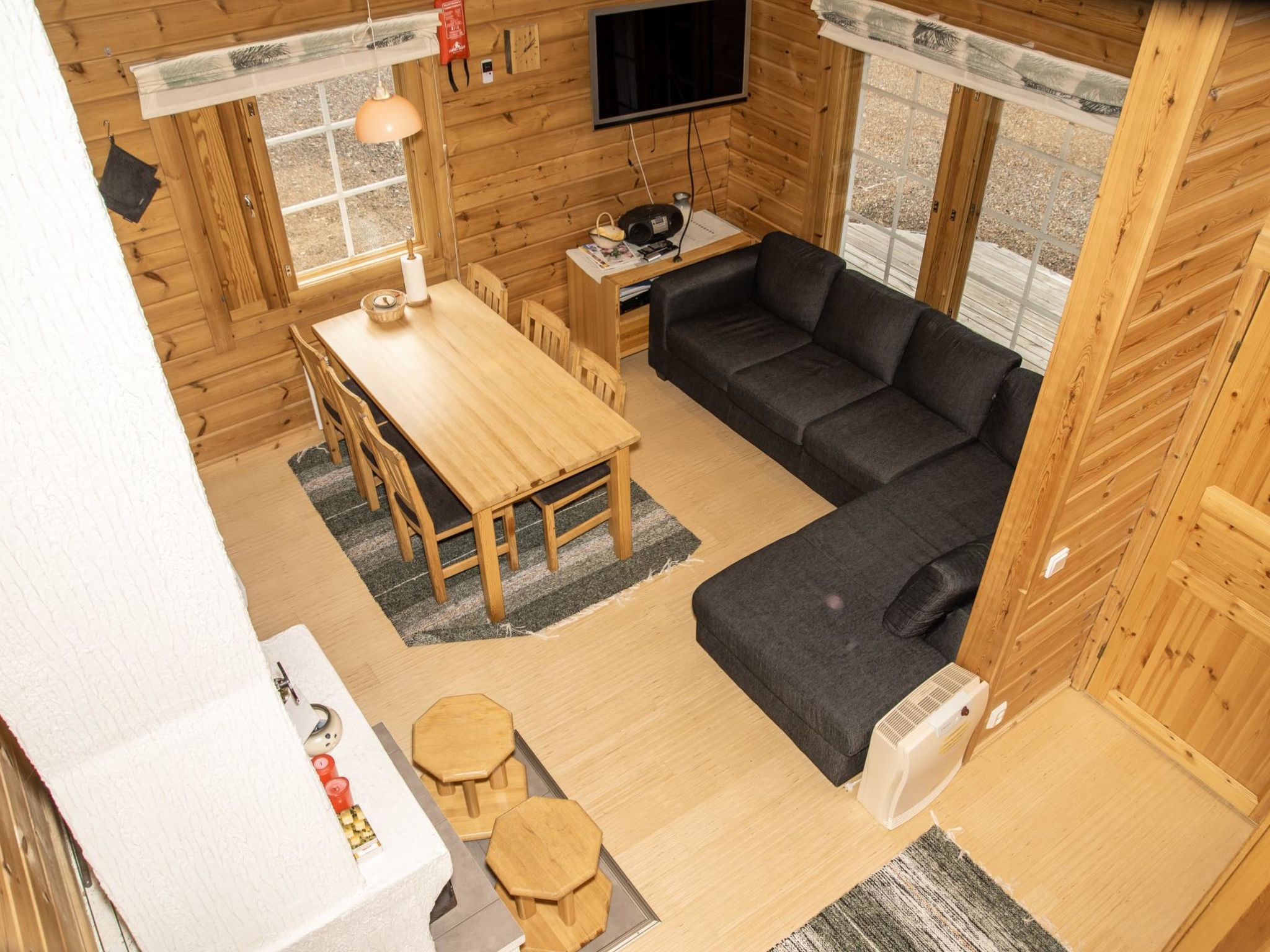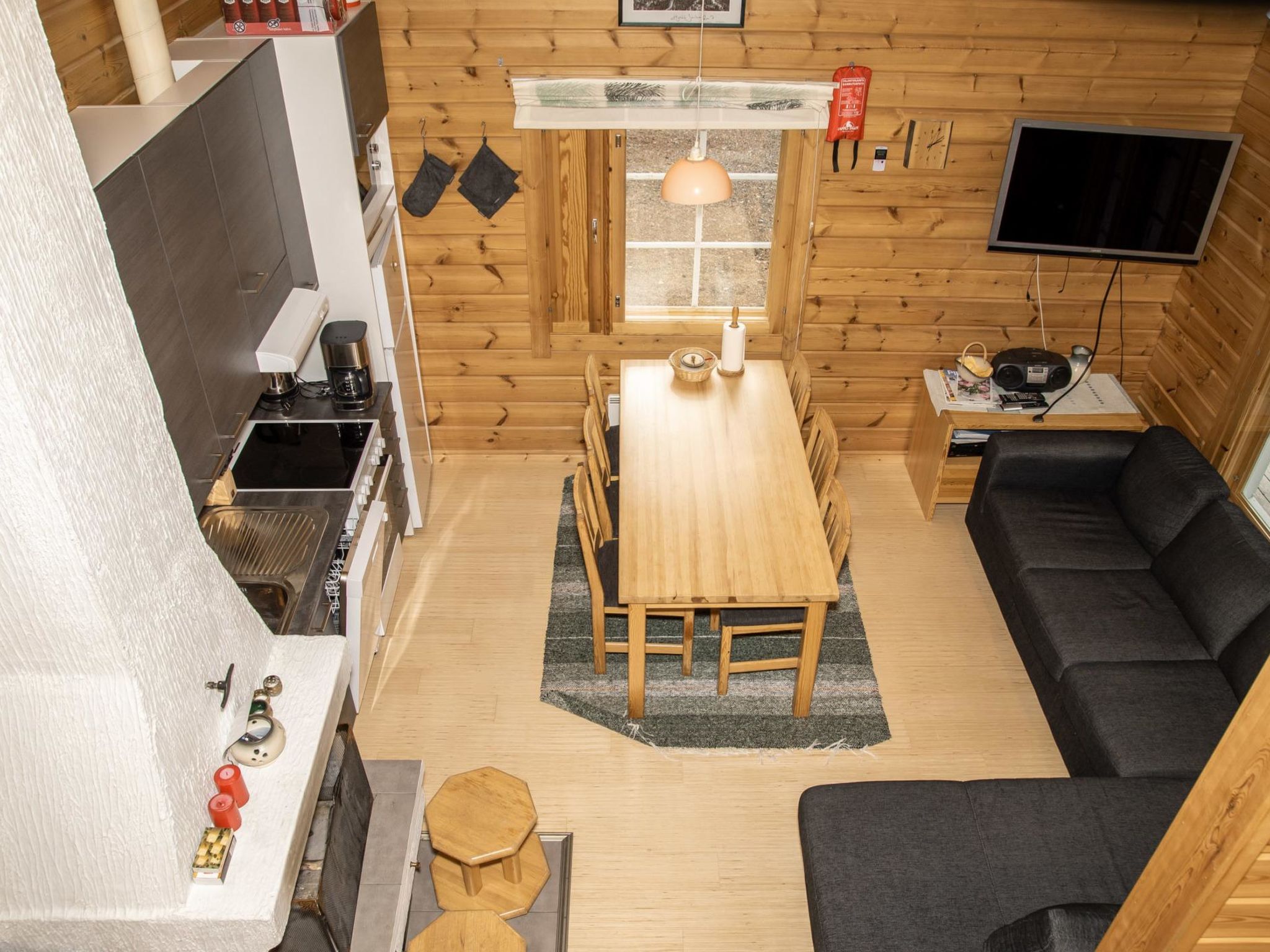 Eine Block-Maisonette-Wohnung, 165 km nördlich von Rovaniemi, im Dorf Ylläsjärvi, in der Gegend Palovaara. Baujahr 1989. Die Entfernung zu den Dienstleistungen des Hotels Ylläsrinne beträgt 500 Meter. Wohnküche, zwei Schlafzimmer (eins mit 1 Doppelbett und anderes mit 1 Etagenbett), Dachboden (9 m²) mit zwei Matratzen, elektrische Sauna, Waschraum, Terrasse, Abstellraum, Toilette. Die Preise beinhalten die Endreinigung. Bettwäsche kann gemietet werden. Die Buchungen beginnen um 16:00 Uhr und enden um 11:00 Uhr (auch bei Wochenendbuchungen). Haustiere sind nicht erlaubt.