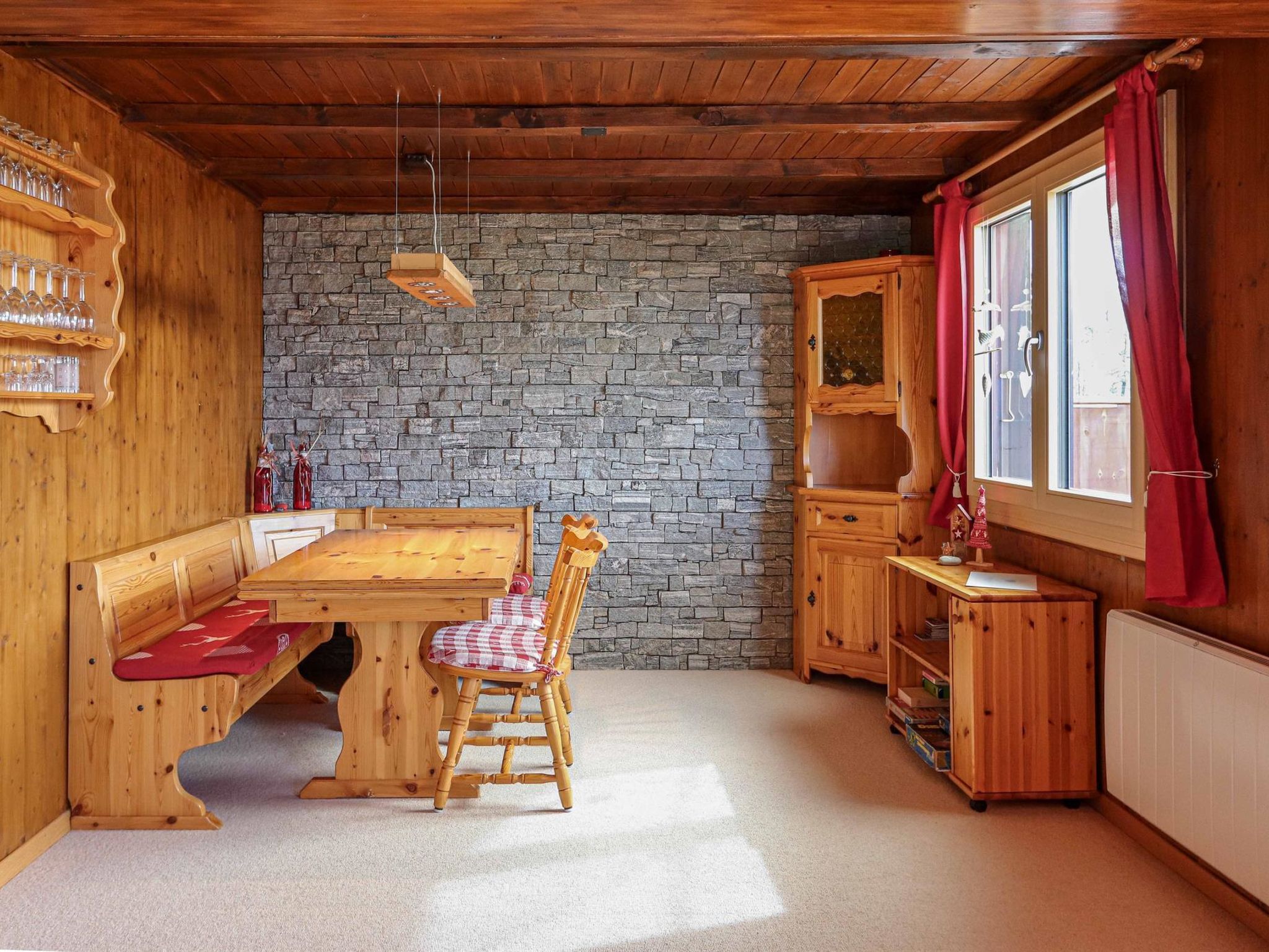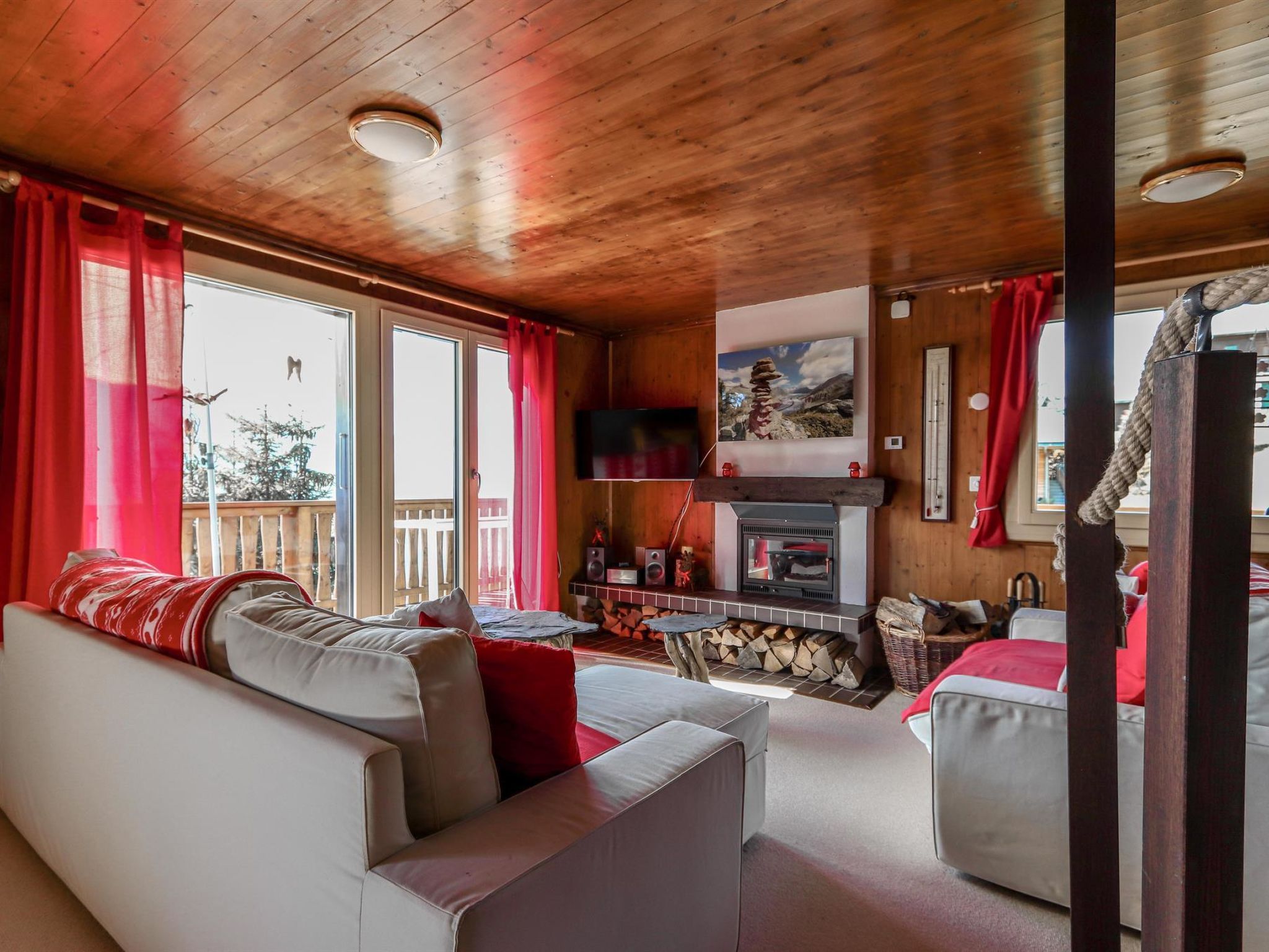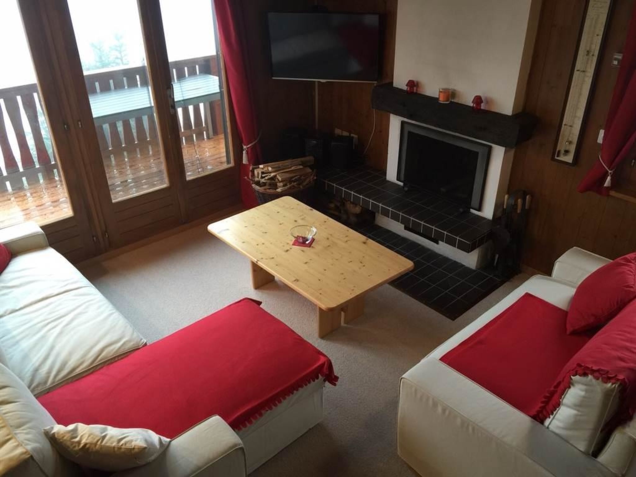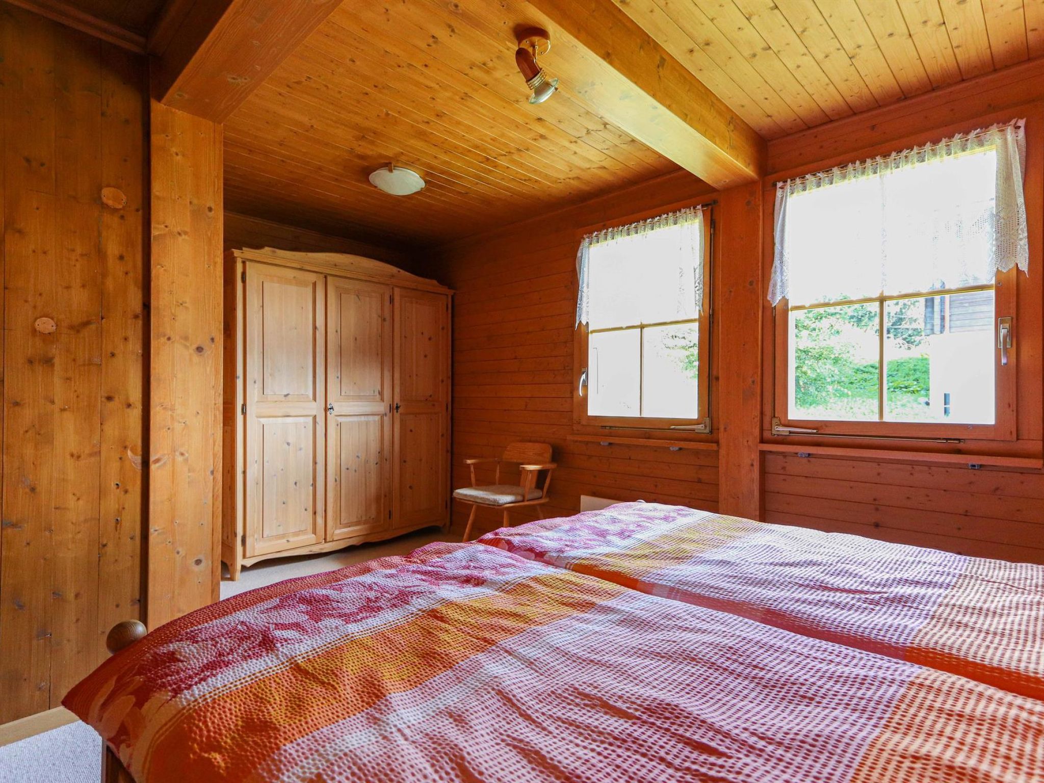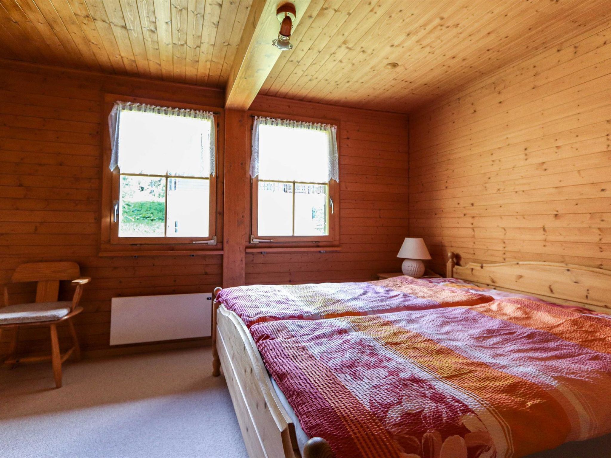 3.5 Zimmerwohnung mit grossem Wohnraum (mit Fernseher und Kamin) und Esszimmer, Küche mit Geschirrspüler/Mikrowelle, ein Schlafzimmer im 2. Stock und zusätzliche Schlafzimmer im Dachstock mit 2 Doppelbetten und WC. Es können bis zu 6 Personen übernachten. Eine Nasszelle mit Bad/WC (Waschmaschine und Trockner) sowie eine Nasszelle mit WC. Zusätzlich gibt es einen grossen Süd-Balkon mit Sitzmöglichkeiten und Grill.