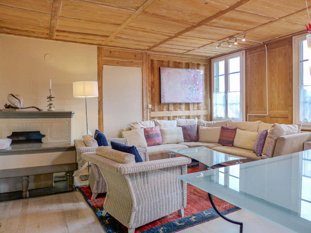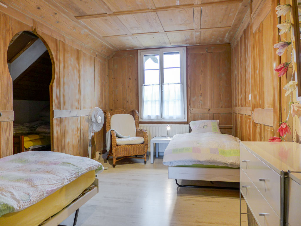 "Navah", 5-Zimmer-Wohnung 60 m2 auf 2 Stockwerken, im Dachgeschoss. Geräumig und hell, teilweise abgeschrägt, sehr komfortabel und gemütlich eingerichtet: 3. Obergeschoss: abgeschrägtes Wohn-/Esszimmer mit Esstisch, Kabel-TV, CD und DVD. 2 Zimmer, jedes Zimmer mit 2 Betten (90 cm, Länge 200 cm). 1 abgeschrägtes kleines Zimmer mit 1 Bett (90 cm, Länge 200 cm). Offene Küche (Backofen, Geschirrspüler, 4 Glaskeramikherd Platten, Toaster, Wasserkocher, Mikrowelle, Tiefkühler, elektrische Kaffeemaschine, Kapseln für die Kaffeemaschine (Nespresso) extra, Racletteofen, Fondue Set (Käse)) mit Bar. Ausgang zum Balkon. Dusche/WC, sep. WC. Dachgeschoss: (steile Treppe) 1 abgeschrägtes Doppelzimmer mit 1 Doppelbett (160 cm, Länge 200 cm). Bad/WC. Balkon, Ostlage Balkon, Westlage. Balkonmöbel. Sehr schöne Fernsicht auf die Landschaft und die Ortschaft. Zur Verfügung: Waschmaschine, Wäschetrockner. Internet (Wireless LAN, gratis). Parkplatz (überdacht, 2 Autos). Bitte beachten: Nichtraucher-Unterkunft. 1 Haustier/Hund erlaubt. Kein Fahrstuhl.