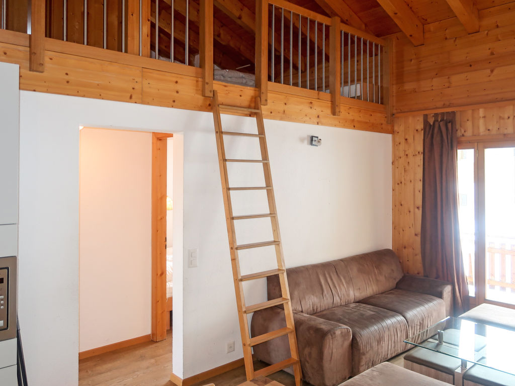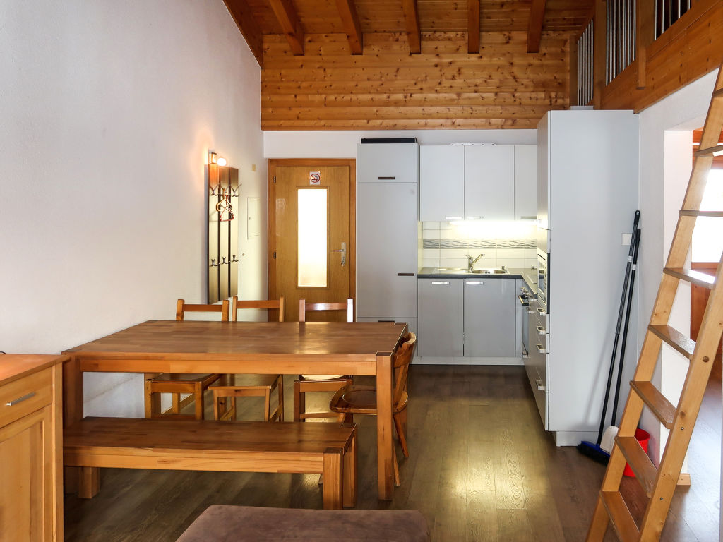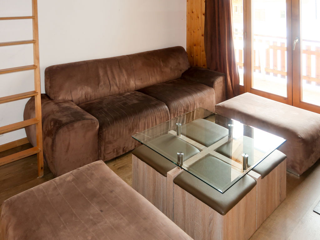 "Coucous", 5-Zimmer-Wohnung 70 m2 auf 2 Stockwerken, im Obergeschoss. Zweckmässig und gemütlich eingerichtet: Wohn-/Esszimmer mit Schwedenofen und Sat-TV. Ausgang zum Balkon. 1 Zimmer mit 1 franz. Bett. Ausgang zum Balkon. 1 Kinderzimmer mit 1 x 2 Etagenbetten. Offene Küche (Backofen, Geschirrspüler, 4 Glaskeramikherd Platten, Mikrowelle, elektrische Kaffeemaschine, Fondue Set (Käse)). Bad, sep. WC. Dachgeschoss: (Leiter) abgeschrägte, offene Galerie mit 2 Doppelbetten. Dusche/WC. Balkon. Balkonmöbel. Panoramasicht. Zur Verfügung: Internet (Wireless LAN). Bitte beachten: Nichtraucher-Unterkunft. Maximal 1 Haustier/Hund erlaubt.