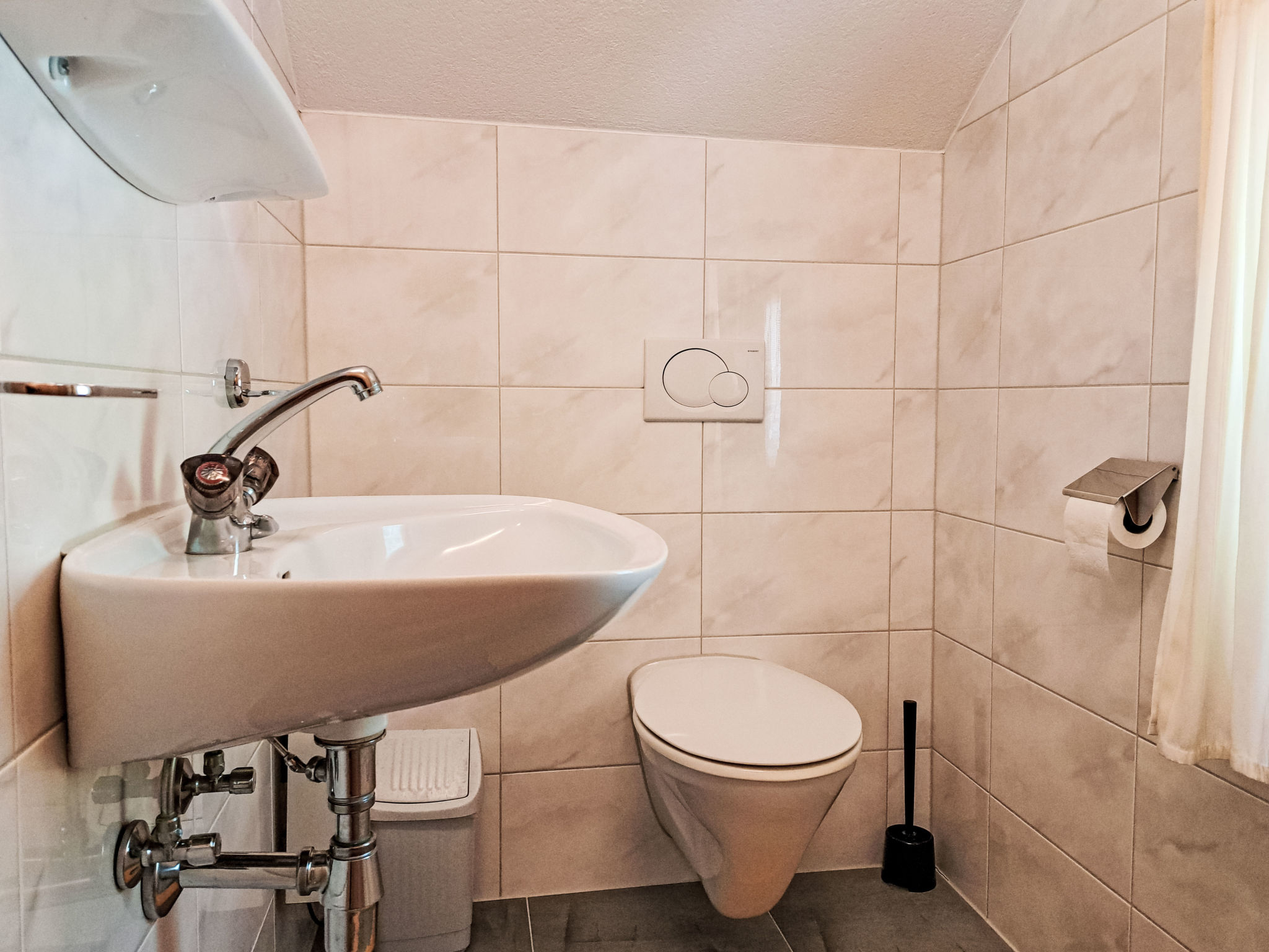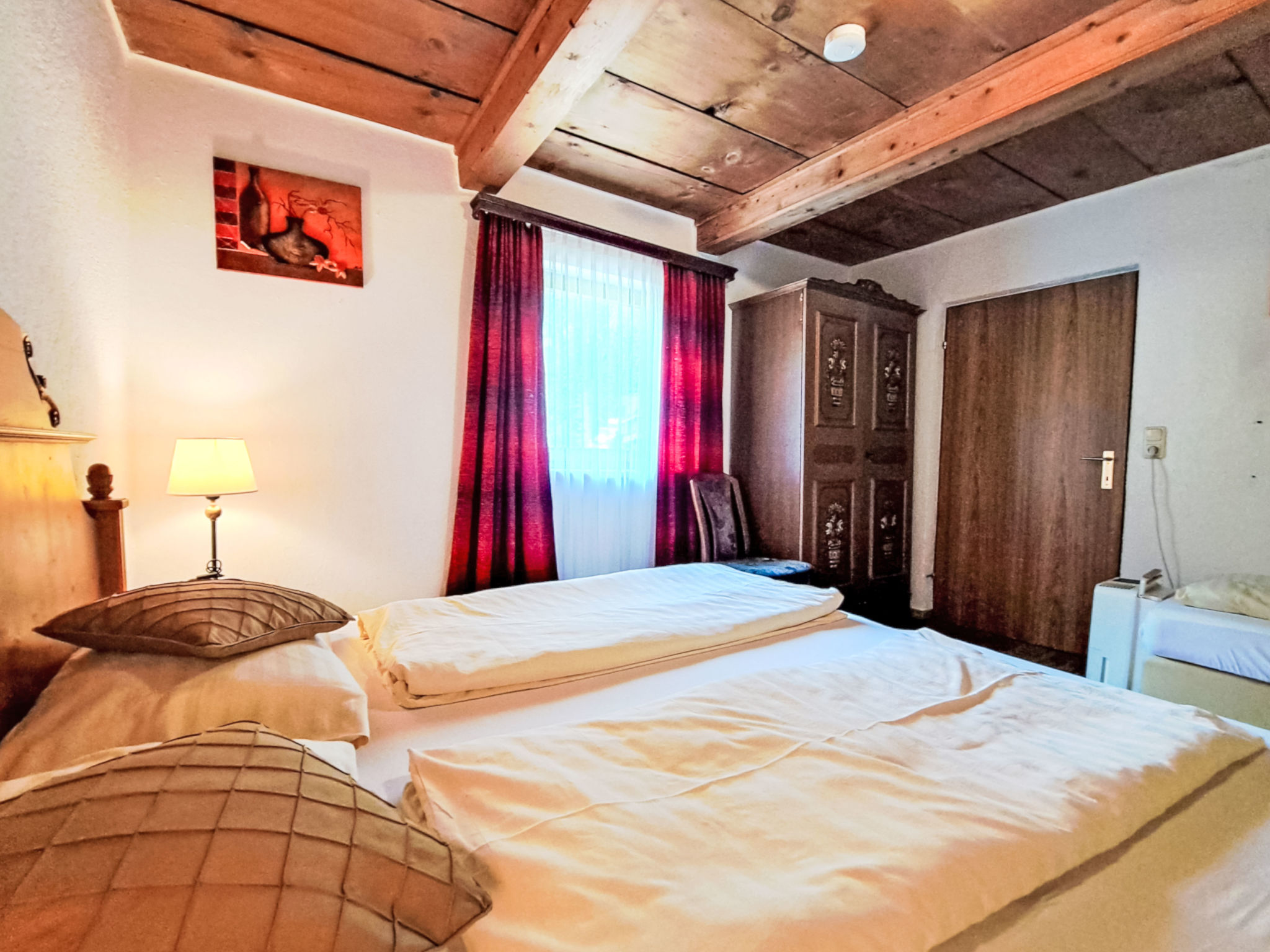 6-Zimmer-Haus, 3 Etagen, ca. 170 m². Erdgeschoss: Flur mit Garderobe. Wohnraum mit Holzofen und großem Essplatz (Eckbank). Küche (4 Platten, Backofen, Geschirrspüler, Kühlschrank, Kaffeemaschine, Wasserkocher, Toaster, Brotschneidemaschine) mit Holzofen und Essplatz (Eckbank) für 6 Personen. Schlafzimmer mit Doppelbett und 2 Einzelbetten. Dusche. Sep.WC. Holztreppe vom Flur in 1. Etage: 2 Schlafzimmer, jeweils mit Doppelbett und Einzelbett, 1 Zimmer mit Balkonausgang. Doppelzimmer. Dusche. Sep.WC. Holztreppe vom Flur in 2. Etage (Dachschräge, nicht störend): Schlafzimmer mit Doppelbett und Einzelbett. Dusche. Sep.WC.