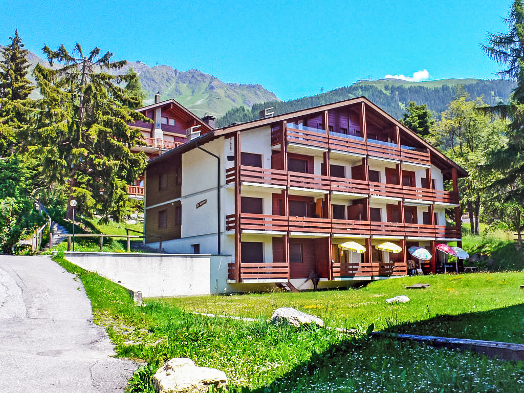 Verbier: Mehrfamilienhaus "Le Lichen". Im Ortszentrum von Verbier, ruhige, sonnige Lage, in einer Sackgasse, Richtung Süden. Im Hause: Skiraum. Zufahrt bis 20 m zum Haus. Öffentliche Parkplätze 900 m. Einkaufsgeschäft 150 m, Supermarkt 400 m, Restaurant, Bar 150 m, Bäckerei 70 m, Café 150 m, Bushaltestelle "L'Ermitage" 150 m, Hallenbad 900 m. Golfplatz (18 Loch) 1.3 km, Reitstall, Sportzentrum 900 m, Skisportanlagen 500 m, Skibushaltestelle 150 m, Skischule 550 m, Ski-Kindergarten 500 m, Eisfeld 900 m, Kinderspielplatz 150 m. Der gratis Skibus fährt zum Skigebiet de Verbier.